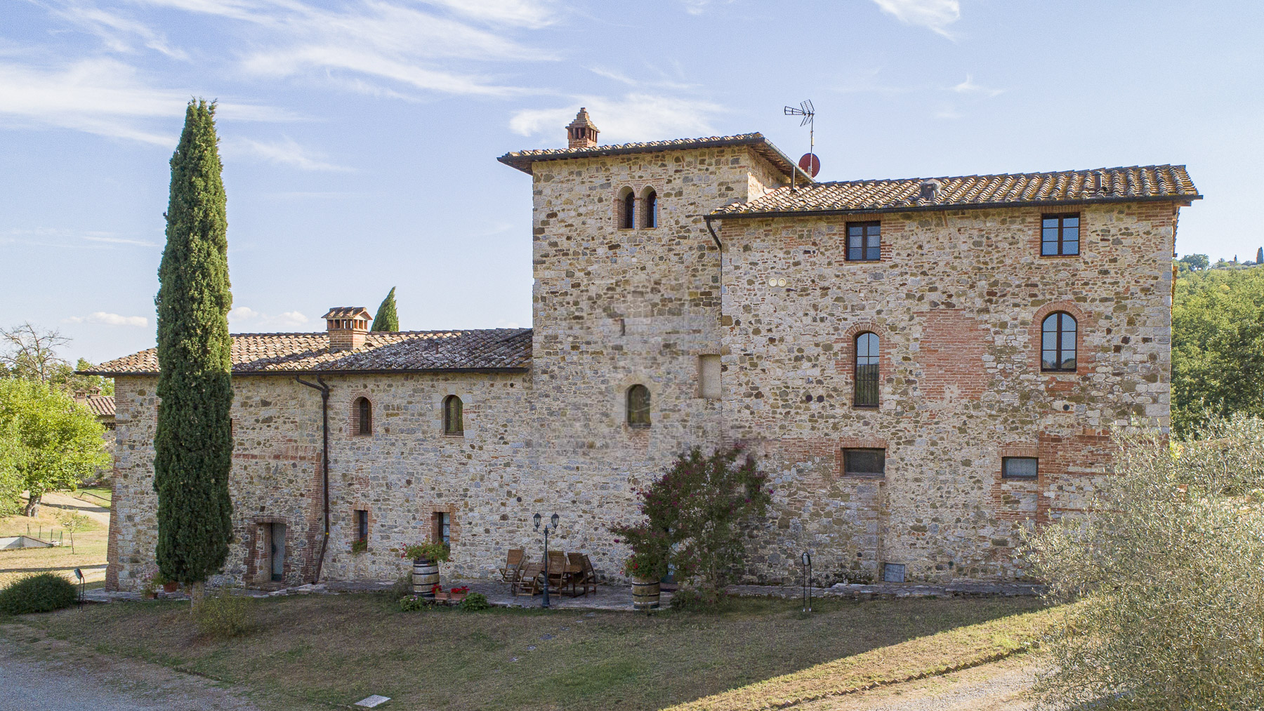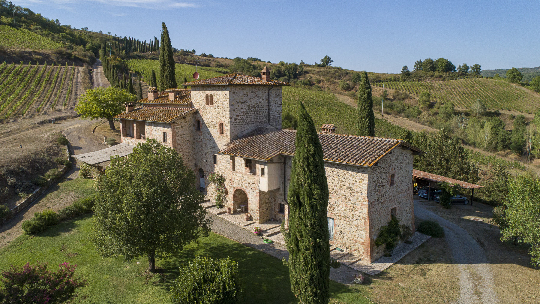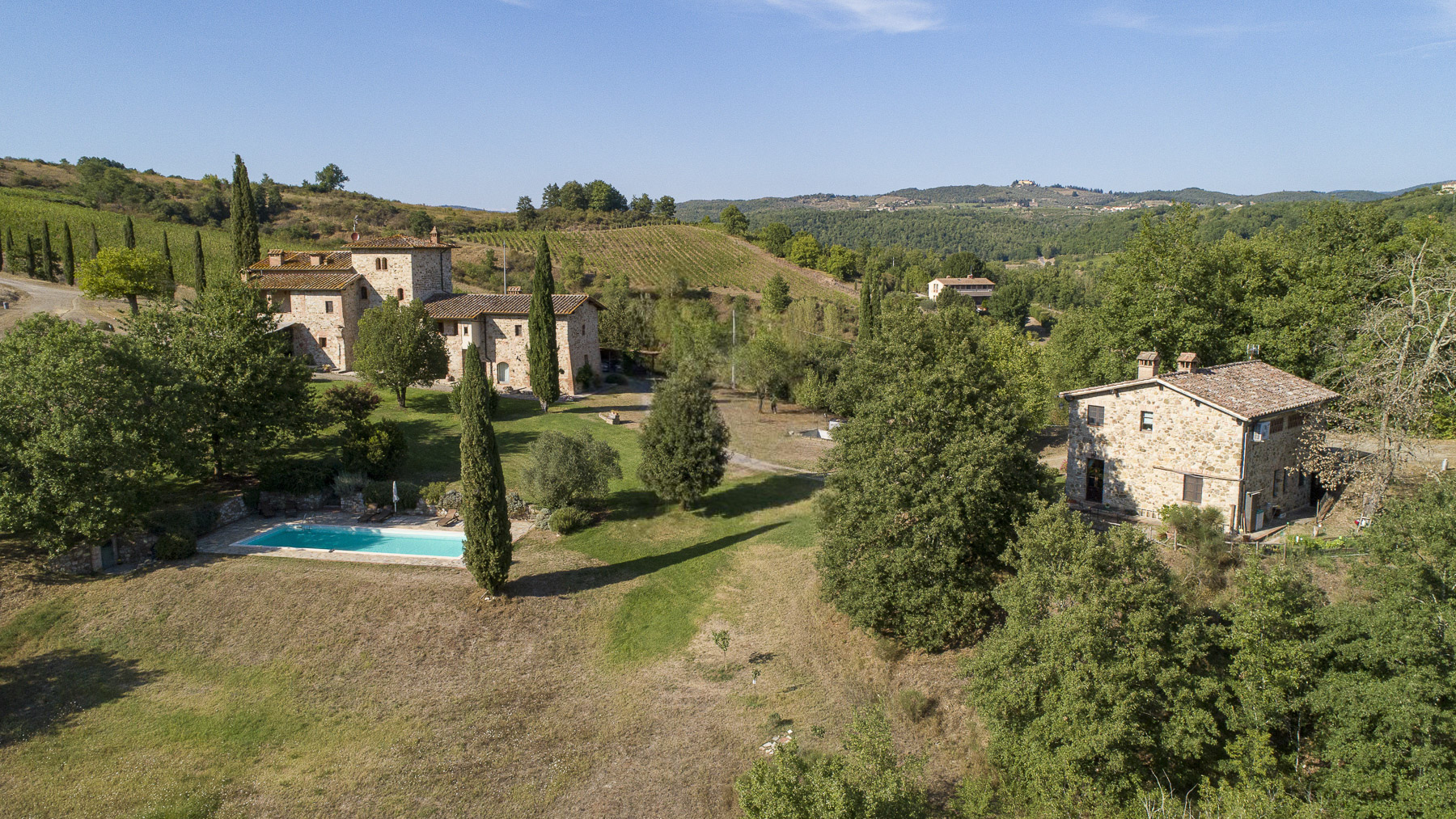 Nel cuore della Toscana, tra le dolci colline del Chianti Classico, si erge una tenuta che incanta i sensi. Il profumo dei vigneti si fonde con il canto degli uccelli, mentre la luce dorata del tramonto accarezza le antiche pietre di un casale che promette pace e lusso, a pochi chilometri dalla storica Siena. Questa esclusiva proprietà di Castelnuovo Berardenga si estende su 27 ettari, con 690 mq di spazi abitativi suddivisi in 19 stanze e 12 bagni. Il casale, impreziosito da una torre di avvistamento del Trecento, è stato ristrutturato mantenendo l'autenticità dei materiali originali. All'interno, un elegante doppio soggiorno si apre su una cucina invitante e una zona pranzo accogliente. Al piano superiore, cinque appartamenti offrono comfort e raffinatezza, mentre una dependance ospita due appartamenti con 5 camere da letto e 4 bagni. I lussureggianti giardini, la piscina e i vigneti di Cabernet, Merlot e Sangiovese completano questo quadro idilliaco. Vivere qui significa riscoprire il piacere delle piccole cose: passeggiate tra uliveti centenari, degustazioni di vini pregiati e giornate di relax a bordo piscina. Immagina serate trascorse sotto un cielo stellato, con il suono delle cicale in sottofondo e un calice di Chianti Classico in mano. La vita in questa tenuta è un invito a riconnettersi con la natura e la cultura toscana, in un ambiente di esclusiva serenità. Questa proprietà non è solo un'abitazione, ma un pezzo di storia e un'opportunità irripetibile per vivere in una delle regioni più affascinanti d'Italia. Un rifugio senza tempo dove eleganza e comfort si fondono armoniosamente, offrendo un'esperienza di vita unica nel suo genere.