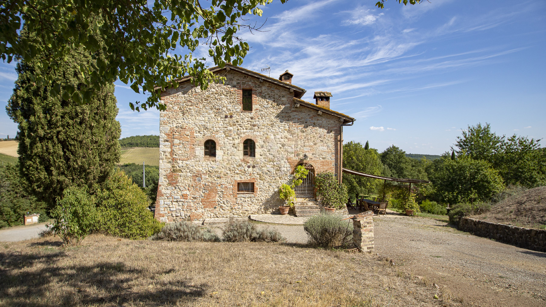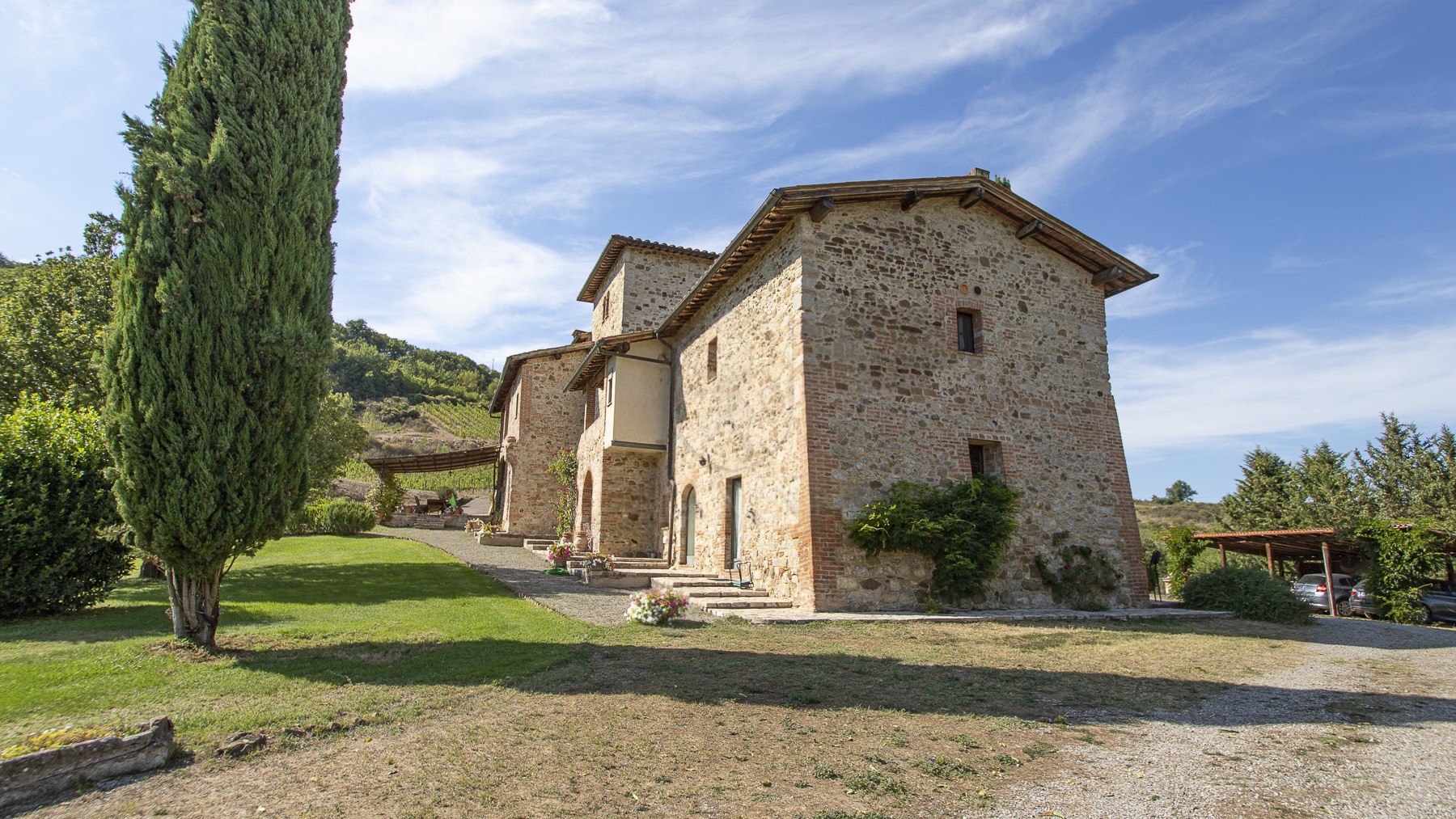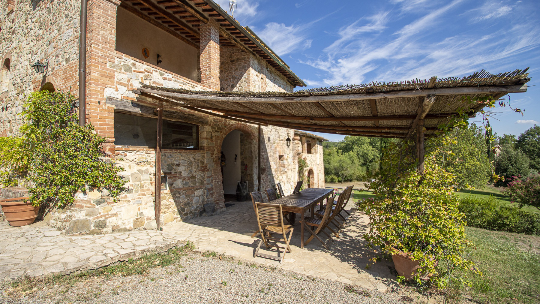 Nel cuore della Toscana, tra le dolci colline del Chianti Classico, si erge una tenuta che incanta i sensi. Il profumo dei vigneti si fonde con il canto degli uccelli, mentre la luce dorata del tramonto accarezza le antiche pietre di un casale che promette pace e lusso, a pochi chilometri dalla storica Siena. Questa esclusiva proprietà di Castelnuovo Berardenga si estende su 27 ettari, con 690 mq di spazi abitativi suddivisi in 19 stanze e 12 bagni. Il casale, impreziosito da una torre di avvistamento del Trecento, è stato ristrutturato mantenendo l'autenticità dei materiali originali. All'interno, un elegante doppio soggiorno si apre su una cucina invitante e una zona pranzo accogliente. Al piano superiore, cinque appartamenti offrono comfort e raffinatezza, mentre una dependance ospita due appartamenti con 5 camere da letto e 4 bagni. I lussureggianti giardini, la piscina e i vigneti di Cabernet, Merlot e Sangiovese completano questo quadro idilliaco. Vivere qui significa riscoprire il piacere delle piccole cose: passeggiate tra uliveti centenari, degustazioni di vini pregiati e giornate di relax a bordo piscina. Immagina serate trascorse sotto un cielo stellato, con il suono delle cicale in sottofondo e un calice di Chianti Classico in mano. La vita in questa tenuta è un invito a riconnettersi con la natura e la cultura toscana, in un ambiente di esclusiva serenità. Questa proprietà non è solo un'abitazione, ma un pezzo di storia e un'opportunità irripetibile per vivere in una delle regioni più affascinanti d'Italia. Un rifugio senza tempo dove eleganza e comfort si fondono armoniosamente, offrendo un'esperienza di vita unica nel suo genere.