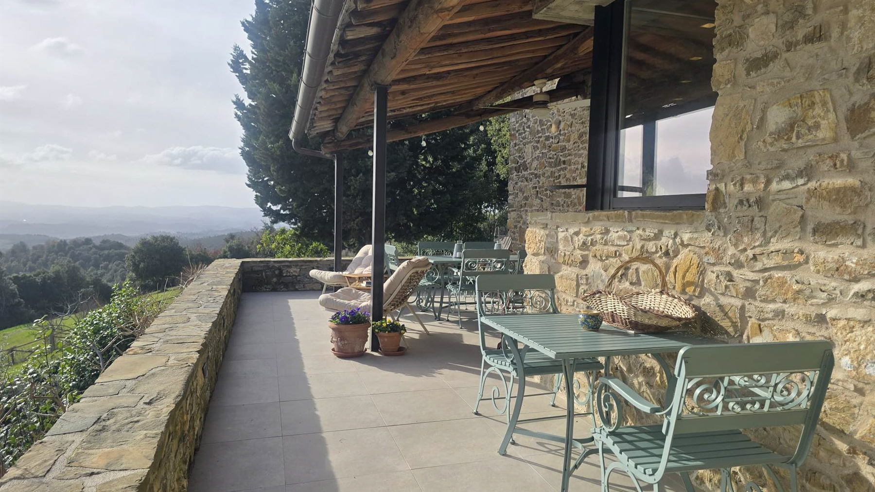 Immersa tra le dolci colline del Chianti, questa magnifica proprietà a Castellina in Chianti è un rifugio di serenità e lusso. Qui, la natura avvolge i sensi con il fruscio delle foglie e i profumi dei vigneti, mentre il sole accarezza la pietra della casa, creando un'atmosfera di calore e intimità. Questa straordinaria tenuta di 638 mq comprende due unità abitative: la villa principale e un fienile indipendente. Con un totale di 11 stanze e 3 bagni, ogni spazio è stato sapientemente ristrutturato per fondere l'estetica toscana tradizionale con il design contemporaneo. Gli ampi giardini e il terrazzo panoramico offrono una vista mozzafiato sui vigneti circostanti, rendendo ogni momento trascorso qui un'esperienza indimenticabile. La luce naturale inonda gli interni, creando un dialogo armonioso tra gli spazi esterni e quelli interni. Vivere in questa proprietà significa abbracciare uno stile di vita raffinato e rilassato. Immagina di sorseggiare un bicchiere di Chianti sulla terrazza al calar del sole, circondato dal silenzio e dalla bellezza della natura. Le serate diventano magiche, mentre gli ampi spazi interni accolgono momenti di convivialità e relax. Questa proprietà rappresenta un'opportunità unica nel panorama immobiliare di lusso, con un equilibrio perfetto tra eleganza senza tempo e comfort moderno. Contattaci per ulteriori dettagli e lasciati incantare da questa oasi di esclusività.