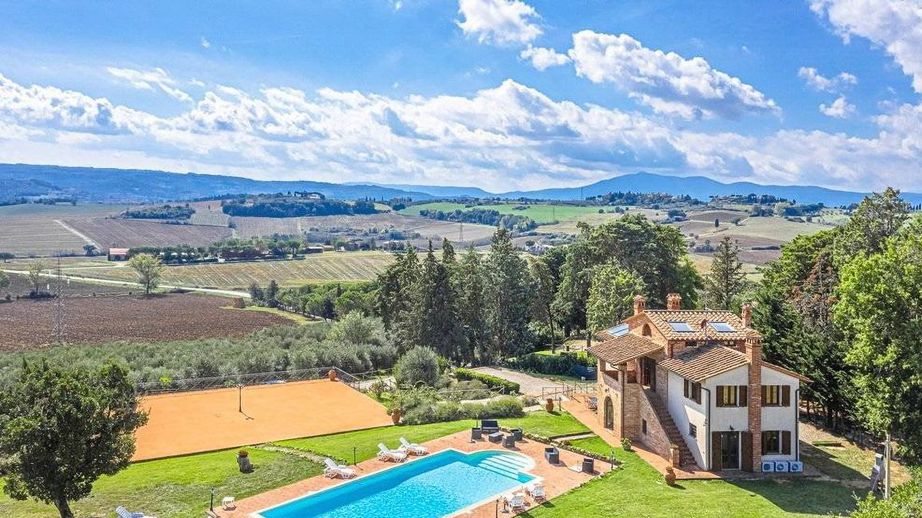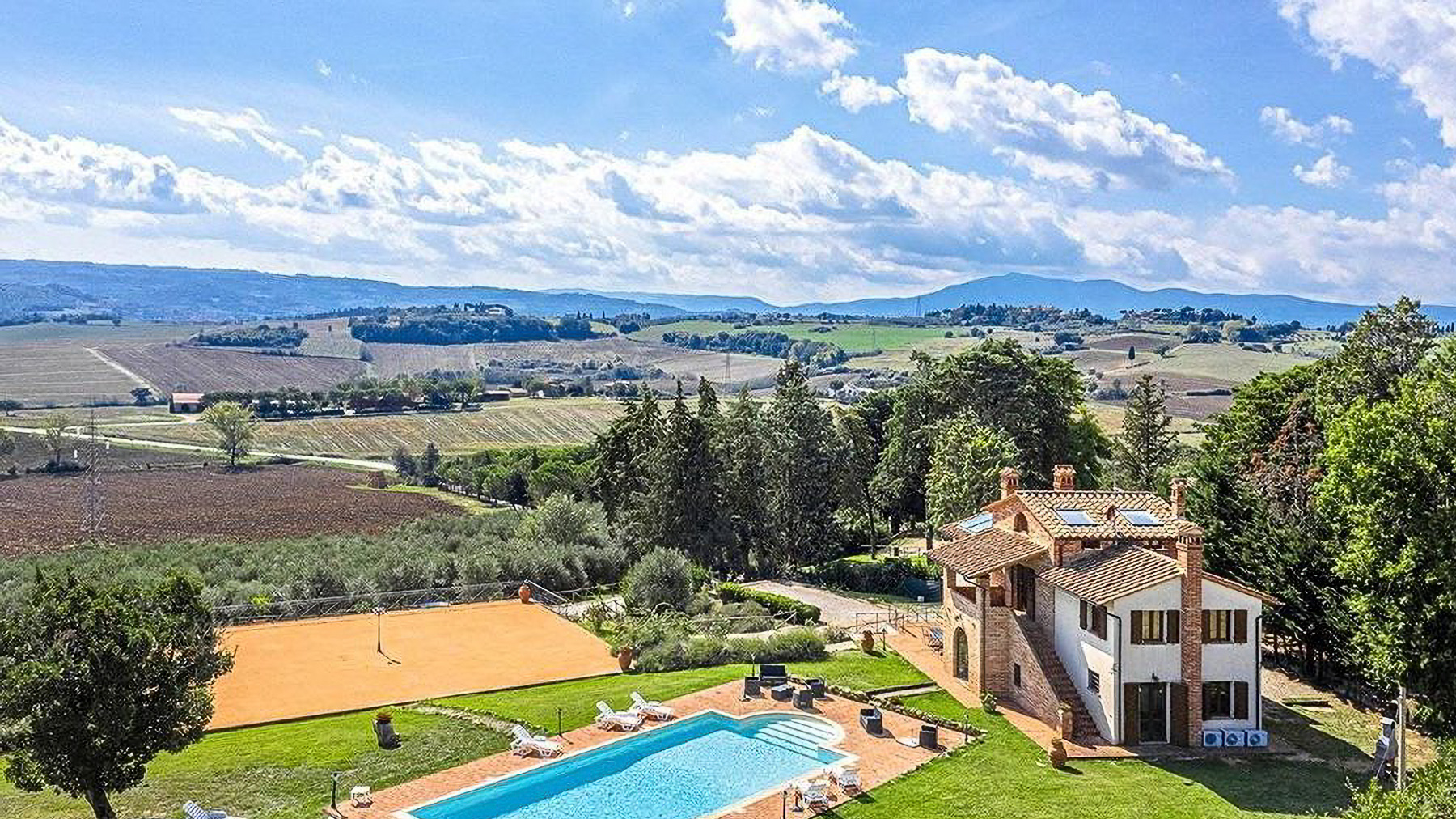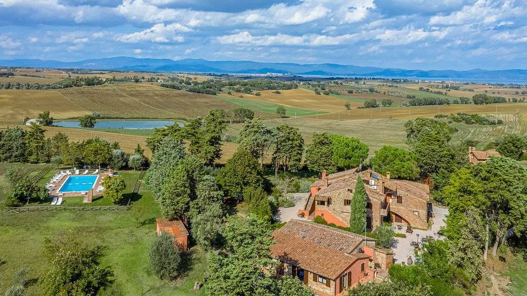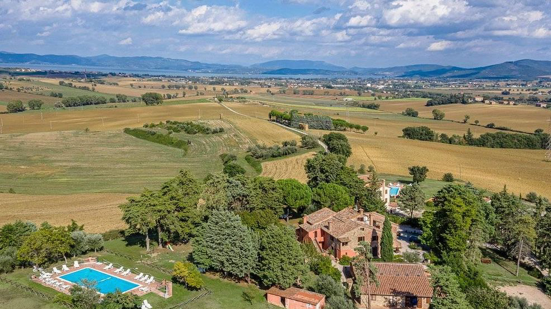 Immersa nel cuore di una campagna rigogliosa, Tenuta Fiordolivo è un angolo di paradiso dove il tempo sembra rallentare. Qui, il profumo degli ulivi si mescola al dolce canto della natura, creando un'atmosfera di pace e serenità che avvolge ogni angolo della proprietà. A soli dieci minuti dal suggestivo Lago Trasimeno, questa tenuta rappresenta il perfetto rifugio lontano dal caos cittadino. La proprietà si estende su una superficie di 1.438 mq, articolata in una villa principale, due casali e vari annessi, per un totale di 48 camere e 24 bagni. Ogni dettaglio è stato curato per offrire comfort e lusso, con due piscine che si stagliano tra i tre ettari di terreno, in cui spicca un uliveto con 500 piante. Situata a Castiglione del Lago, nella provincia di Perugia, la tenuta è un esempio di eleganza rurale, con ampi spazi pensati per il relax e lo svago. Vivere qui significa godere di tramonti mozzafiato da una delle terrazze panoramiche, organizzare cene all'aperto sotto cieli stellati o semplicemente lasciarsi cullare dalla quiete circostante. Ogni angolo della tenuta invita a scoprire la bellezza della vita in campagna, in un contesto unico e raffinato. Questa proprietà incarna il perfetto equilibrio tra tradizione e modernità, offrendo un'opportunità irripetibile nel panorama immobiliare di lusso. Un luogo dove ogni giorno diventa un'esperienza da vivere appieno.