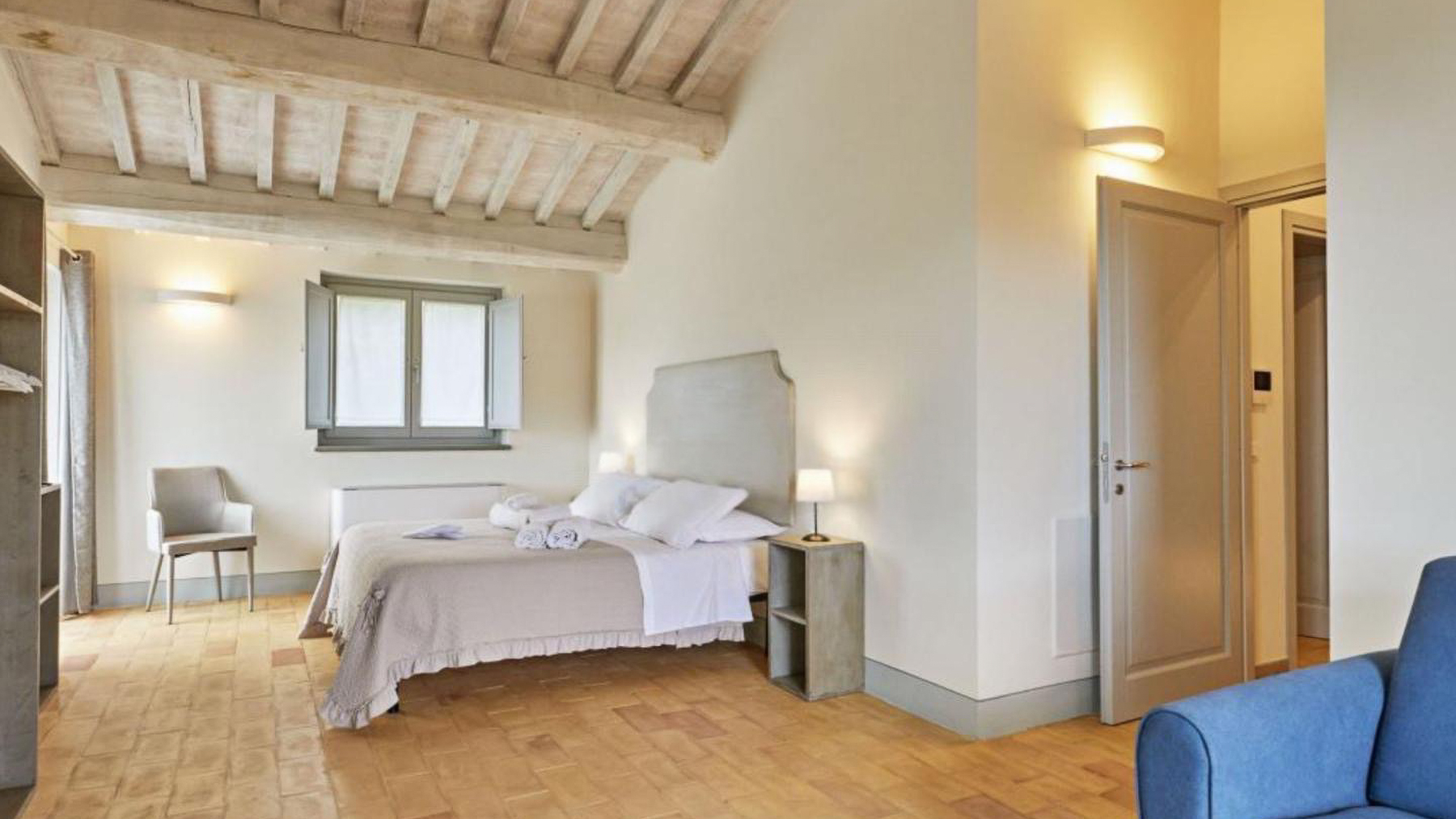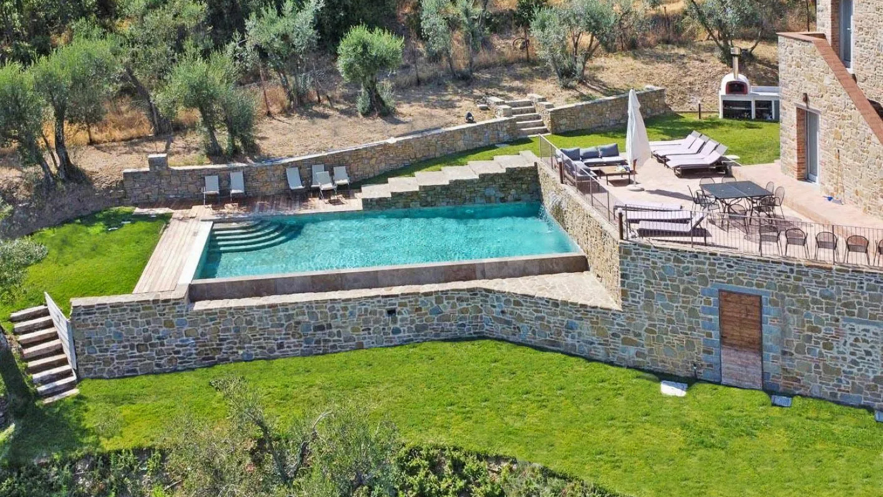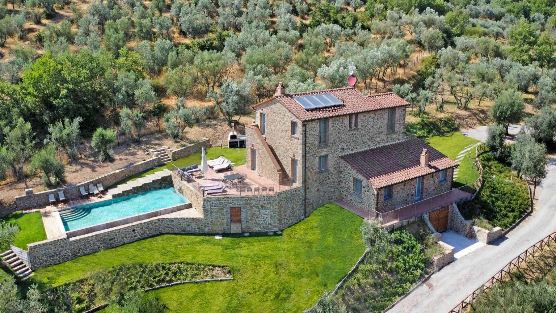 Immersa tra le colline toscane, questa proprietà incanta con la sua bellezza naturale e la serenità che la circonda. A pochi minuti da Cortona, l'aria è pervasa dal profumo degli ulivi e dal suono rilassante della natura. La luce del sole penetra attraverso le ampie finestre, creando un'atmosfera calda e accogliente che rende ogni momento speciale. Con una superficie di 300 mq, questa residenza offre ampi spazi su tre livelli, con 8 stanze e 6 bagni. Gli interni moderni e luminosi si combinano armoniosamente con l'ambiente rustico esterno, caratterizzato da una piscina panoramica con cascata in travertino. Circondata da 2,5 ettari di terreno e 350 ulivi, la villa è un rifugio di pace, dotato di tutte le comodità moderne, come pannelli solari e riscaldamento a pavimento, per un'efficienza energetica ottimale. Situata in località Cortona, provincia di Arezzo, offre un lifestyle di campagna senza eguali. Vivere qui significa abbracciare uno stile di vita rilassato, dove le giornate iniziano con colazioni all'aperto sotto il sole toscano e si concludono con cene al tramonto, con vista sulle colline circostanti. La piscina è il luogo ideale per rinfrescarsi nelle calde giornate estive, mentre il giardino offre spazi per passeggiate tra gli ulivi e momenti di riflessione personale. Questa villa è un'opera d'arte che combina eleganza senza tempo e comfort moderno. Un'opportunità unica nel panorama immobiliare di lusso, perfetta per chi cerca un rifugio esclusivo in una delle regioni più affascinanti d'Italia.