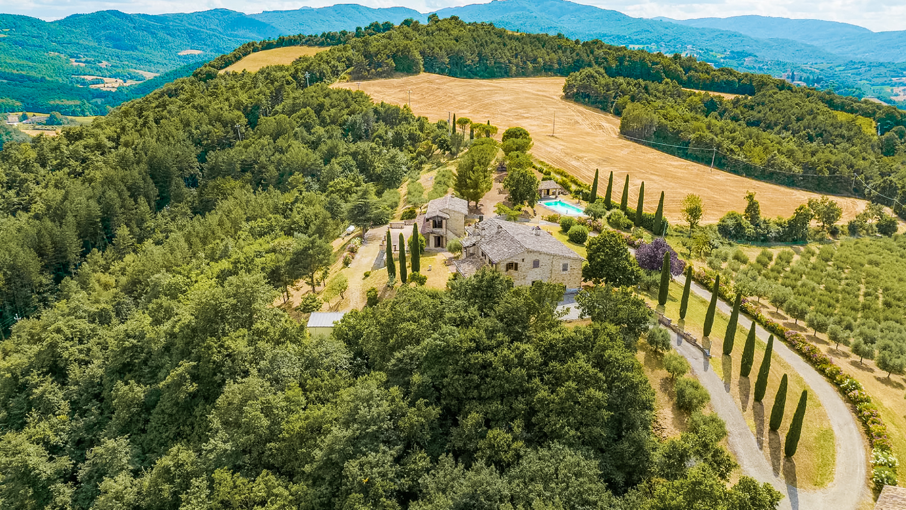 Immersa nel cuore delle colline umbre, questa magnifica proprietà ti accoglie con un abbraccio di natura e storia. I suoni della campagna, il profumo degli ulivi e la luce dorata del tramonto creano un'atmosfera di pace e serenità, mentre i cipressi svettano verso il cielo azzurro punteggiato da soffici nuvole. Nel pittoresco comune di Monte Santa Maria Tiberina, questa tenuta di lusso si estende su 640 mq e comprende due affascinanti casali in pietra. Il primo, di 400 mq, si sviluppa su tre livelli e offre ampi spazi abitativi con soggiorni accoglienti e camini, una cucina con accesso a un portico con forno a legna, e tre eleganti camere matrimoniali con bagni en-suite. Il secondo casale, di 240 mq, vanta una terrazza panoramica di 300 mq, perfetta per ammirare il paesaggio. In totale, la proprietà offre 13 stanze e 8 bagni, circondata da un giardino curato, una piscina dalle viste incantevoli e un vasto terreno di 33.000 mq, comprensivo di frutteto e uliveto. Vivere qui significa abbracciare un lifestyle in armonia con la natura, dove ogni giornata è un'opportunità per godere di panorami mozzafiato e momenti di relax. Immagina di sorseggiare un bicchiere di vino sulla terrazza al tramonto, con lo sguardo che si perde tra le dolci colline, o di organizzare cene estive sotto le stelle, circondato dalla bellezza e dalla tranquillità di questo luogo unico. Questa proprietà rappresenta un raro gioiello nel mercato immobiliare di lusso, un equilibrio perfetto tra charme rustico e comfort moderno, per chi desidera vivere in un angolo di paradiso senza tempo.