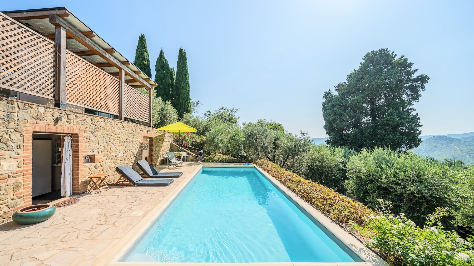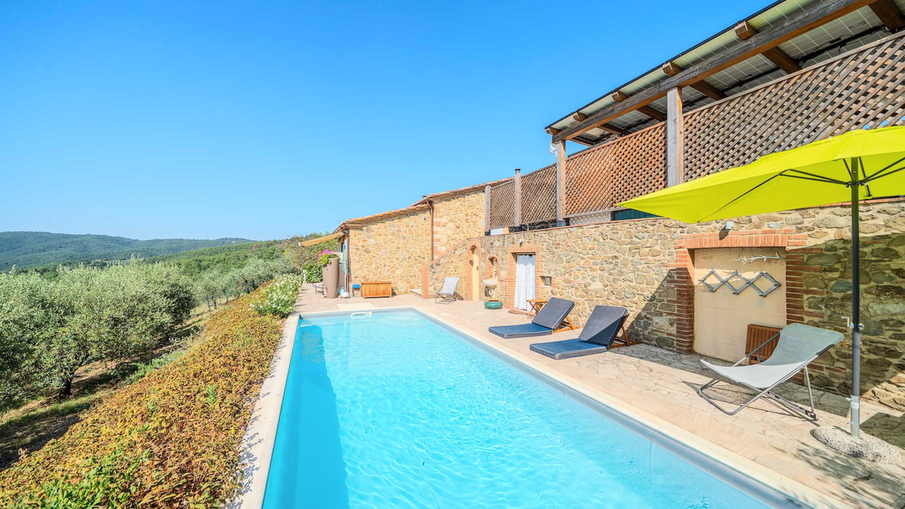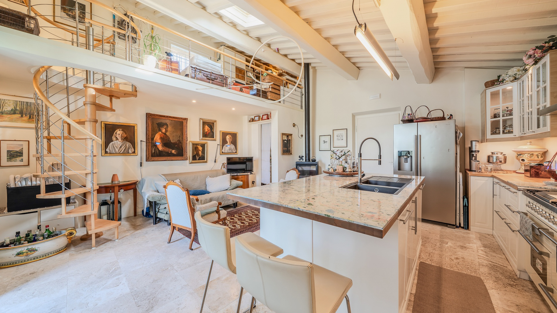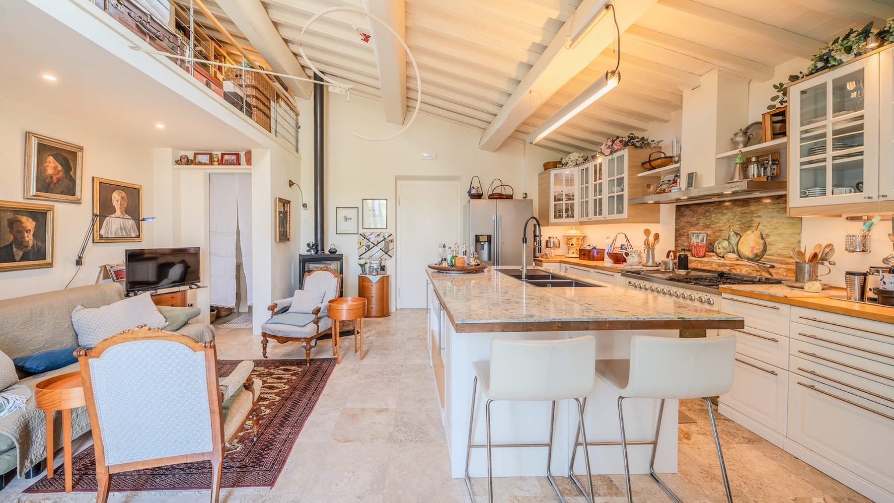 Nel cuore incantato della Val d'Ambra, tra colline verdi e paesaggi mozzafiato, sorge un antico fienile in pietra, un rifugio di pace e lusso. Qui, il profumo degli ulivi si mescola alla fresca brezza, mentre la luce del tramonto dipinge l'orizzonte di sfumature dorate, regalando un'atmosfera di serenità unica. Questa straordinaria proprietà, di 110 mq, è stata sapientemente ristrutturata per fondere il fascino rustico toscano con dettagli contemporanei. L'ingresso accoglie con un luminoso soggiorno open space, dove ampie vetrate panoramiche inondano di luce lo spazio dominato da travi in legno a vista. La moderna cucina a isola si integra perfettamente con l'ambiente circostante. Una scala a chiocciola conduce ad un soppalco in legno e ferro, ideale come studio o accogliente spazio per gli ospiti. La zona notte offre una camera matrimoniale con elegante bagno en suite e vista sull'uliveto. All'esterno, una splendida piscina riscaldata di 27 mq e un ampio giardino invitano a momenti di relax e convivialità al sole. Vivere qui significa abbracciare uno stile di vita immerso nella natura, godendo di tramonti spettacolari dalla terrazza e serate estive all'aperto, circondati dal silenzio delle colline toscane. Questa dimora è il luogo perfetto per ritrovare se stessi, lontano dal caos quotidiano, in un angolo di paradiso dove ogni dettaglio è curato per offrire il massimo comfort e benessere. Questa residenza esclusiva rappresenta un'opportunità rara di possedere un pezzo di autentica Toscana, unendo tradizione e modernità in un contesto di prestigio e charme senza tempo.