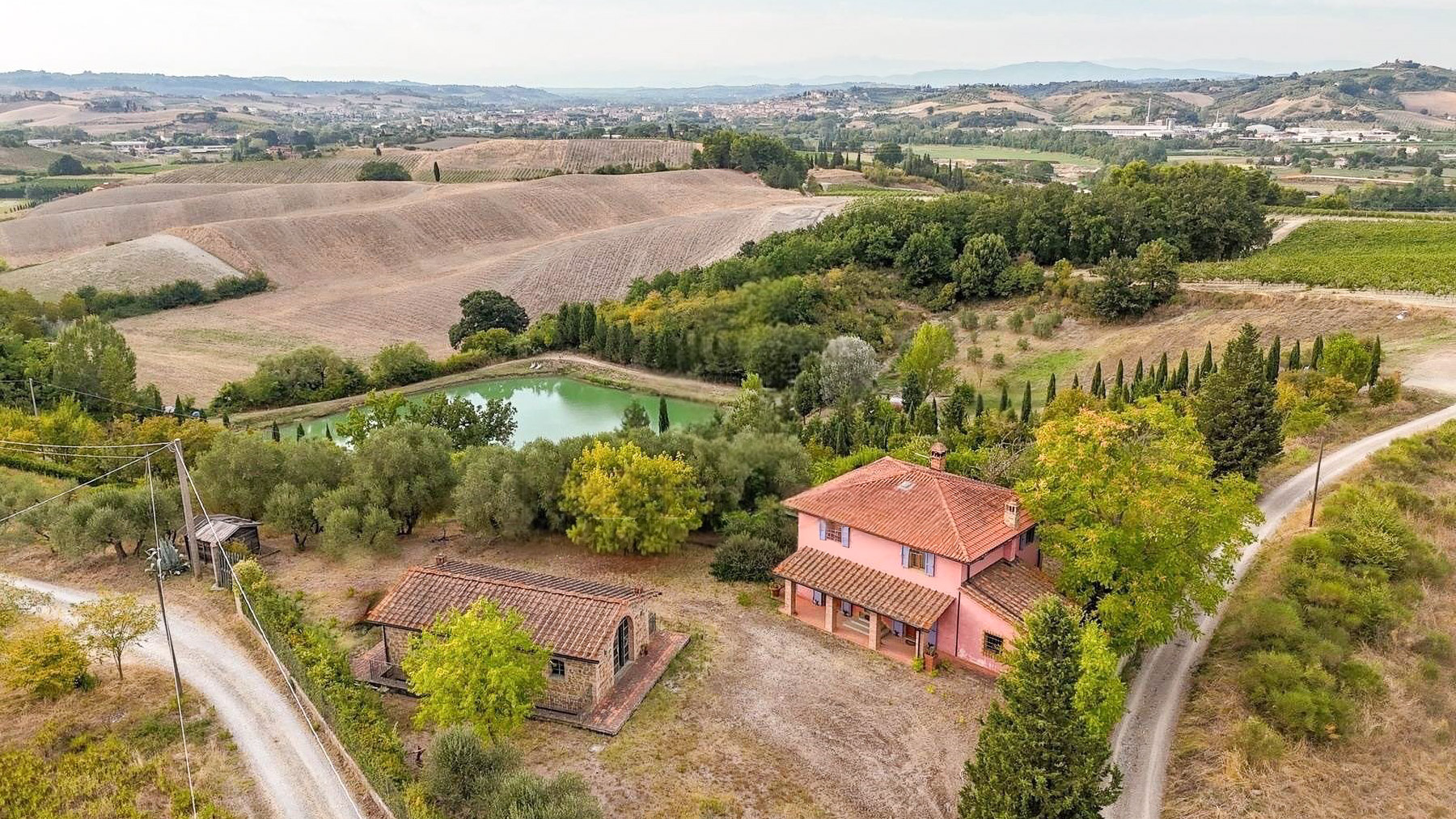 Incastonata tra le dolci colline toscane, questa magnifica proprietà è un rifugio di pace e bellezza. Qui, i suoni della natura si fondono con il fruscio delle foglie e il cinguettio degli uccelli, mentre il profumo degli ulivi e delle erbe aromatiche avvolge l'aria. La luce del sole filtra attraverso le nuvole, regalando giochi di ombre che danzano sul terreno. La residenza, situata a Gambassi Terme, nella Città Metropolitana di Firenze, si estende su 340 mq e offre dieci stanze progettate con cura e attenzione ai dettagli. La casa colonica ristrutturata è il cuore della proprietà, con un ampio salone, una zona pranzo accogliente, una cucina ben attrezzata e quattro bagni. Al piano superiore, tre camere da letto offrono un rifugio sereno, completato da un ampio bagno e un ripostiglio. Il fienile in pietra, anch'esso ristrutturato, aggiunge un tocco di rusticità e fascino, con i suoi due livelli e grandi finestre che si affacciano sul verde circostante. Circondata da un ettaro di giardino, la proprietà incanta con i suoi ulivi, un laghetto dalle acque verdi e sentieri che si snodano tra le vigne e le colline. Vivere qui significa abbandonarsi al ritmo lento della campagna, dove le giornate si trascorrono tra passeggiate all'aria aperta e momenti di relax nel giardino. Immagina di sorseggiare un bicchiere di vino locale al tramonto, mentre il cielo si tinge di rosa e arancio, o di organizzare cene all'aperto sotto un manto di stelle, con il canto dei grilli a fare da sottofondo. Questa dimora esclusiva è l'emblema del lusso discreto e del comfort raffinato, una rara occasione per possedere un angolo di paradiso nel cuore della Toscana. Un'opportunità imperdibile per chi cerca una residenza di prestigio, immersa nella natura e nella storia di una delle regioni più affascinanti d'Italia.
