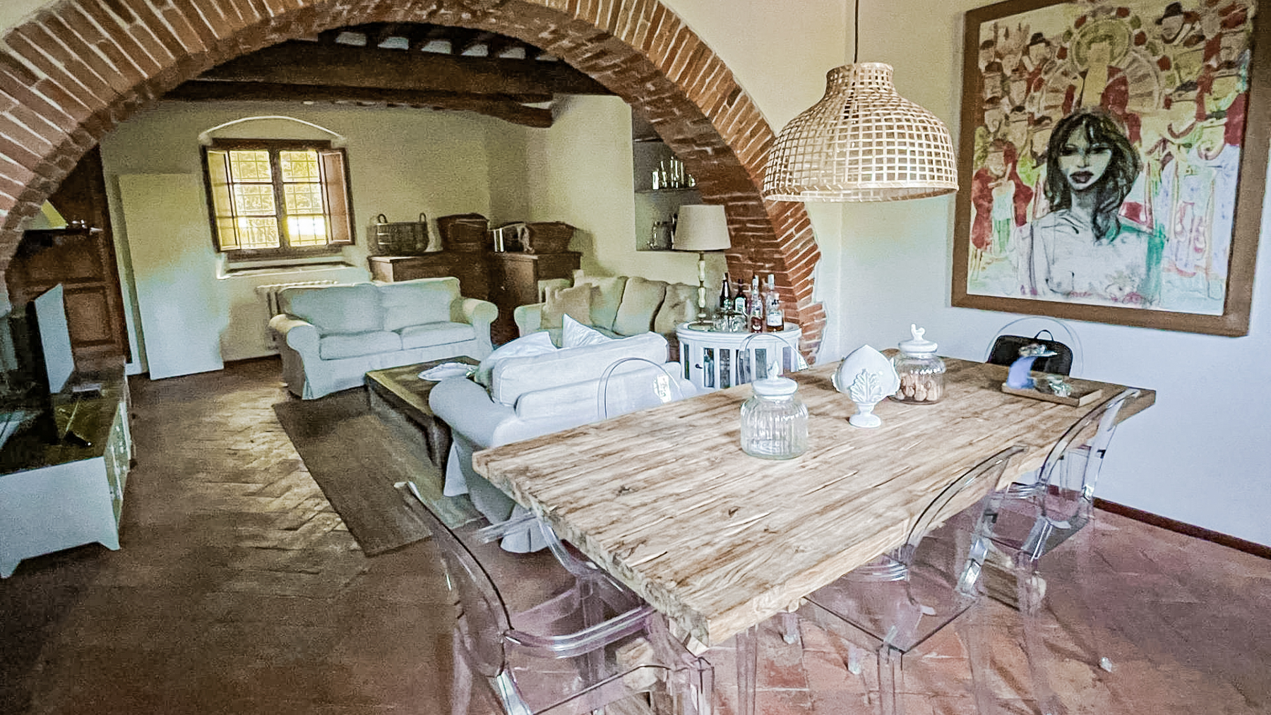 Avvolto dalla magia della campagna toscana, questo antico frantoio del 1600, situato nella suggestiva località di Valdicastello a Pietrasanta, rappresenta un rifugio di pace e bellezza. Immagina di essere accolto dalla luce dorata del tramonto che filtra tra i rami degli alberi, mentre il profumo delle piante mediterranee riempie l'aria. Una tenuta che sussurra storie di un tempo passato, ora arricchita da comfort moderni. La proprietà si estende su 400 mq, suddivisi in dieci stanze e quattro bagni, offrendo ampi spazi per vivere e ricevere ospiti. Il giardino di 3400 mq è un vero paradiso, con una piscina di 12x6 metri che invita a rinfrescanti tuffi estivi. All'interno, un grande salone con elementi originali dell'antico frantoio, una sala da pranzo elegante e una cucina moderna si combinano per creare un'atmosfera accogliente e sofisticata. Dalla camera padronale, con camino in pietra e accesso diretto al giardino, si gode di una vista incantevole sulla natura circostante. Vivere qui significa abbracciare uno stile di vita all'insegna della tranquillità e del lusso discreto. Immagina di trascorrere le serate d'estate sotto il gazebo, con il suono della natura come sottofondo, o di organizzare cene all'aperto nella zona barbecue, creando ricordi indimenticabili con amici e famiglia. La possibilità di disporre di un appartamento per il personale di servizio garantisce ulteriore comodità e privacy. Questa dimora unica nel suo genere rappresenta l'armonia perfetta tra charme storico ed eleganza moderna. Un'opportunità rara nel cuore della campagna toscana, dove il lusso si fonde con la serenità della natura, offrendo un rifugio esclusivo per chi cerca il meglio della vita.