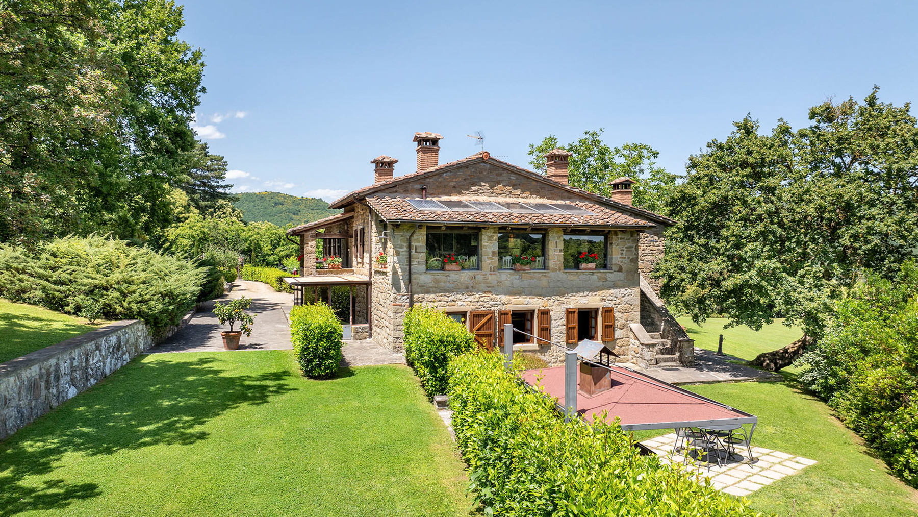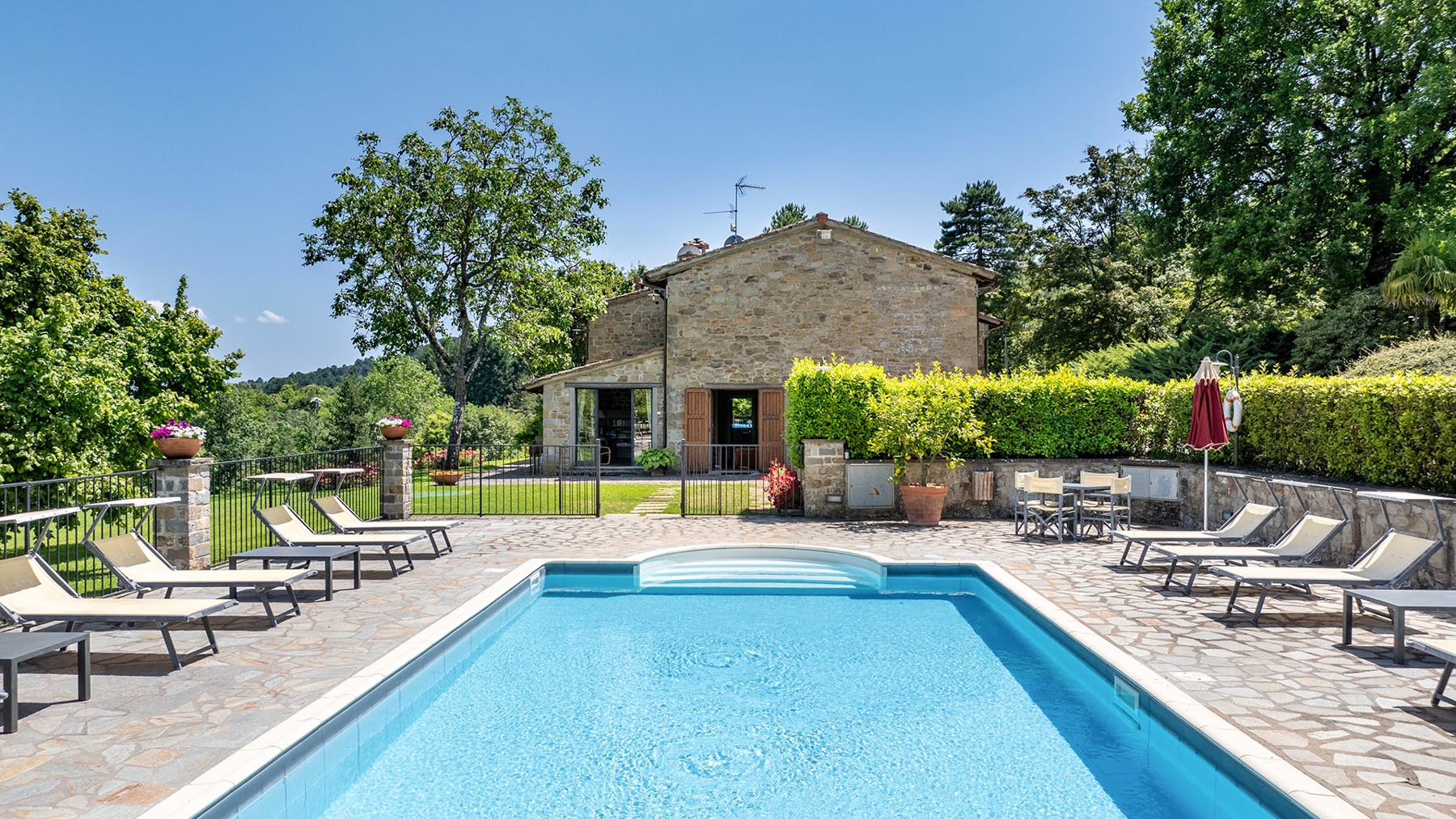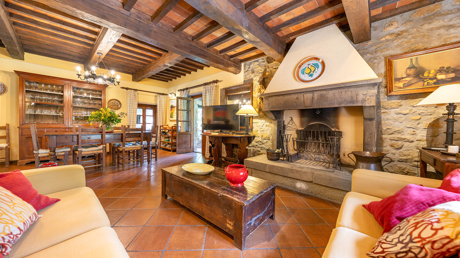 Immerso tra le dolci colline toscane, questo casolare del XIX secolo si erge come un rifugio di pace e lusso, abbracciato dal profumo dei cipressi e dal canto degli uccelli. Situato nella suggestiva vallata che unisce il Casentino al Chianti, la proprietà offre viste mozzafiato e un assaggio della campagna toscana più autentica. La villa, di 320 mq, si sviluppa su due livelli e vanta 11 stanze e 8 bagni, ognuno arredato con eleganza e attenzione ai dettagli. Elementi rustici toscani, come muri in pietra e travi a vista, si fondono armoniosamente con arredi di pregio, creando un ambiente accogliente e raffinato. Gli spazi esterni sono altrettanto invitanti, con un giardino curato e una piscina panoramica che invita al relax. Situata nella provincia di Arezzo, questa dimora offre un perfetto equilibrio tra la vita di campagna e la vicinanza alle città d'arte. Immagina di iniziare la giornata con una colazione sulla terrazza panoramica, mentre il sole sorge sulle colline, e di concluderla con una cena sotto le stelle nel giardino incantato. Le giornate possono essere trascorse tra tuffi in piscina e momenti di relax nella spa privata, circondati dalla bellezza naturale del paesaggio toscano. Questa proprietà rappresenta un'opportunità irripetibile per chi cerca un angolo di paradiso che unisca tradizione e comfort moderno, un gioiello raro nel mercato immobiliare di lusso.