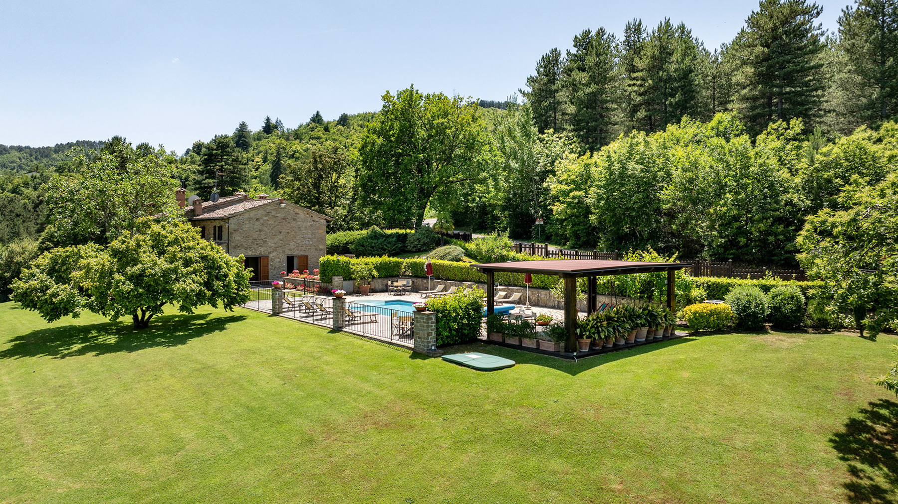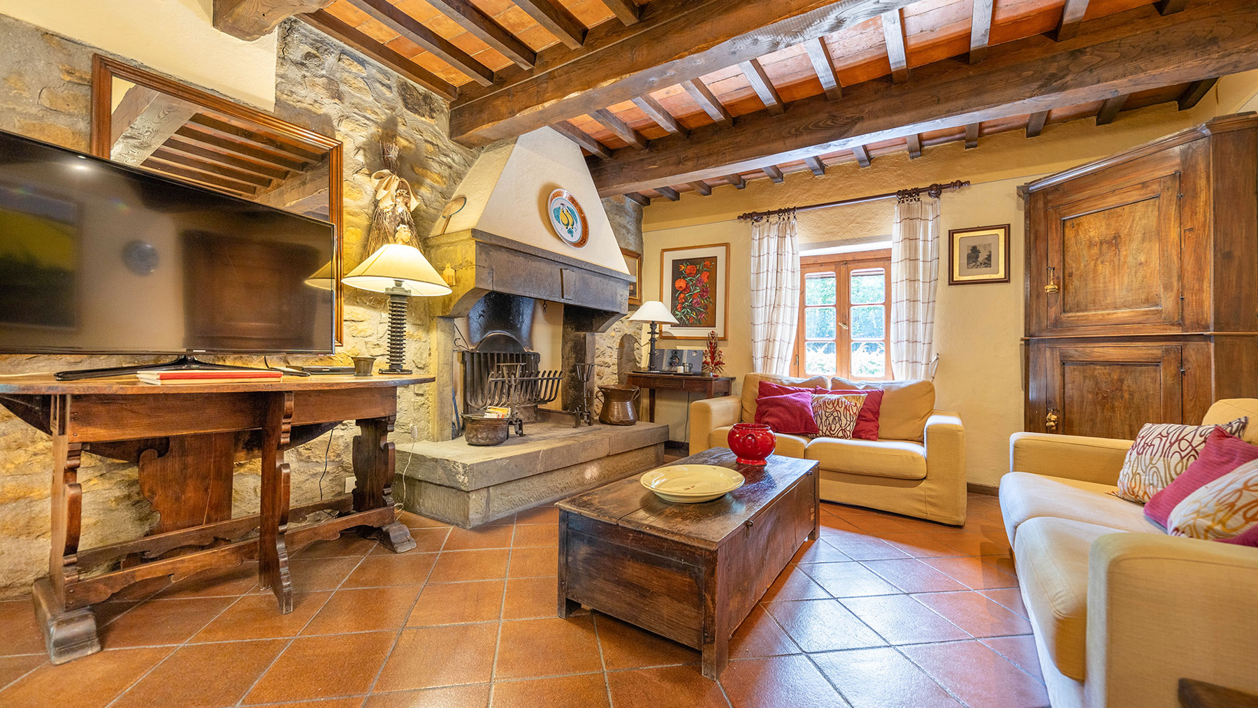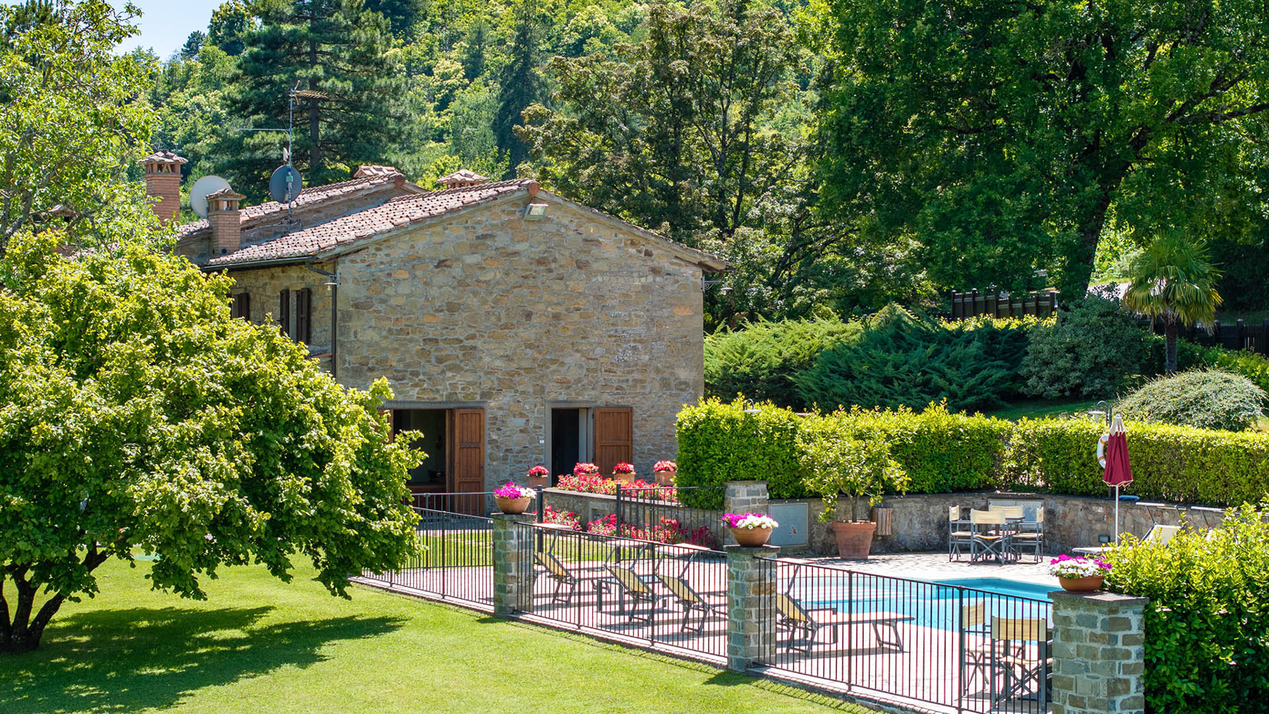 Immerso tra le dolci colline toscane, questo casolare del XIX secolo si erge come un rifugio di pace e lusso, abbracciato dal profumo dei cipressi e dal canto degli uccelli. Situato nella suggestiva vallata che unisce il Casentino al Chianti, la proprietà offre viste mozzafiato e un assaggio della campagna toscana più autentica. La villa, di 320 mq, si sviluppa su due livelli e vanta 11 stanze e 8 bagni, ognuno arredato con eleganza e attenzione ai dettagli. Elementi rustici toscani, come muri in pietra e travi a vista, si fondono armoniosamente con arredi di pregio, creando un ambiente accogliente e raffinato. Gli spazi esterni sono altrettanto invitanti, con un giardino curato e una piscina panoramica che invita al relax. Situata nella provincia di Arezzo, questa dimora offre un perfetto equilibrio tra la vita di campagna e la vicinanza alle città d'arte. Immagina di iniziare la giornata con una colazione sulla terrazza panoramica, mentre il sole sorge sulle colline, e di concluderla con una cena sotto le stelle nel giardino incantato. Le giornate possono essere trascorse tra tuffi in piscina e momenti di relax nella spa privata, circondati dalla bellezza naturale del paesaggio toscano. Questa proprietà rappresenta un'opportunità irripetibile per chi cerca un angolo di paradiso che unisca tradizione e comfort moderno, un gioiello raro nel mercato immobiliare di lusso.
