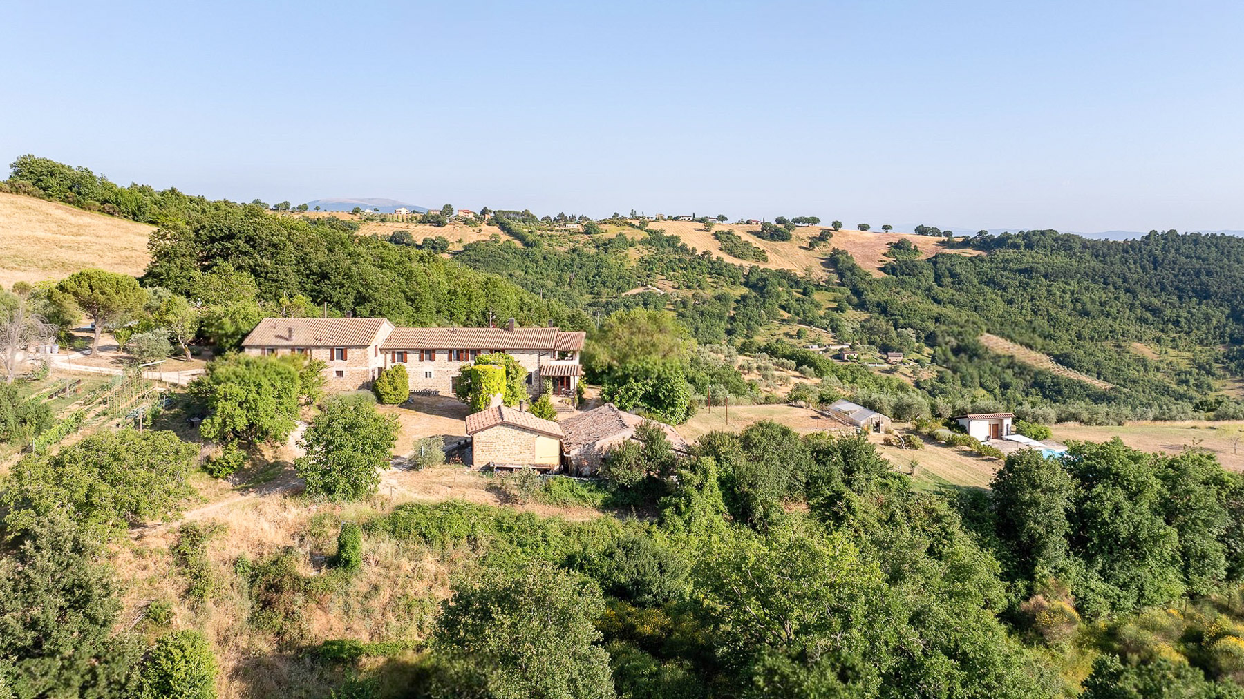 Adagiata tra le dolci colline umbre, questa magnifica tenuta è un rifugio di pace e bellezza senza pari. Qui, la natura danza con l'architettura, offrendo un panorama che si perde nell'orizzonte e profuma di ulivi e vigneti. Il canto degli uccelli accompagna le giornate, mentre il sole filtra attraverso le antiche pietre, creando giochi di luce che incantano l'anima. La proprietà, che si estende su circa 33 ettari, comprende due abitazioni di charme, sapientemente restaurate per un totale di 1100 mq. Con 27 stanze e 12 bagni, la residenza principale offre un equilibrio perfetto tra tradizione e modernità, con un appartamento privato e una struttura ricettiva che incarna l'ospitalità italiana. Un giardino curato, una piscina di 12 x 6 metri e l'abbraccio di boschi e oliveti completano questo quadro idilliaco, situato nella provincia di Perugia. Vivere qui significa lasciarsi avvolgere da un'atmosfera unica, dove ogni giorno è un'opportunità per creare ricordi indimenticabili. Immagina colazioni all'aperto con vista sulla campagna, pomeriggi rilassanti a bordo piscina e serate in compagnia sotto un cielo stellato, con il calore della pietra e il profumo delle erbe aromatiche a fare da cornice. Questa tenuta rappresenta un'occasione irripetibile per chi cerca un'esperienza abitativa esclusiva, unendo l'eleganza senza tempo alla comodità contemporanea, in un contesto di rara bellezza naturale. Un vero gioiello nel cuore dell'Umbria, pronto a diventare il tuo angolo di paradiso.