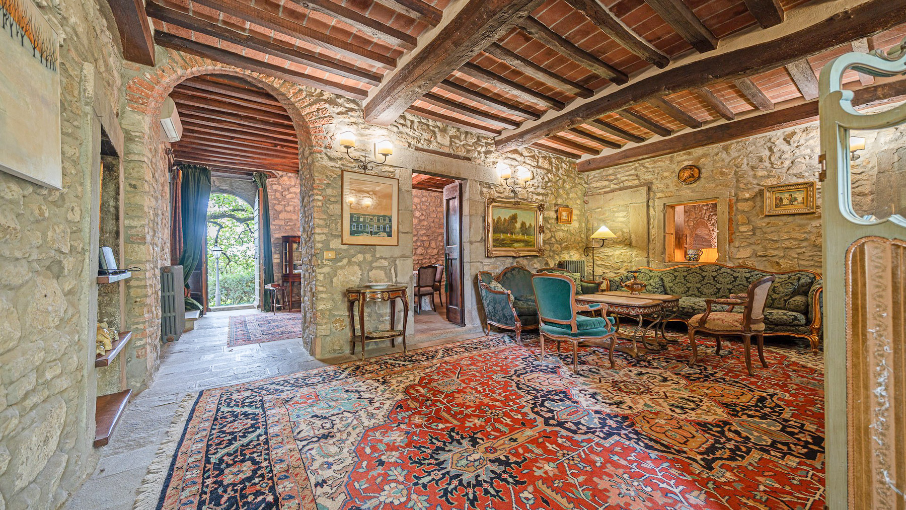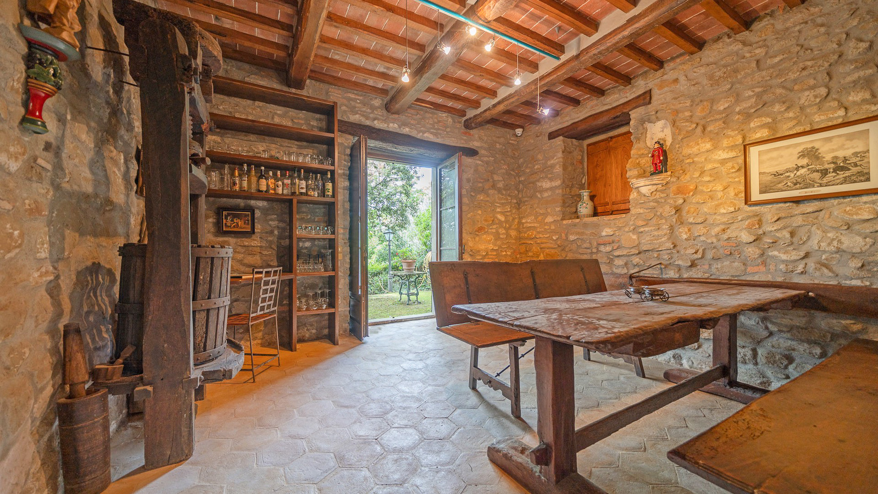 Immerso nel cuore della campagna toscana, questo incantevole casolare del 1700 vi accoglie con l'abbraccio della natura. Il profumo delle rose, curate con amore, si mescola con l'aroma dei vigneti circostanti, mentre il suono del vento tra gli ulivi e il mormorio lontano di un laghetto creano un'atmosfera di pace assoluta. A due passi da Cortona, la residenza rappresenta un rifugio di storia e bellezza. Con una superficie di 554 mq, la proprietà si snoda su tre livelli, offrendo 13 stanze e 4 bagni. L'ingresso principale conduce a una spaziosa zona giorno, dove la cucina in muratura e il caminetto invitano a momenti di convivialità. I dettagli rustici, come le pareti in pietra e le travi in legno, conferiscono calore agli ambienti, mentre la cantina e il frantoio raccontano storie di tradizione vinicola. All'esterno, la dependance con patio offre un angolo di quiete per gli ospiti, circondati da 8 ettari di terreno con ulivi, vigneti e alberi da frutto. Vivete l'emozione di una vita autentica in campagna, dove le giornate si riempiono del canto degli uccelli e delle passeggiate tra i filari. Immaginate serate trascorse sotto le stelle, circondati da amici e famiglia, con il calore del caminetto e il profumo dei piatti tipici toscani a deliziare i vostri sensi. Ogni angolo di questa dimora evoca serenità e armonia. Questa proprietà esclusiva offre un'opportunità irripetibile per chi desidera unire il fascino del passato con il comfort moderno. Un tesoro nascosto nel paesaggio toscano, perfetto per chi ricerca eleganza e tranquillità.