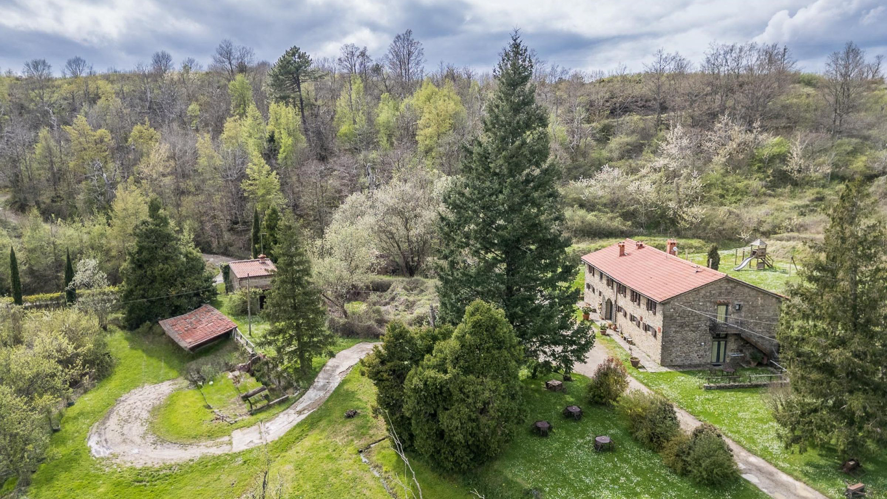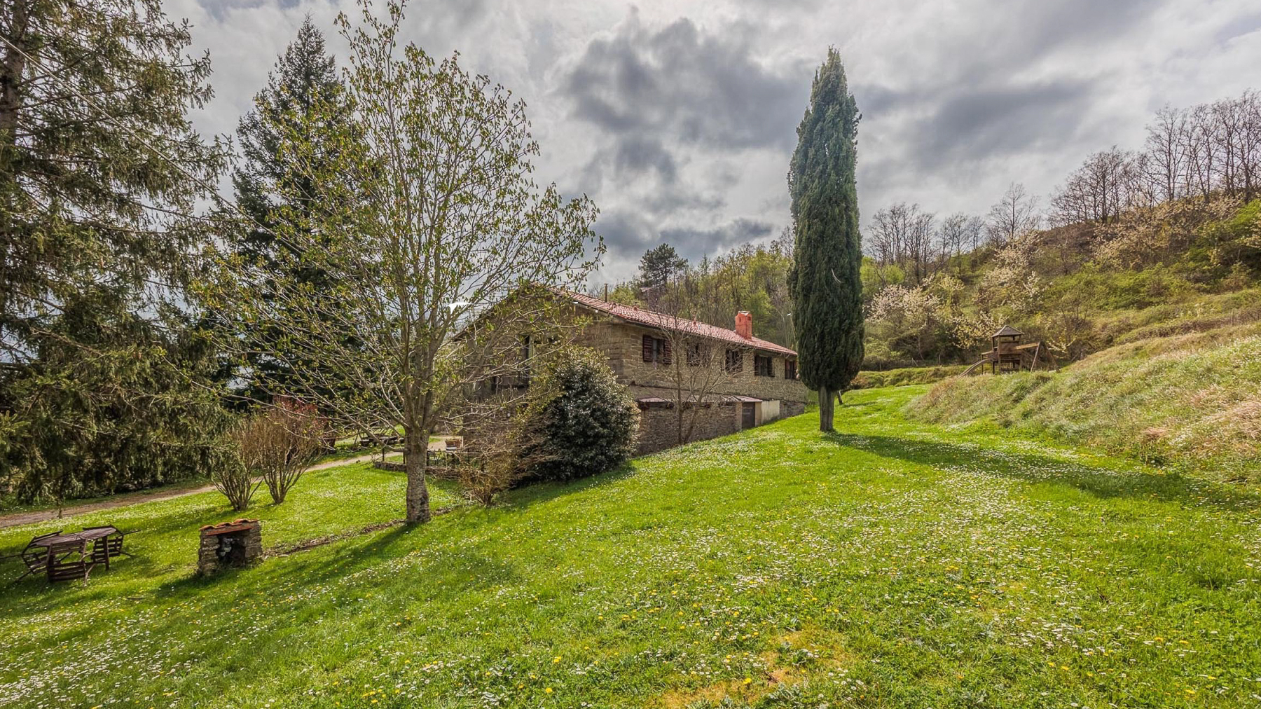 Immersa nel cuore verdeggiante della Toscana, questa magnifica tenuta si erge alle pendici del Pratomagno, avvolta da boschi di castagni e prati rigogliosi. Qui, i suoni della natura e i profumi della terra creano un'atmosfera di pura armonia. A metà strada tra Firenze e Arezzo, la proprietà offre viste mozzafiato sulle celebri Balze del Valdarno, in un contesto naturale di incomparabile bellezza. La proprietà, che si sviluppa su 800 mq, comprende un casale del 1933 sapientemente restaurato. Gli interni offrono venti stanze e nove bagni, suddivisi in cinque accoglienti appartamenti con licenza agrituristica fin dal 1987. Il ristorante, ricavato dall'antica stalla, è rinomato per la sua cucina toscana tradizionale. Tra le caratteristiche distintive spiccano un ampio giardino, una piscina, tre laghetti, due sorgenti d'acqua e un rudere con progetto di recupero. Situata a Castelfranco Piandiscò, in provincia di Arezzo, la tenuta garantisce privacy assoluta, ideale anche per attività legate all'allevamento equestre. Immagina di trascorrere giornate tra escursioni nei boschi e pomeriggi rilassanti a bordo piscina. Le serate si animano con cene sotto le stelle, accompagnate dal dolce suono della natura circostante. Ogni angolo di questa proprietà invita a vivere esperienze autentiche e memorabili, nella quiete della campagna toscana. Questa tenuta rappresenta un'opportunità irripetibile per chi cerca una dimora di lusso che coniughi storia, natura e comfort moderno. Un gioiello esclusivo nel panorama immobiliare toscano, perfetto per chi desidera vivere la bellezza senza compromessi.