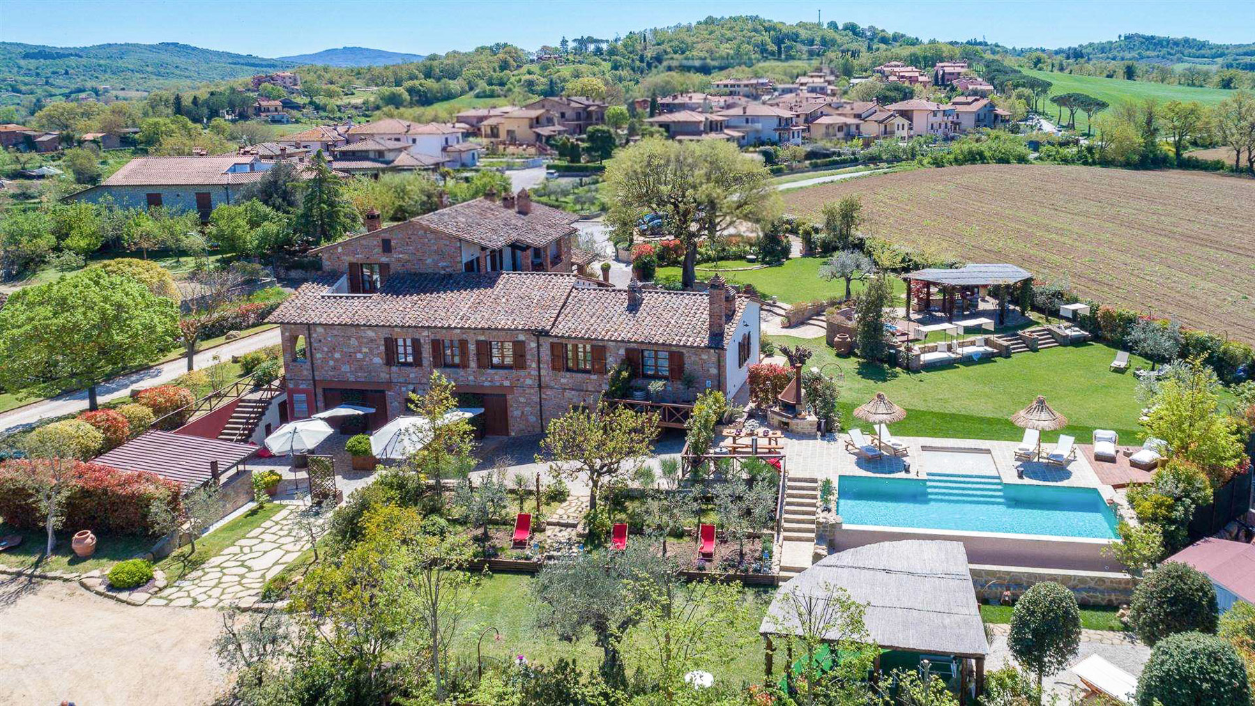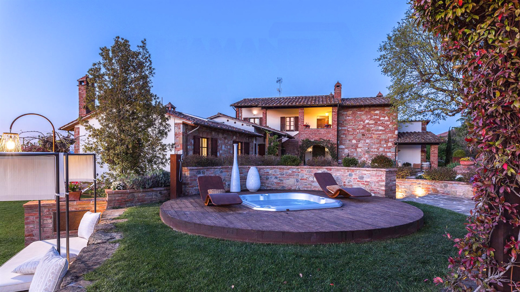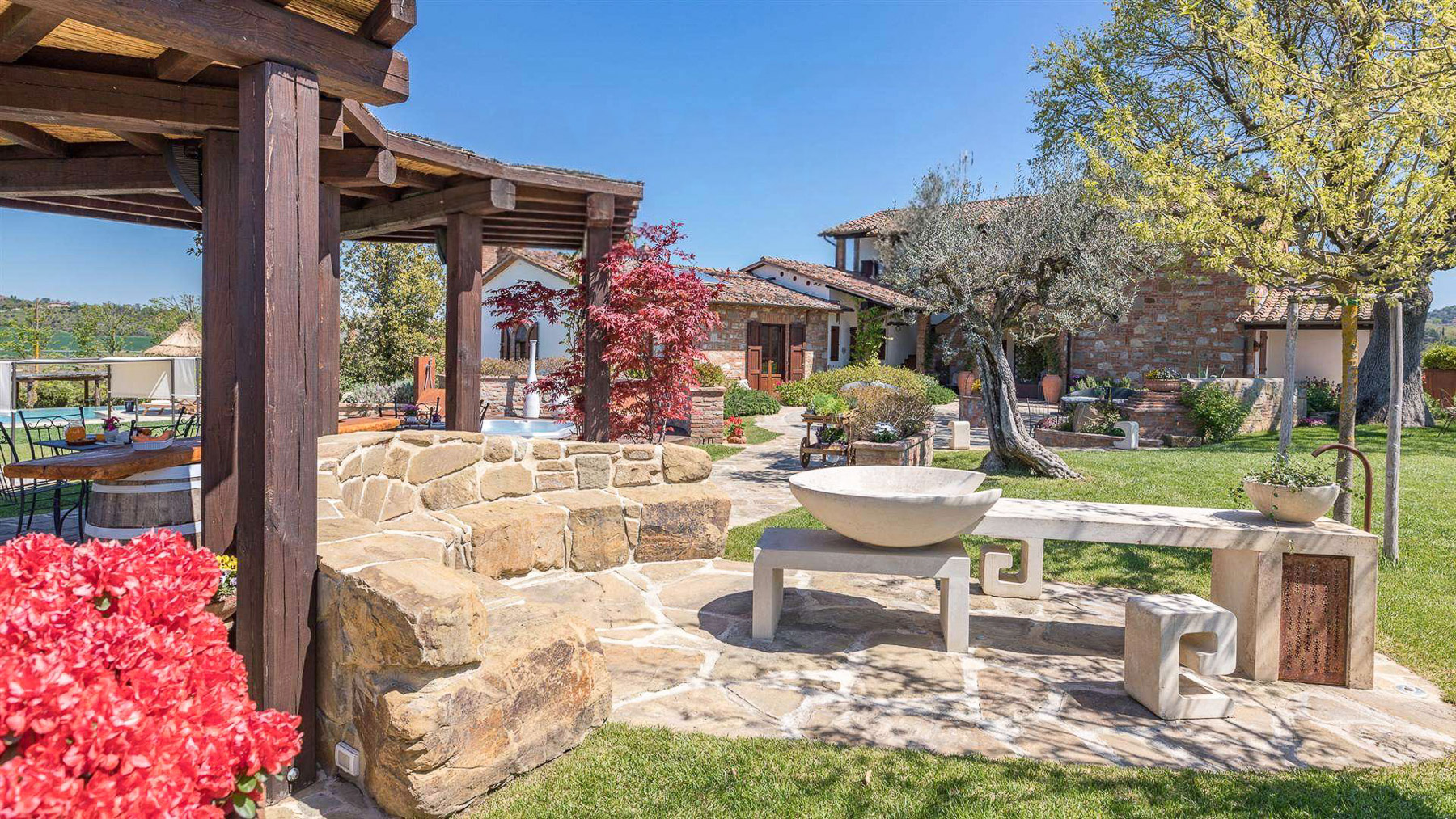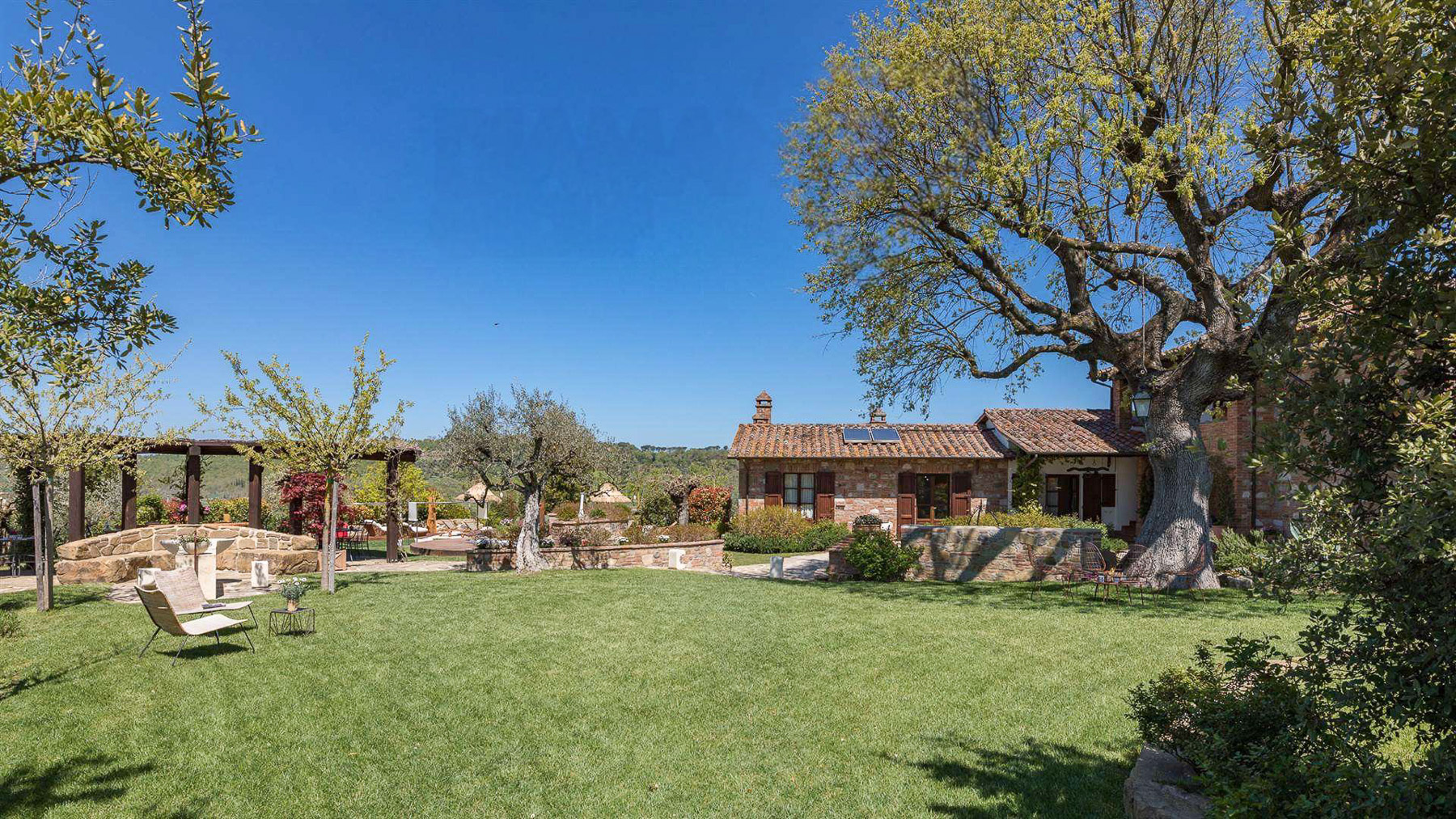 Incastonato tra le dolci colline umbre, questo casale offre un rifugio di pace e bellezza. Immagina di aprire le finestre al mattino e lasciarti accarezzare dalla brezza leggera, mentre il sole illumina il parco circostante, un vasto giardino di 5000 mq dove fiori e alberi danzano al ritmo delle stagioni. Qui, il canto degli uccelli è l'unico suono che rompe il silenzio, mentre il profumo dei pini e delle piante aromatiche riempie l'aria. La proprietà, situata a Città della Pieve, in provincia di Perugia, si estende su 800 mq distribuiti su due livelli. Questo casale di lusso, completamente ristrutturato, è diviso in quattro appartamenti indipendenti, con un totale di 14 stanze e 6 bagni. Tra le caratteristiche distintive spiccano la splendida piscina infinity e un grande gazebo con Jacuzzi, perfetti per momenti di relax e intrattenimento. Al piano seminterrato, ampi spazi adibiti a garage e cantina offrono praticità e comfort. Vivere in questa residenza è un invito a godere di uno stile di vita esclusivo. Immagina giornate estive trascorse oziosamente a bordo piscina, serate accoglienti tra amici sotto il grande gazebo, mentre il cielo si tinge dei colori del tramonto. La bellezza e la tranquillità di questo luogo offrono un rifugio perfetto dallo stress quotidiano, trasformando ogni momento in un'esperienza indimenticabile. Questa proprietà rappresenta un'opportunità unica nel mondo immobiliare di lusso, combinando eleganza senza tempo e modernità, nel cuore di un paesaggio affascinante e incontaminato. Un vero gioiello che attende di essere scoperto.