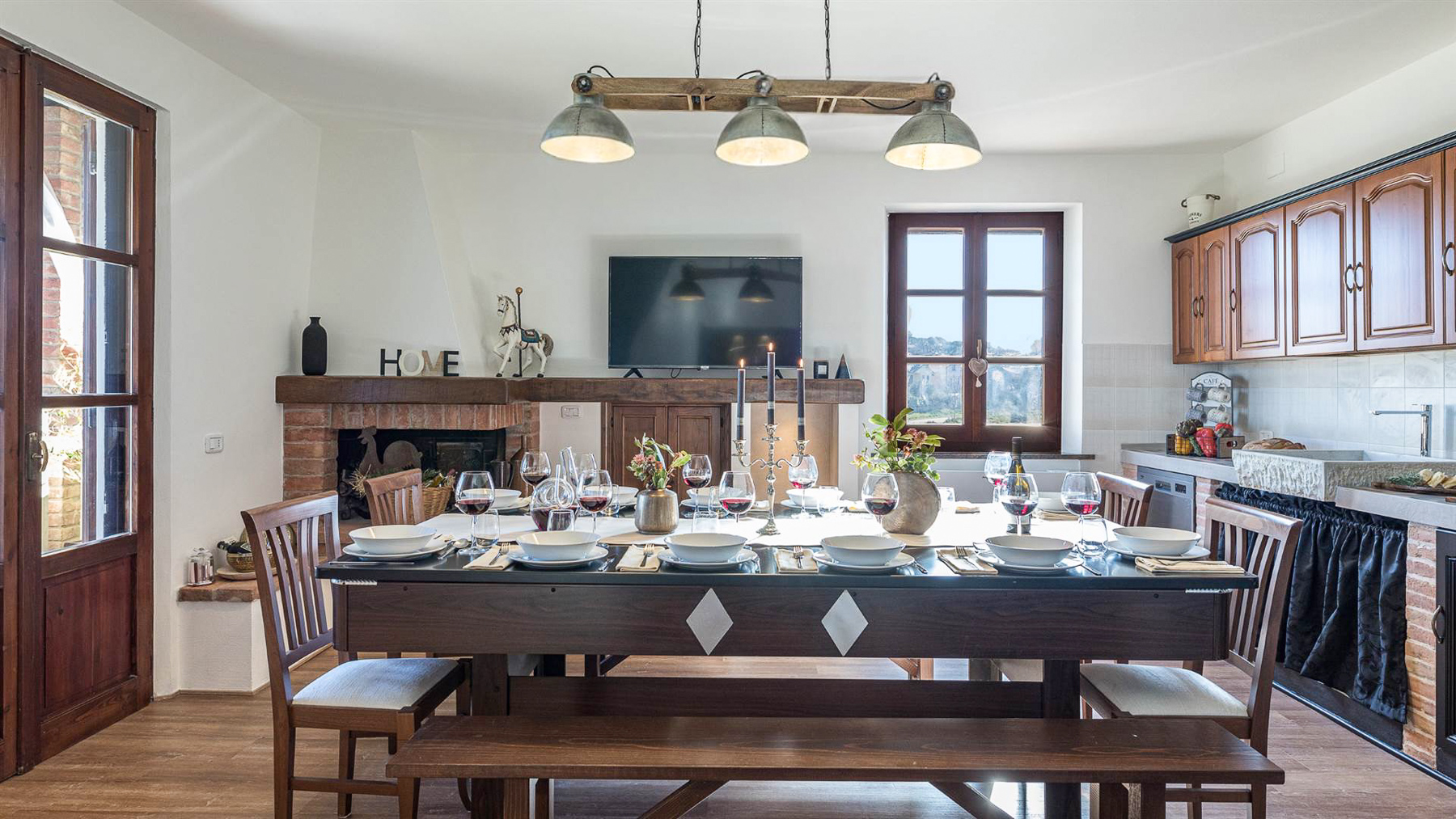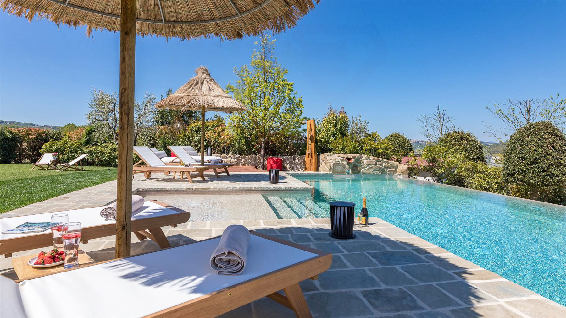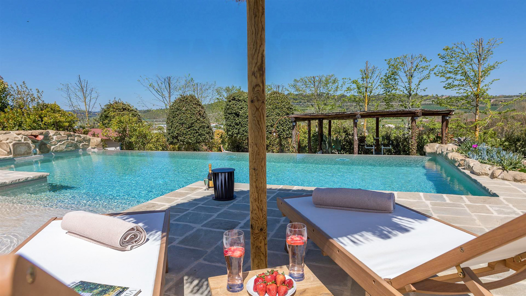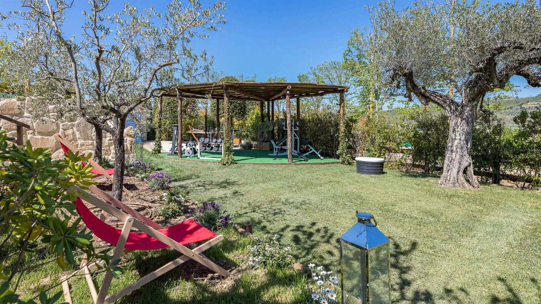 Incastonato tra le dolci colline umbre, questo casale offre un rifugio di pace e bellezza. Immagina di aprire le finestre al mattino e lasciarti accarezzare dalla brezza leggera, mentre il sole illumina il parco circostante, un vasto giardino di 5000 mq dove fiori e alberi danzano al ritmo delle stagioni. Qui, il canto degli uccelli è l'unico suono che rompe il silenzio, mentre il profumo dei pini e delle piante aromatiche riempie l'aria. La proprietà, situata a Città della Pieve, in provincia di Perugia, si estende su 800 mq distribuiti su due livelli. Questo casale di lusso, completamente ristrutturato, è diviso in quattro appartamenti indipendenti, con un totale di 14 stanze e 6 bagni. Tra le caratteristiche distintive spiccano la splendida piscina infinity e un grande gazebo con Jacuzzi, perfetti per momenti di relax e intrattenimento. Al piano seminterrato, ampi spazi adibiti a garage e cantina offrono praticità e comfort. Vivere in questa residenza è un invito a godere di uno stile di vita esclusivo. Immagina giornate estive trascorse oziosamente a bordo piscina, serate accoglienti tra amici sotto il grande gazebo, mentre il cielo si tinge dei colori del tramonto. La bellezza e la tranquillità di questo luogo offrono un rifugio perfetto dallo stress quotidiano, trasformando ogni momento in un'esperienza indimenticabile. Questa proprietà rappresenta un'opportunità unica nel mondo immobiliare di lusso, combinando eleganza senza tempo e modernità, nel cuore di un paesaggio affascinante e incontaminato. Un vero gioiello che attende di essere scoperto.