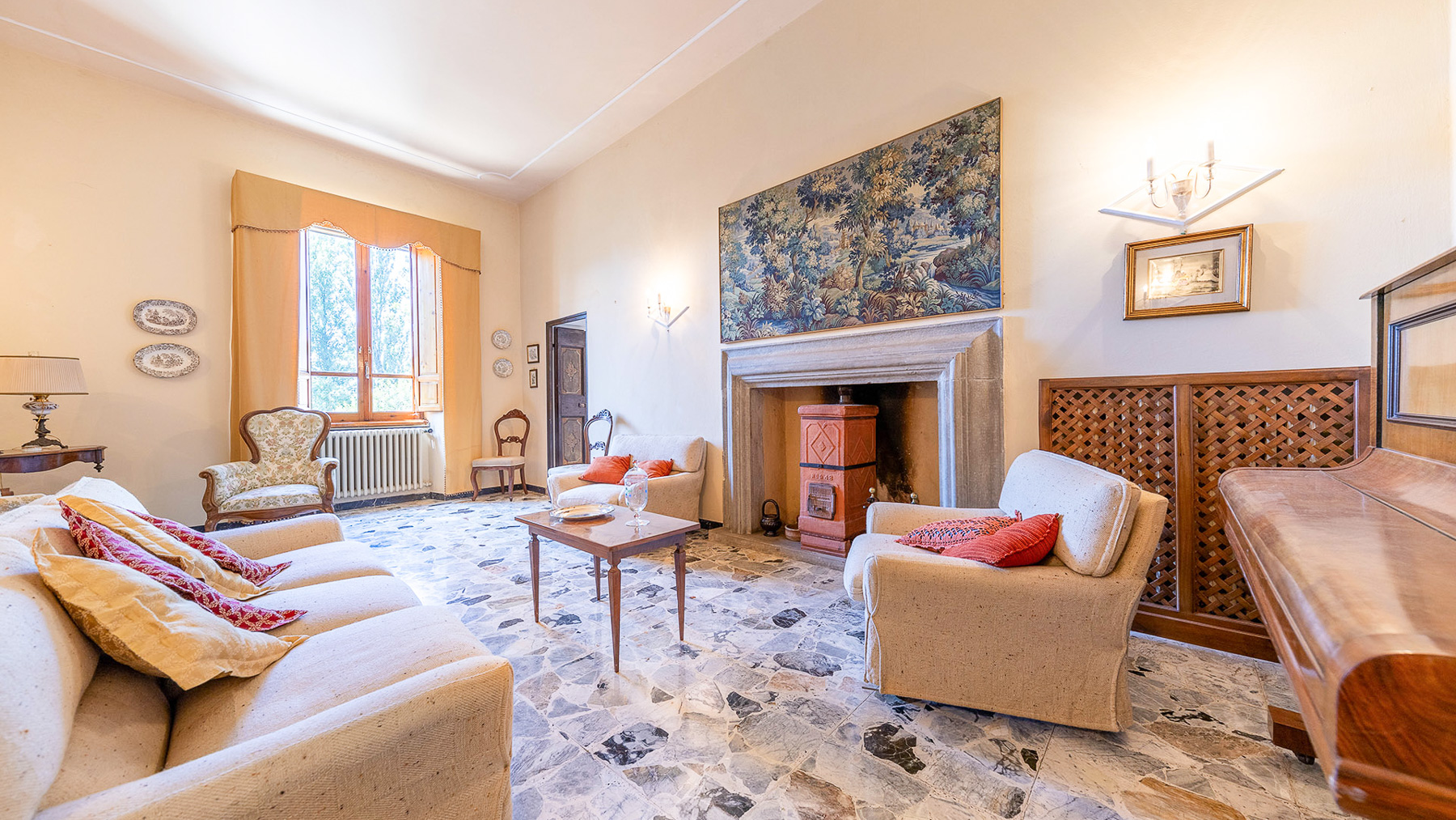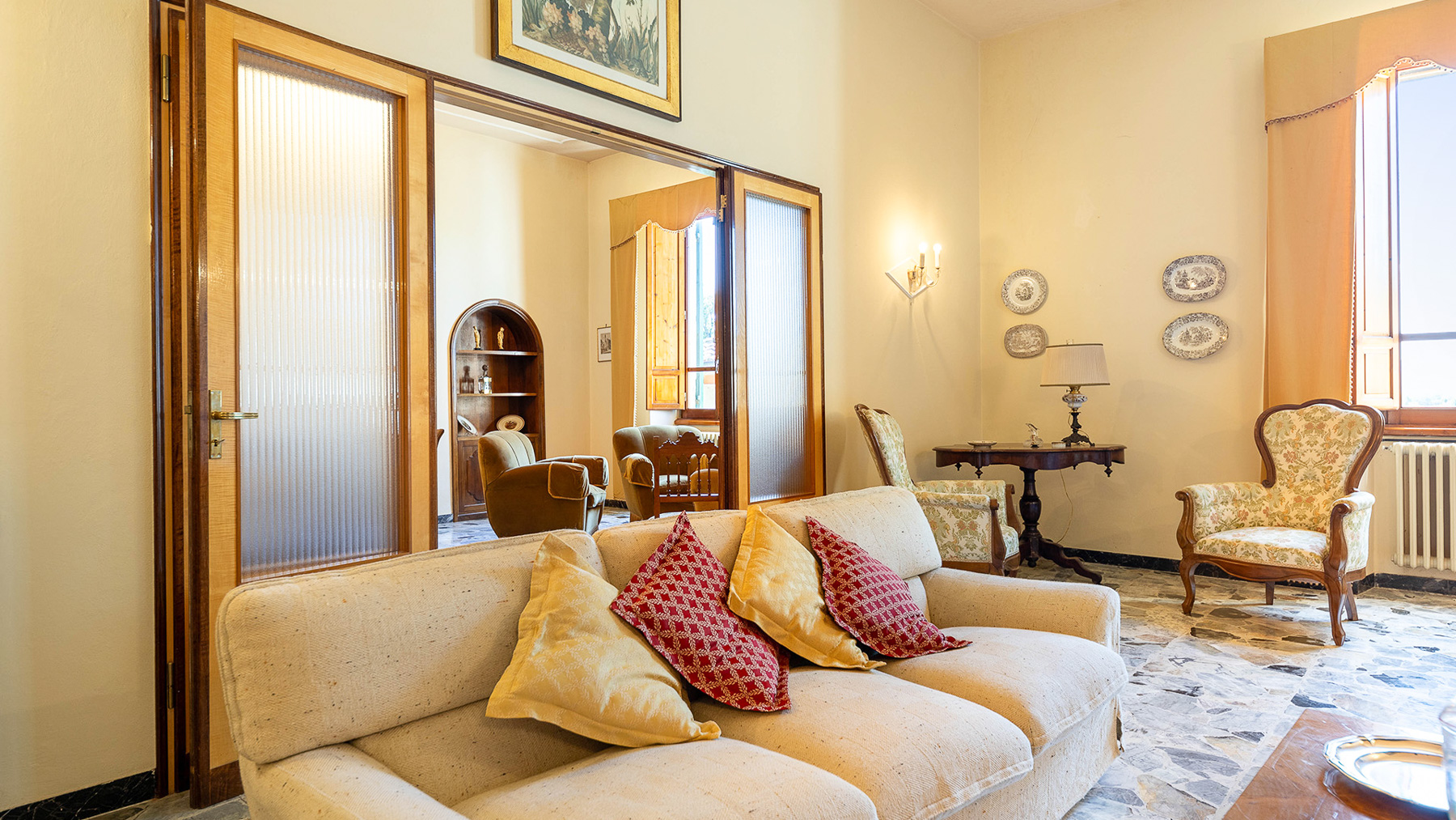 Immerso nella splendida campagna umbra, tra San Giustino e Città di Castello, sorge un palazzo nobiliare del XIX secolo. Qui, il tempo sembra essersi fermato, avvolto dal profumo dei pini e dal canto degli uccelli. I raggi del sole filtrano tra le foglie degli alberi secolari, creando giochi di luce che danzano sulle antiche mura. Questa magnifica proprietà si estende su 940 mq, comprendendo il palazzo principale e due pertinenze ad uso agricolo. Con 17 ampie stanze e 3 eleganti bagni, la residenza offre spazi generosi e accoglienti. Gli interni, ricchi di dettagli storici, includono un affascinante soggiorno con camino e pavimenti in pietra, mentre il giardino all'italiana di 16.000 mq, con vialetti, fontane e alberi maestosi, garantisce privacy e serenità. Vivere qui è un'esperienza unica: immagina di sorseggiare un calice di vino nel porticato, ammirando il tramonto sulle colline