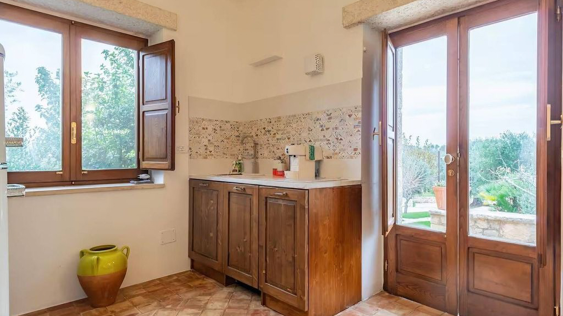 Immersa nel cuore delle campagne rigogliose della Valle D'Itria, questa straordinaria proprietà a Cisternino è un rifugio di lusso che incanta i sensi. Avvolta dai profumi mediterranei e da un panorama mozzafiato, ti invita a svegliarti con il cinguettio degli uccelli e a godere di tramonti dorati che si riflettono nella piscina a sfioro. Questa esclusiva dimora si estende su 346 mq e comprende cinque abitazioni indipendenti, magistralmente ristrutturate in trulli e lamie. Ogni residenza è un capolavoro di architettura tradizionale, che coniuga eleganza e comfort moderno. Gli interni offrono spazi ampi e luminosi, con camere da letto accoglienti, cucine abitabili e bagni dal design contemporaneo. Un giardino curato e una piscina infinity riscaldata completano questa oasi di serenità, situata a Cisternino, Brindisi, a pochi passi dal mare. Vivere qui significa abbracciare un lifestyle unico, in perfetta armonia con la natura. Immagina di degustare vini pregiati prodotti dal vigneto privato, o di passeggiare tra gli ulivi secolari. Le serate si trasformano in momenti magici, con cene all'aperto sotto un cielo stellato che racconta storie antiche. Questa proprietà esclusiva rappresenta l'apice del lusso e della tranquillità, un'opportunità rara nel panorama immobiliare. Scopri la magia di una vita che combina perfettamente eleganza senza tempo e comfort contemporaneo.