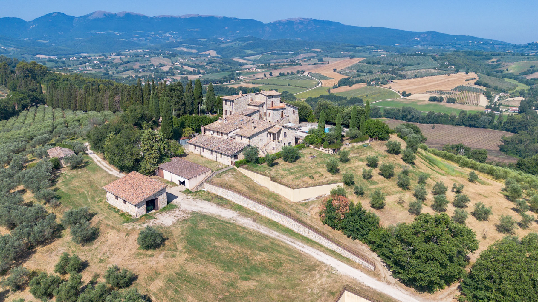 Tra le colline sinuose dell’Umbria, Poggio del Vescovo si erge maestosa, avvolta in un’atmosfera di quiete e bellezza senza tempo. Qui, il profumo degli ulivi si mescola con la brezza leggera, mentre il panorama mozzafiato delle colline umbre si apre davanti agli occhi, regalando una sensazione di pace e serenità. Questa eccezionale tenuta, situata nei pressi di Spoleto, si estende per 2100 mq e comprende due casolari storici, offrendo un totale di 20 stanze e 15 bagni. Ogni ambiente è curato nei minimi dettagli, conservando pavimenti in cotto originale e soffitti con travi in legno a vista, riflettendo il perfetto connubio tra storia e comfort moderno. All’esterno, un parco di 30 ettari con 4.000 ulivi e alberi secolari accoglie una splendida piscina, ideale per rilassarsi al sole della campagna umbra. Vivere a Poggio del Vescovo significa immergersi in un’esperienza unica, dove ogni giorno è un viaggio attraverso il tempo. Immagina di passeggiare tra i giardini curati all'alba, o di gustare un calice di vino al tramonto, circondato dalla bellezza incontaminata della natura. Questa proprietà rappresenta un’opportunità irripetibile per chi cerca un rifugio di lusso e tranquillità nella campagna italiana. Un incantevole viaggio nel passato che offre tutto il prestigio e l'eleganza di un immobile di lusso.