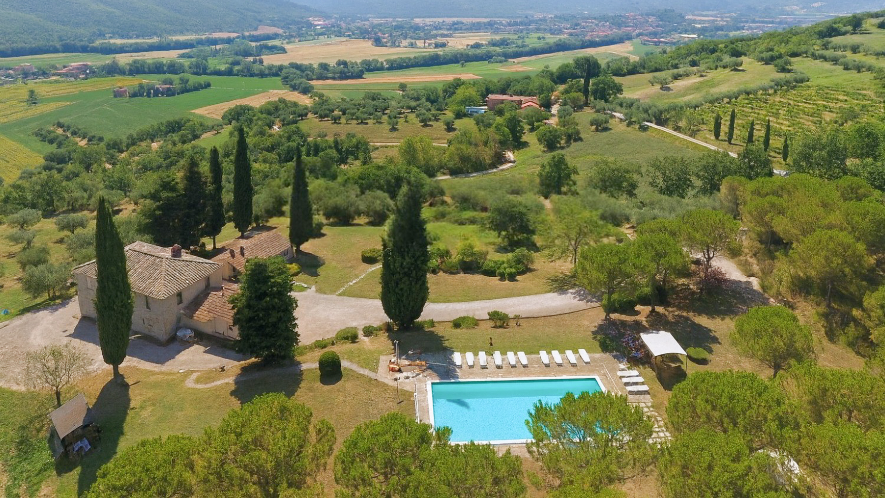 Immersa nelle dolci colline umbre, in posizione dominante e straordinariamente panoramica tra Perugia e il Lago Trasimeno, questa prestigiosa tenuta rappresenta un’autentica espressione di eleganza rurale e charme senza tempo. La proprietà si estende su una superficie complessiva di circa 949 mq, articolata in un corpo principale di 756 mq, 188 mq tra dependance e annessi, oltre a suggestive terrazze e logge. Il cuore della tenuta è un ampio terreno di circa 70 ettari che accoglie un raffinato vigneto di 5.000 mq coltivato con vitigni autoctoni – Sangiovese e Trebbiano – e un importante uliveto con circa 850 piante, alcune delle quali secolari, affiancati da boschi, pascoli e seminativi che contribuiscono a creare un’atmosfera di assoluta autenticità e riservatezza. A completare questo scenario idilliaco si inseriscono una magnifica piscina panoramica di 15 x 7 metri, una cantina vinicola e un pratico magazzino attrezzi. Il complesso, attualmente destinato ad attività ricettiva di alto livello, è composto da due casali storici risalenti alla fine dell’Ottocento, finemente restaurati nel 2001 nel pieno rispetto della tradizione architettonica umbra. Esposti a sud e situati a circa 400 metri sul livello del mare, i due edifici, distanti tra loro circa 250 metri, garantiscono un perfetto equilibrio tra privacy e armonia con il paesaggio circostante. Il primo casale, caratterizzato dal tipico stile umbro, ospita tre appartamenti indipendenti per gli ospiti, oltre a spazi funzionali quali lavanderia, stireria e locale tecnico; un annesso adiacente accoglie inoltre un ulteriore appartamento autonomo, ideale per ampliare l’offerta ricettiva o assicurare la massima indipendenza. Il secondo casale, anch’esso di origine ottocentesca e oggetto di una ristrutturazione attenta e raffinata, comprende due appartamenti destinati agli ospiti e un’unità attualmente adibita a residenza privata dei proprietari, oltre a un ulteriore annesso con appartamento indipendente che completa la proprietà. Gli ambienti interni, ampi e luminosi, conservano intatto il fascino dell’architettura rurale umbra grazie a elementi autentici come i pavimenti in cotto, gli ingressi indipendenti e le finiture tradizionali; la proprietà dispone complessivamente di diciotto camere da letto, undici bagni dotati sia di vasca che di doccia, otto cucine e tre soggiorni, offrendo spazi generosi e perfettamente organizzati. Si tratta di una residenza di rara bellezza, ideale sia come esclusiva dimora privata immersa nella natura, sia come investimento di prestigio nel settore dell’hospitality di charme.