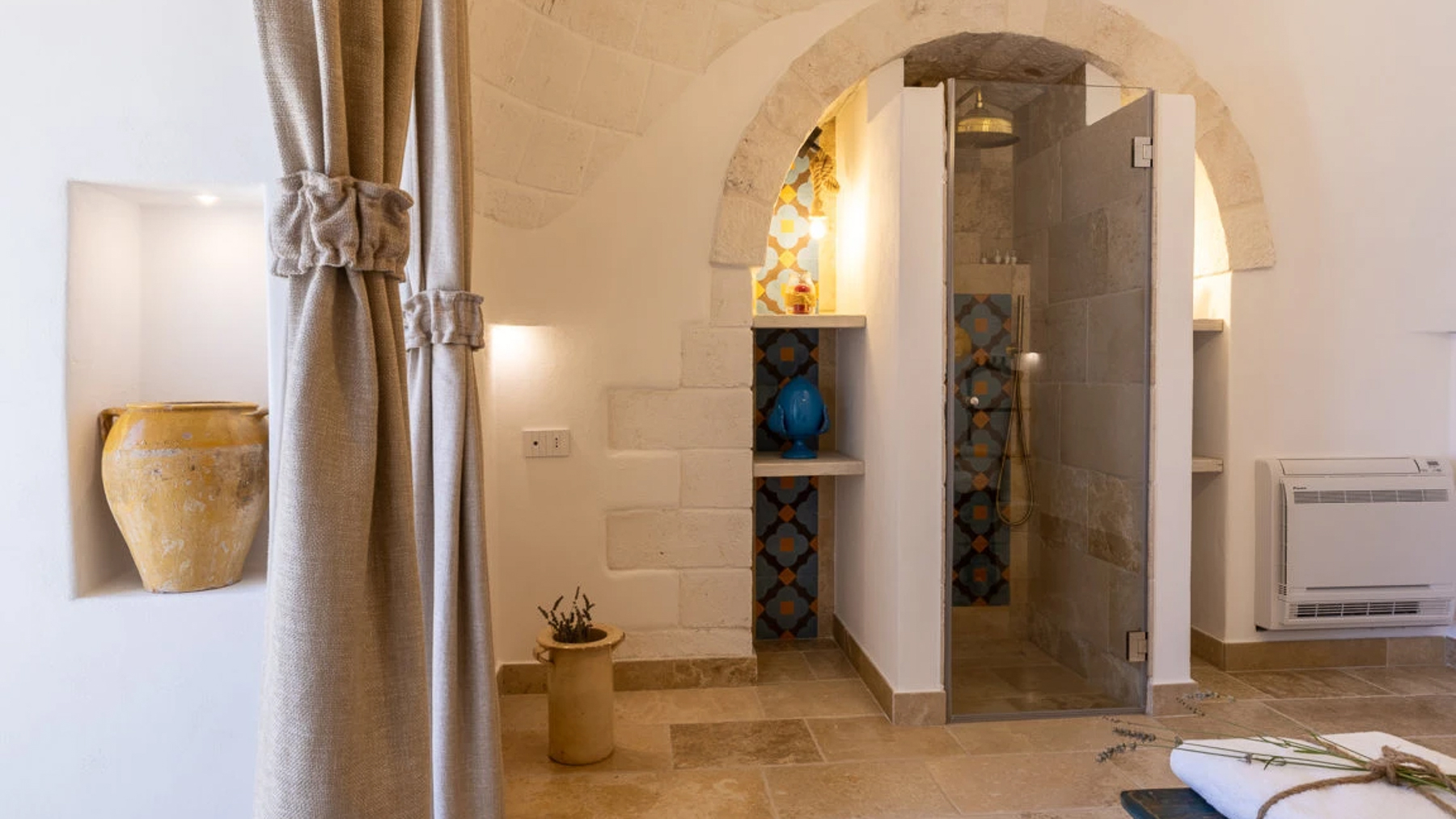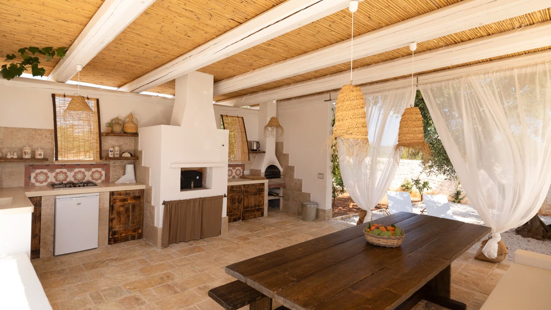 Nel cuore della suggestiva Valle d'Itria, tra le dolci colline pugliesi, si erge un trullo di charme che cattura l'essenza della tradizione locale. Qui, i colori vivi del paesaggio si fondono con i profumi della campagna e della brezza salmastra del vicino mare Adriatico, creando un'atmosfera di pace e serenità. Questa incantevole proprietà a Carovigno, Brindisi, si estende su una superficie di 100 mq, offrendo sei stanze che mescolano comfort e autenticità. All'interno, due camere da letto accoglienti e due bagni moderni si accompagnano a una cucina completamente attrezzata e a una zona living elegante. All'esterno, una piscina invita a rilassarsi sotto il sole, mentre il patio coperto, dotato di cucina esterna e camino, promette serate memorabili sotto il cielo stellato. Gli elementi in pietra e l'illuminazione raffinata creano un'atmosfera unica e accogliente. Immagina di svegliarti con il canto degli uccelli e di iniziare la giornata con una colazione all'aperto, circondato dalla natura. Trascorri le tue giornate tra il solarium e la piscina, esplorando poi i vicini borghi storici come Ostuni e Alberobello. Questo trullo offre un'esperienza di vita che fonde la tranquillità della campagna con il lusso moderno. Questa proprietà esclusiva rappresenta un rifugio di eleganza e modernità, una rara opportunità nel panorama immobiliare di lusso. Non lasciarti sfuggire l'occasione di possedere un angolo di paradiso nella meravigliosa Valle d'Itria.