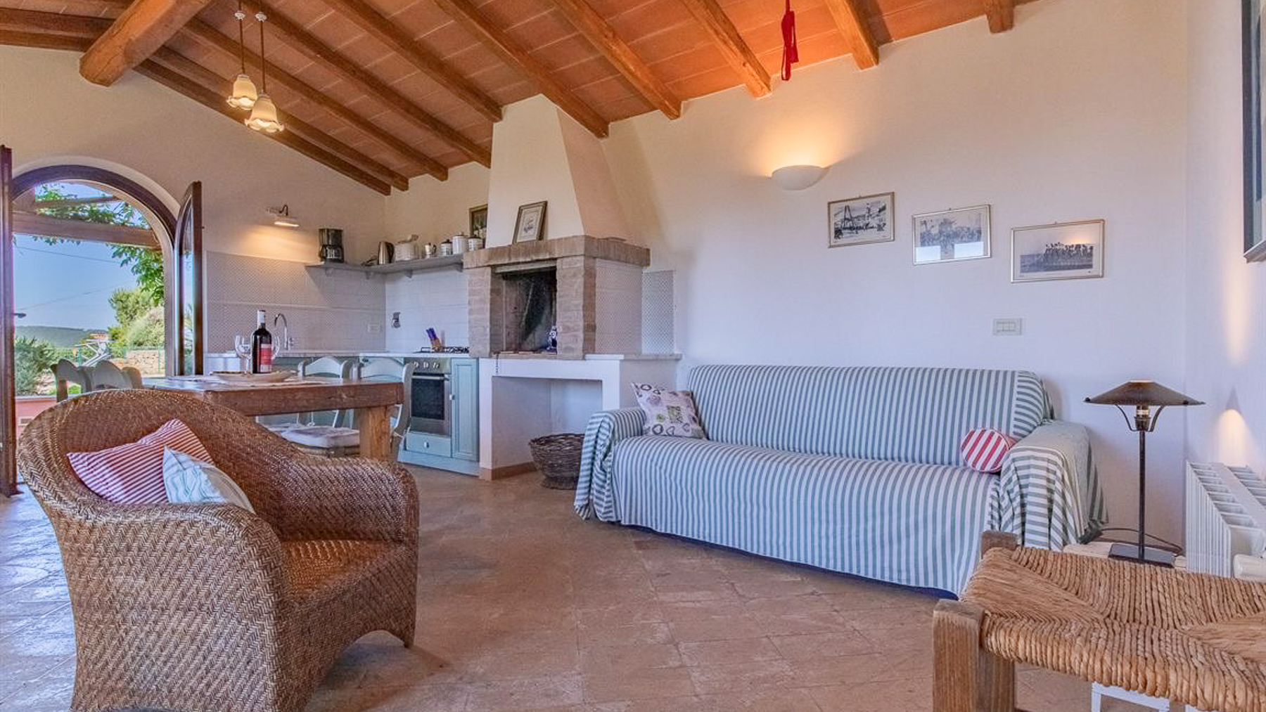 Immersa nella rigogliosa campagna toscana, questa splendida casa in pietra affacciata sul mare è un angolo di paradiso che invita a rilassarsi e godere dei piaceri della natura. Lasciati avvolgere dalla luce calda del sole che illumina i suoi caratteristici scuri viola, mentre il profumo dei fiori si mescola alla brezza marina, creando un'atmosfera di pura serenità. Con una superficie di 600 mq, la proprietà si estende su un terreno ricco di verde e dettagli curati. Offre cinque ampie stanze, perfette per accogliere la famiglia e gli ospiti, e un bagno elegante. Il giardino rigoglioso e la terrazza con vista sull'oceano offrono spazi ideali per momenti di relax e convivialità. Situata nella provincia di Livorno, questa dimora rappresenta un rifugio esclusivo, lontano dal caos cittadino, dove il tempo sembra scorrere più lentamente. Vivere qui significa assaporare ogni istante: immagina di passare pomeriggi assolati distesi sulle sdraio blu del patio in pietra, circondato dal verde dei cipressi e dal cielo limpido. O ancora, di cenare all'aperto con i tuoi cari, sotto l'ombrellone verde, mentre il sole tramonta all'orizzonte, tingendo il cielo di colori mozzafiato. Questa casa non è solo una proprietà, ma un'opportunità rara di entrare in contatto con la bellezza autentica della Toscana. Un vero gioiello nel panorama immobiliare di lusso, che promette un'esperienza di vita senza pari.