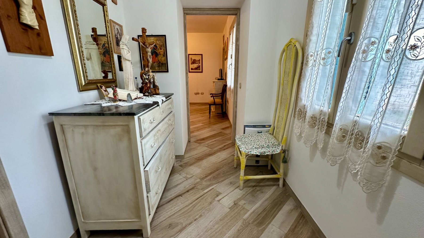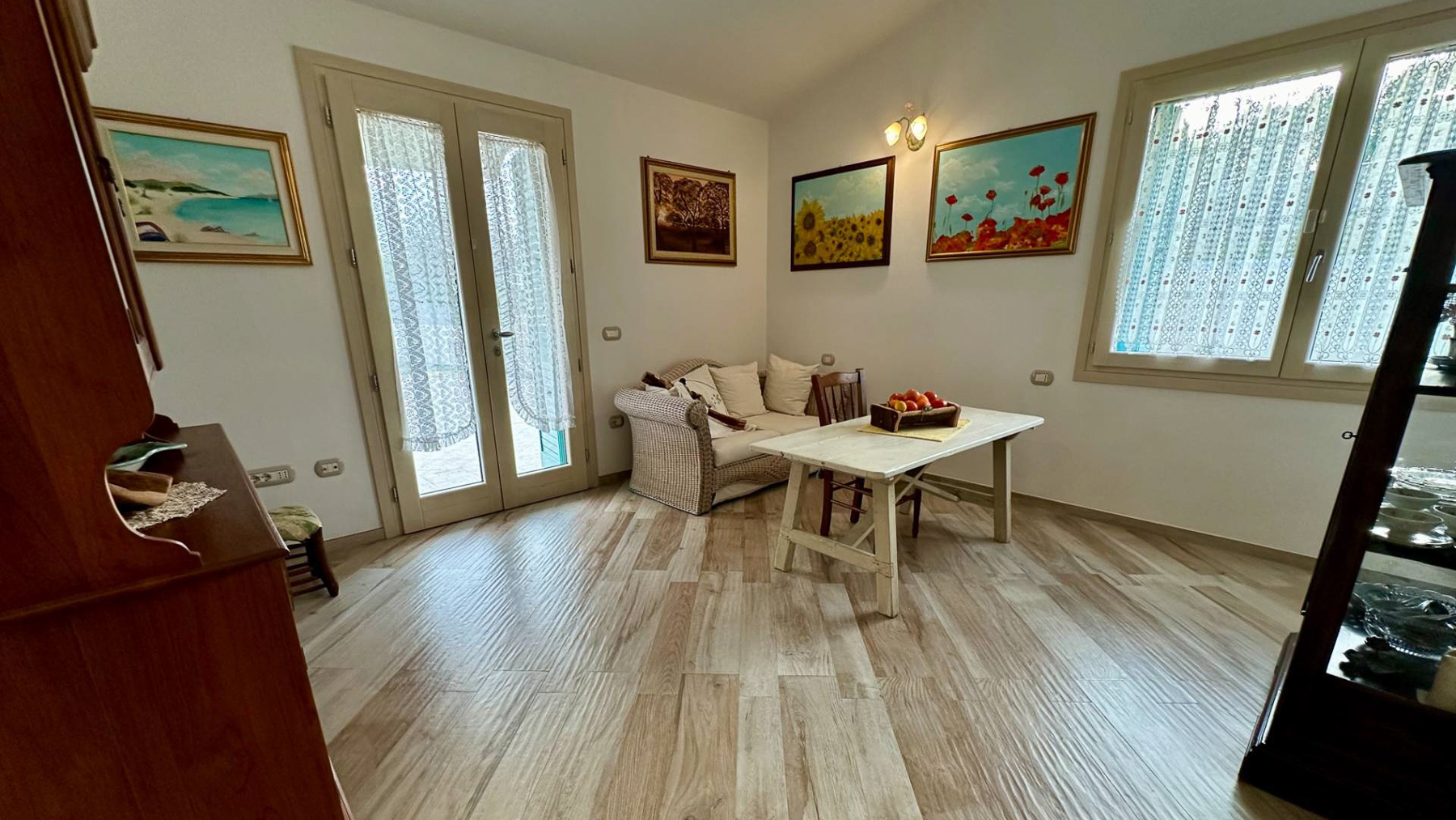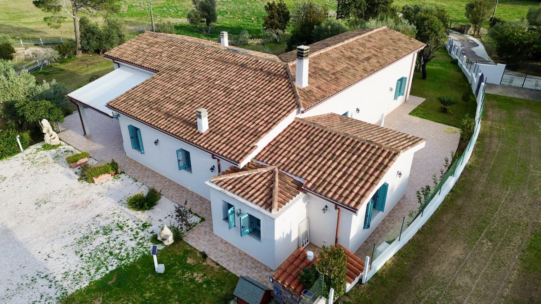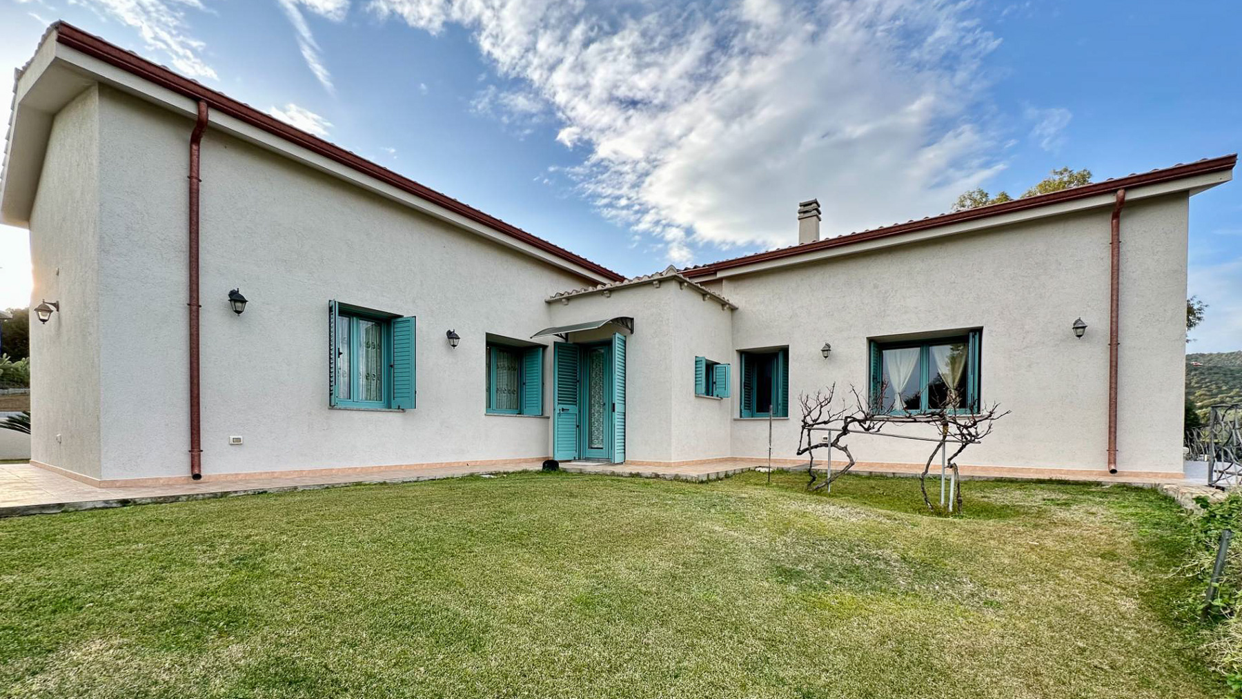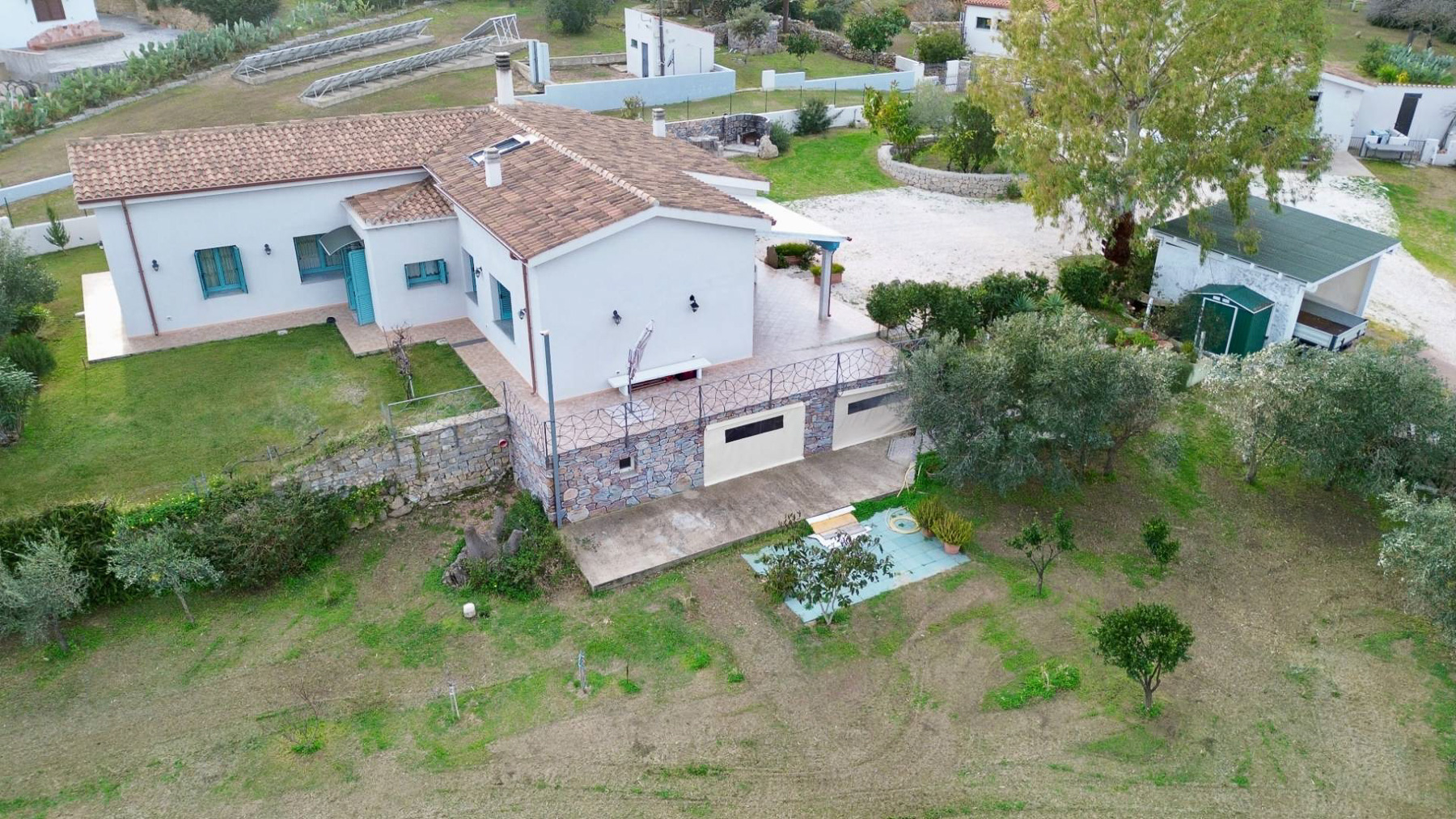 Immersa in un paesaggio incantato, questa splendida dimora si erge come un rifugio di pace e raffinatezza nella suggestiva campagna di Olbia, in provincia di Sassari. Immagina di essere accolto dalla luce dorata del sole che si riflette sulle tegole del tetto, mentre una leggera brezza profumata di lavanda accarezza il tuo viso. Con una superficie di 314 mq, questa residenza offre ampi spazi per tutta la famiglia, con sei stanze luminose e tre bagni eleganti. Le pareti bianche e le persiane blu si sposano perfettamente con il verde lussureggiante del giardino, dove la natura si fonde armoniosamente con elementi paesaggistici curati. Un terrazzo accogliente si apre su panorami mozzafiato, offrendo il luogo ideale per godersi la tranquillità circostante. Vivere qui significa abbracciare uno stile di vita sereno e autentico. Immagina di rilassarti nel soggiorno accogliente, con travi in legno a vista, mentre il calore del camino diffonde un'atmosfera intima e invitante. Sorseggia un bicchiere di vino sulla terrazza, ammirando il tramonto che tinge il cielo di colori caldi. Questa proprietà rappresenta il perfetto connubio tra eleganza e comfort, un'opportunità irripetibile per chi cerca un'esperienza di lusso immersa nella natura. Non lasciarti sfuggire l'occasione di possedere un angolo di paradiso in uno dei luoghi più affascinanti della Sardegna.