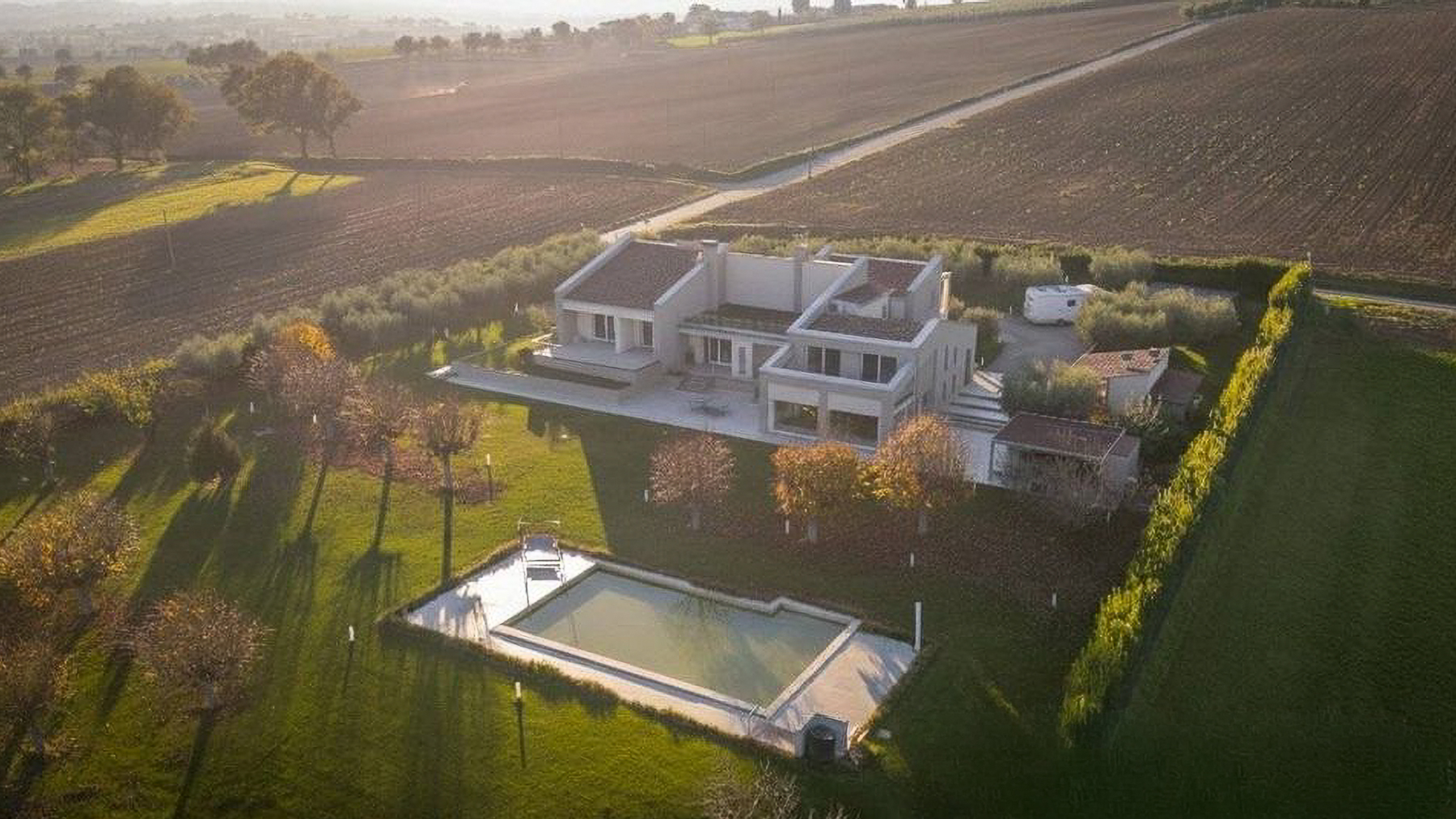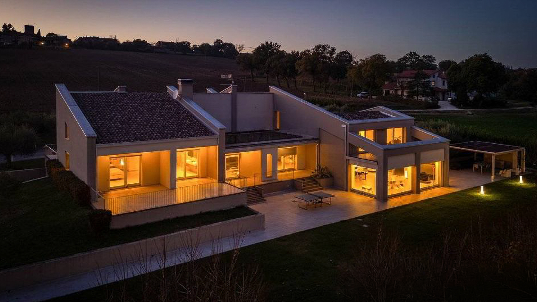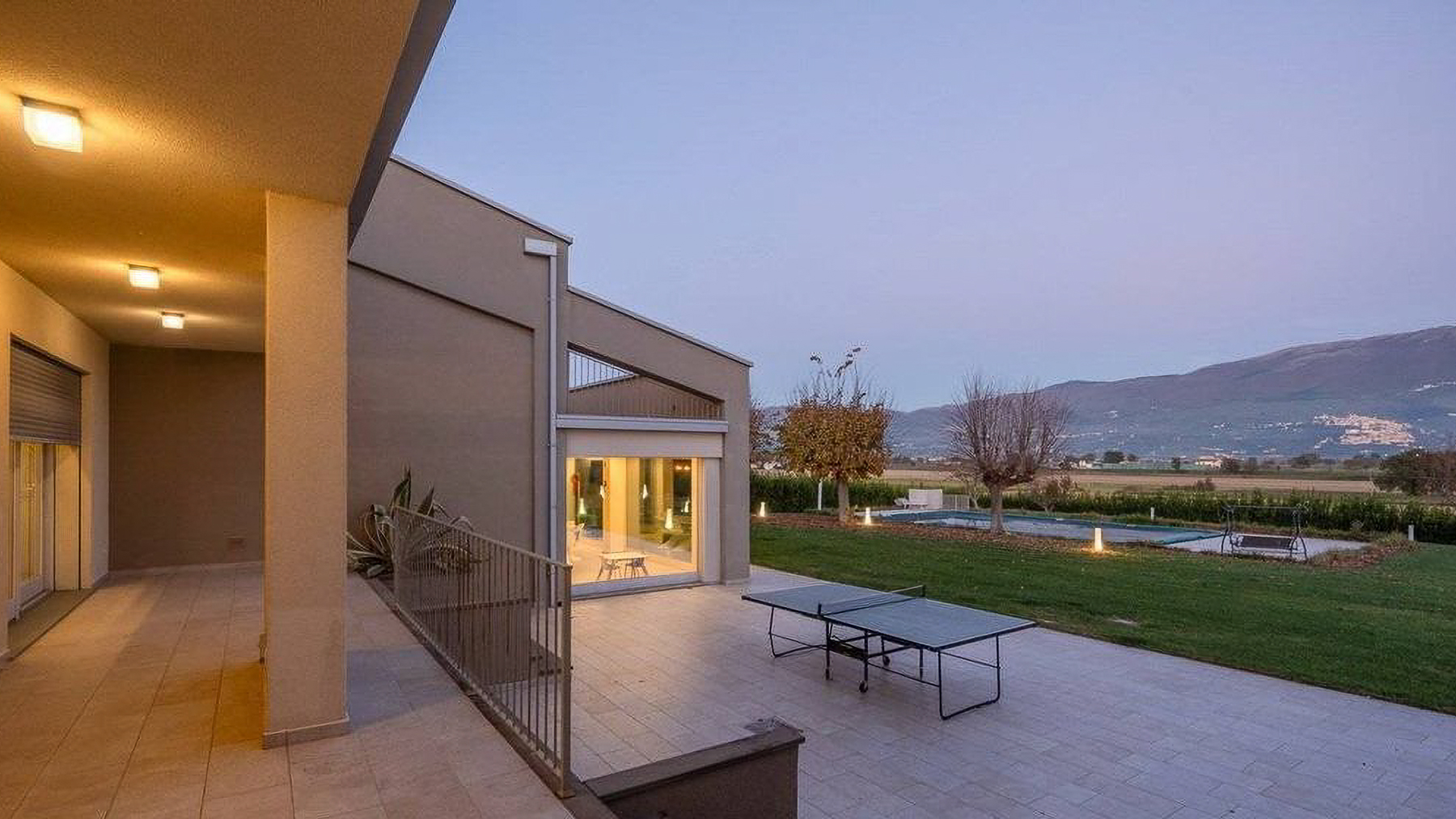 Immersa nel cuore delle colline umbre, tra i profumi delle vigne e il verde degli uliveti, questa villa contemporanea è un rifugio di lusso e tranquillità. Al calar della sera, la casa s'illumina di una luce calda e accogliente, mentre il panorama circostante si tinge dei colori del tramonto, creando un'atmosfera magica che invita a rilassarsi e sognare. Con una superficie complessiva di 622 mq, la villa si sviluppa su due livelli che ospitano 12 stanze, di cui 3 bagni, e spazi ampi e luminosi grazie alle grandi superfici vetrate. Situata tra Montefalco e Trevi, in provincia di Perugia, la proprietà abbraccia il paesaggio collinare con i suoi terrazzi e portici panoramici. Gli interni, caratterizzati da finiture di pregio e dettagli su misura, offrono un comfort abitativo d'eccellenza. Vivere in questa villa significa godere di un lifestyle esclusivo, dove ogni giorno si trasforma in un'esperienza unica. Immagina di svegliarti con la luce del sole che filtra dalle vetrate, gustare una colazione all'aperto con vista sulle colline, o trascorrere pomeriggi estivi a bordo piscina, circondato dalla natura. Ogni angolo della casa è pensato per celebrare la bellezza del paesaggio e la qualità della vita. Questa residenza rappresenta un'opportunità irripetibile nel panorama immobiliare di lusso, un perfetto equilibrio tra eleganza moderna e comfort senza compromessi. Un luogo dove vivere in armonia con la natura, senza rinunciare a nessun comfort.