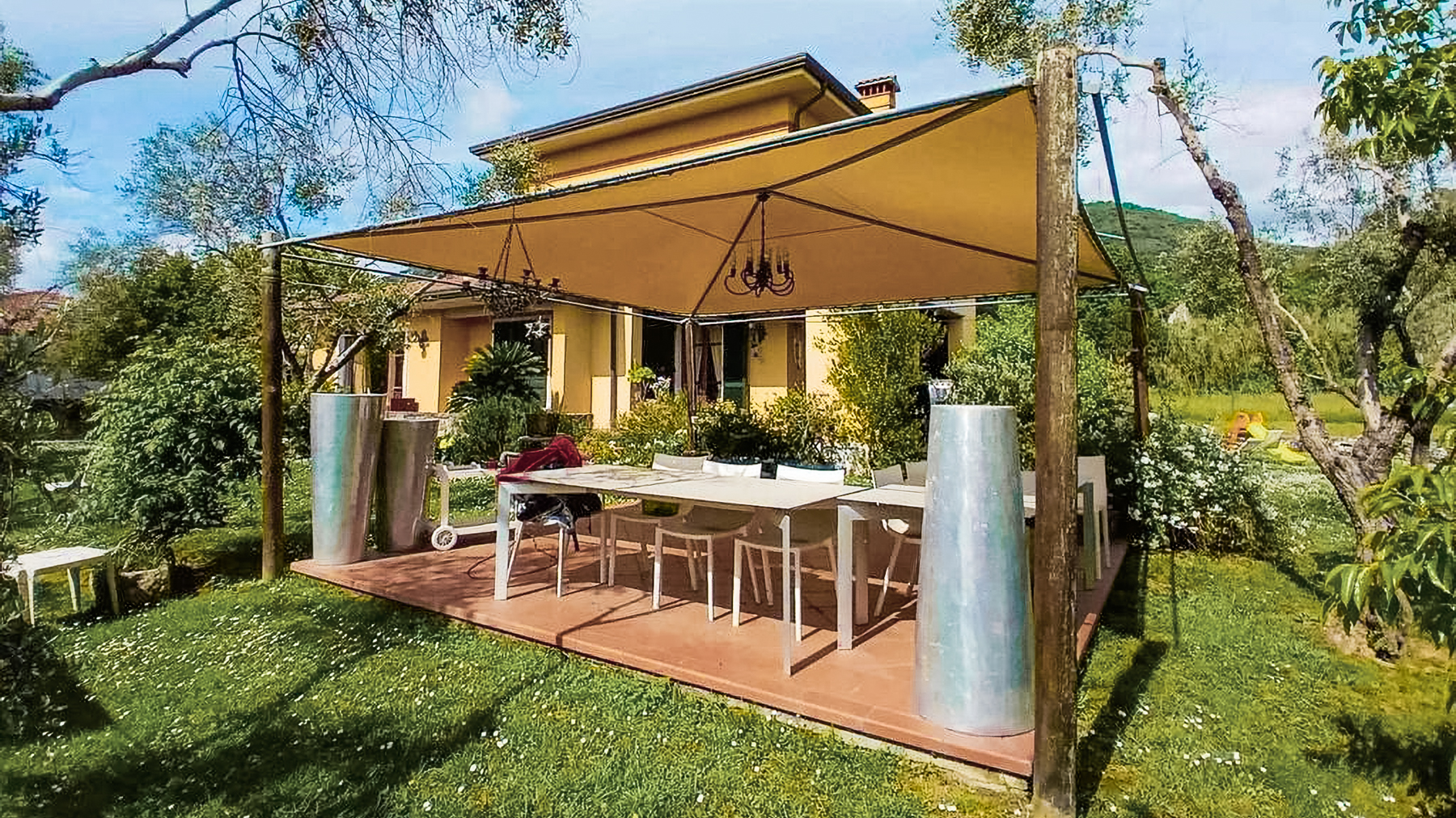 Lasciati avvolgere dalla magia di una villa incastonata tra le colline di Carrara, dove la luce del sole danza tra gli ulivi e il profumo del mare si mescola a quello del giardino fiorito. Un rifugio esclusivo, immerso nella quiete della campagna, che ti invita a vivere ogni giorno un'esperienza sensoriale unica, a pochi chilometri dalla costa. Questa straordinaria proprietà, estesa su 432 mq, si sviluppa su quattro livelli e offre ben 18 stanze, tra cui 4 eleganti bagni. La villa è circondata da un rigoglioso giardino piantumato e impreziosita da tre dependances, perfette per ospitare amici e familiari in totale privacy. Gli spazi interni, rifiniti con materiali di pregio come il marmo statuario e il parquet, sono pensati per garantire comfort e raffinatezza. Dalle terrazze, puoi godere di panorami incantevoli sulla natura circostante, mentre la resede esterna è ideale per accogliere fino a sei auto. Immagina di trascorrere le tue giornate tra passeggiate nel giardino, immerso nel profumo delle piante aromatiche, e serate sotto le stelle, cenando sulla terrazza accarezzati dalla brezza marina. La villa offre spazi versatili per il tempo libero, come l'area relax coperta e la legnaia, perfetta per organizzare grigliate in compagnia. Questa dimora rappresenta un'opportunità irripetibile, un'armoniosa fusione tra eleganza senza tempo e moderni comfort. Un luogo dove il lusso si intreccia con la serenità della campagna, rendendo ogni istante prezioso e indimenticabile.