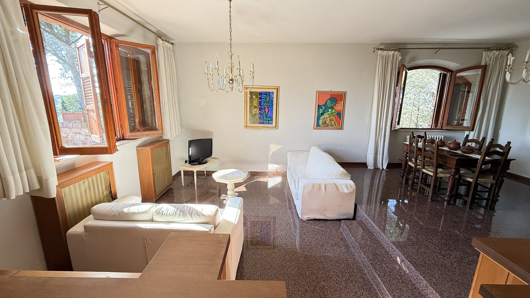 Incastonata tra le dolci colline umbre, questa splendida villa in pietra si erge come un simbolo di eleganza e tranquillità. Accarezzata dai raggi del sole, la proprietà offre una vista incantevole sulla campagna circostante e uno scorcio sul Lago Trasimeno. Il cinguettio degli uccelli e il profumo della natura creano un'atmosfera di pace e serenità, a solo un passo dai vivaci borghi storici. Con una superficie di 650 mq, la villa si articola su due livelli, offrendo spazi ampi e luminosi. Al piano terra, un accogliente soggiorno e una cucina abitabile si affacciano su un loggiato ombreggiato, perfetto per pranzi all'aperto. Il piano superiore, con la sua terrazza panoramica, regala una vista mozzafiato. Le sei camere, di cui quattro con bagno en suite, garantiscono comfort e privacy. Il giardino di 3.000 mq, con la sua piscina scintillante, invita a momenti di puro relax. Immagina di vivere in questo angolo di paradiso, tra giornate trascorse a bordo piscina e serate sotto un cielo stellato, sorseggiando un calice di vino locale. Ogni angolo della villa racconta storie di lusso e raffinatezza, mentre il contesto rurale promette una vita di pace e bellezza. Questa residenza esclusiva è un'opportunità irripetibile per chi cerca un rifugio di charme, dove il tempo sembra fermarsi e la bellezza della natura abbraccia l'eleganza architettonica. Un gioiello nel cuore dell'Umbria, pronto a diventare il tuo prossimo capitolo di vita.