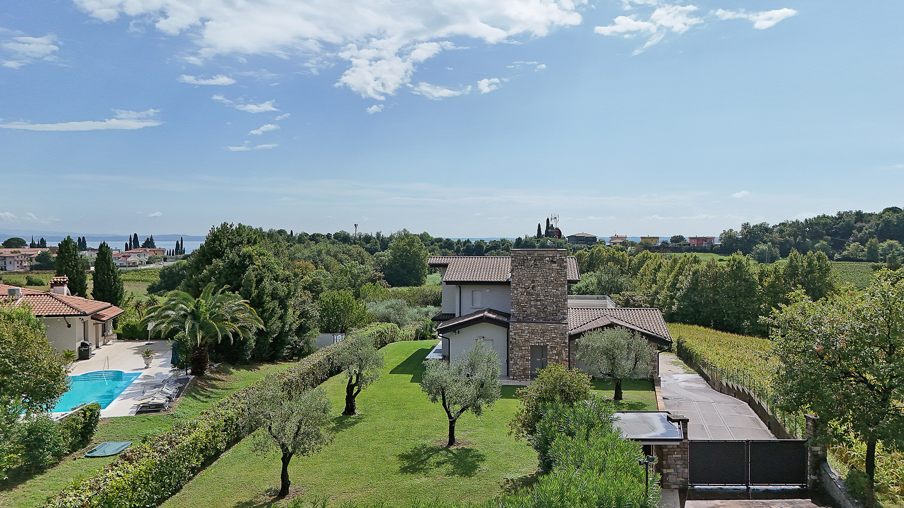 Immersa nel cuore di Moniga del Garda, questa villa di lusso è un rifugio esclusivo che si affaccia sulle acque scintillanti del Lago di Garda. Circondata da uliveti e vigneti, la residenza cattura la luce del sole e il profumo della natura, offrendo un'esperienza sensoriale unica. Immagina di svegliarti con il canto degli uccelli e il leggero fruscio delle foglie mosse dalla brezza mattutina. Con una generosa superficie di 327 mq, questa villa singola si sviluppa su tre livelli e accoglie i suoi ospiti in una luminosa zona giorno con cucina open space e ampie vetrate che si affacciano su un giardino privato di circa 3000 mq. La proprietà dispone di 10 stanze, tra cui 4 eleganti camere da letto e 5 bagni raffinati, garantendo ampi spazi e comfort. Un ampio box di 63 mq, una magnifica terrazza di 198 mq e una piscina privata completano il quadro, offrendo luoghi ideali per il relax e il divertimento. Vivere in questa villa significa immergersi in un lifestyle esclusivo, dove ogni giorno offre l'opportunità di godere di serate estive a bordo piscina o cene al chiaro di luna sulla terrazza. La vista panoramica sul lago, unita al fascino del borgo storico di Moniga, crea un'atmosfera di serenità e lusso senza pari. Questa residenza rappresenta l'apice del prestigio e dell'eleganza, un gioiello raro nel panorama immobiliare di lusso del Lago di Garda, che promette un'esperienza di vita ineguagliabile.