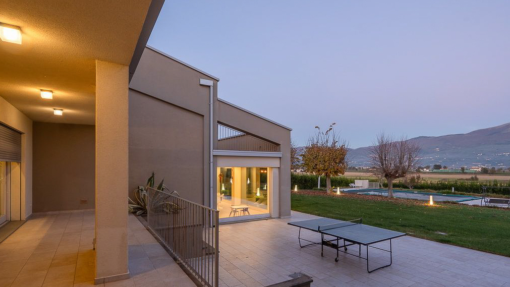 Avvolta tra le dolci colline umbre, questa villa contemporanea si erge come un gioiello di modernità e raffinatezza. Al calar del sole, i suoi ampi finestroni si illuminano, riflettendo una calda luce che si fonde con i colori del crepuscolo. Qui, i profumi della natura si mescolano con il silenzio della campagna, creando un'atmosfera di pace e serenità. Con una superficie di 476 mq, la villa offre spazi generosi e ben distribuiti. Le grandi zone giorno open space sono ideali per accogliere e stupire gli ospiti, mentre le tre camere da letto con bagni en-suite garantiscono comfort e privacy. Un'ulteriore camera/studio e numerosi vani accessori al primo piano completano la versatilità della casa. All'esterno, un terreno privato di 5.950 mq abbraccia la proprietà, arricchito da una splendida piscina, ampi portici e terrazzi panoramici. Situata tra Montefalco e Trevi, in provincia di Perugia, la villa gode di un contesto unico, immerso nei vigneti e nella bellezza naturale. Immagina di vivere in questo angolo di paradiso, dove ogni giorno inizia con una colazione in terrazza, ammirando le colline che si estendono all'orizzonte. Nei pomeriggi estivi, la piscina diventa il luogo perfetto per rilassarsi, mentre la sera invita a cene sotto le stelle, circondati dalla quiete della campagna. Questa proprietà esclusiva rappresenta la sintesi perfetta tra eleganza moderna e comfort senza pari, un'opportunità irripetibile nel panorama immobiliare di lusso. Scopri il piacere di chiamare casa questo rifugio incantevole.