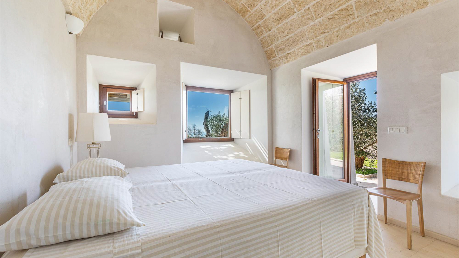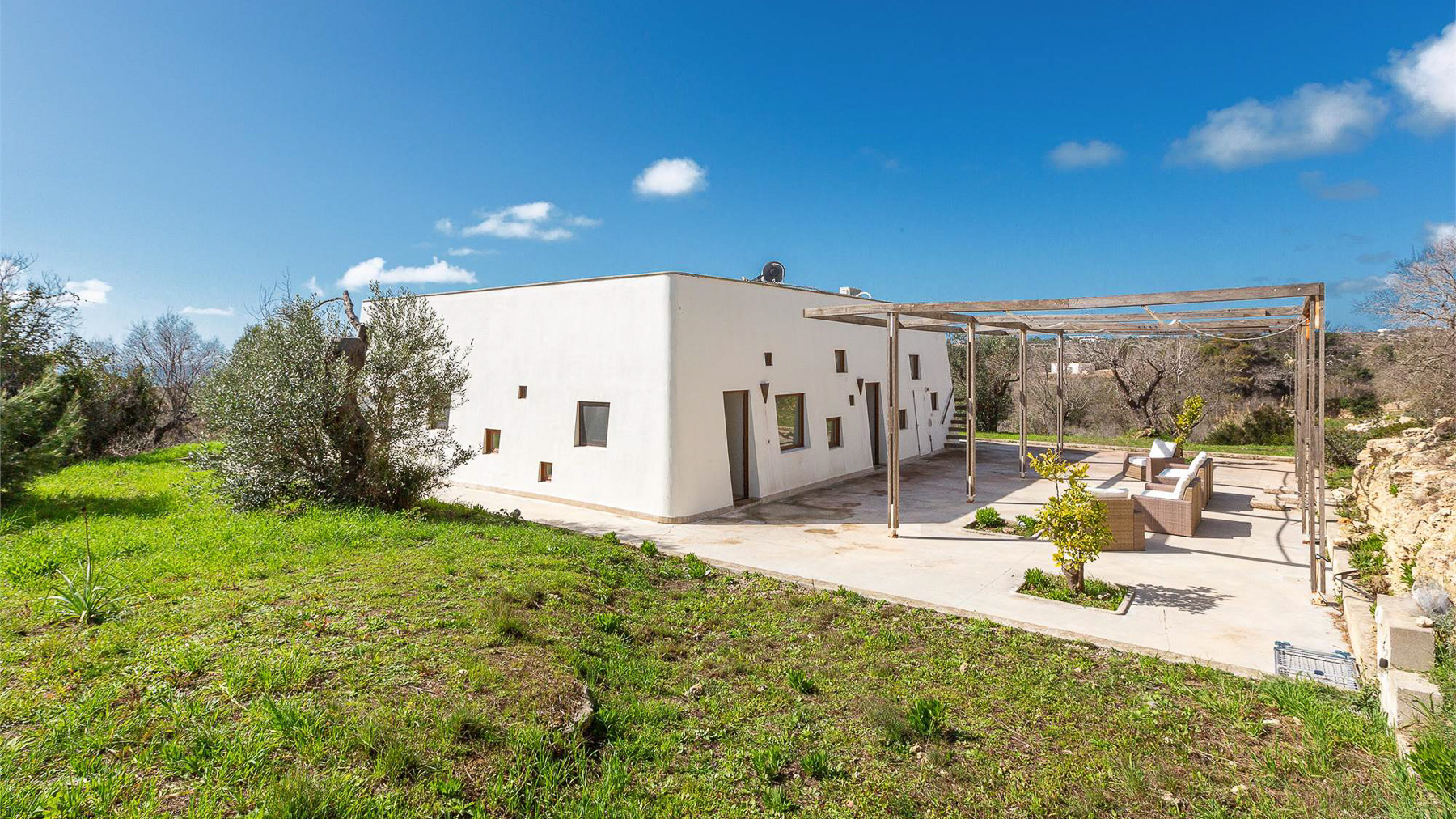 Adagiata tra le dolci colline del Salento, questa villa salentina incanta con la sua vista mozzafiato sul mare cristallino. Un'oasi di serenità, dove il profumo della macchia mediterranea si fonde con la brezza marina, creando un'atmosfera di pura magia. La villa si estende su un unico livello di 120 mq, armoniosamente distribuiti tra un accogliente soggiorno con cucina, un corridoio con divano e tre eleganti camere da letto, ognuna con bagno privato. Le volte a botte e i muri in tufo a vista esaltano il fascino tipico delle dimore salentine, mentre i due ampi pergolati esterni, per un totale di oltre 100 mq, offrono spazi ideali per rilassarsi all'ombra, ammirando la vista panoramica su Pescoluse. Il giardino, ricco di ulivi secolari, invita a creare un'area solarium con piscina, per un'esperienza di totale immersione nella natura. Vivere in questa villa significa abbracciare uno stile di vita unico, dove ogni giornata può iniziare con una colazione sul pergolato, accompagnata dal canto degli uccelli e dal rumore delle onde in lontananza. Le serate estive si trasformano in momenti indimenticabili sotto il cielo stellato, con cene all'aperto e il profumo dei fiori mediterranei nell'aria. Questa proprietà rappresenta un raro gioiello nel mercato immobiliare di lusso, coniugando il fascino senza tempo della tradizione salentina con il comfort moderno. Un'opportunità imperdibile per chi cerca una dimora esclusiva e ricca di charme.