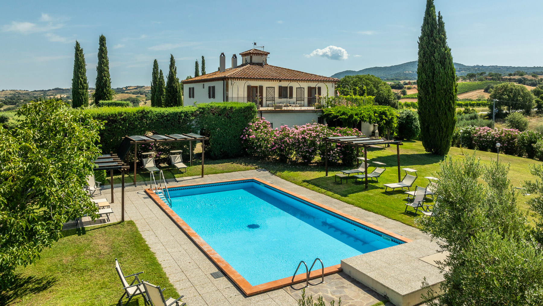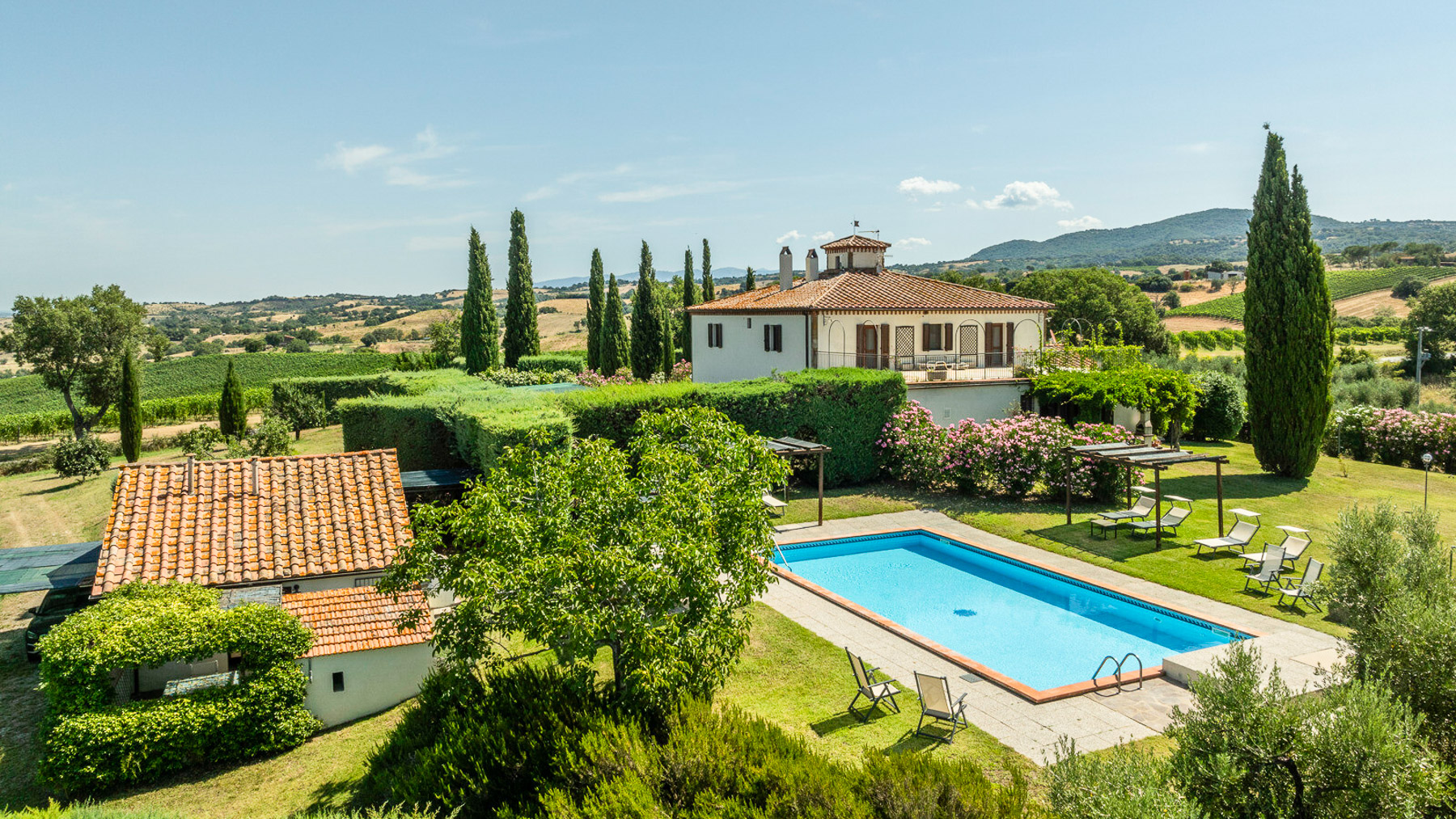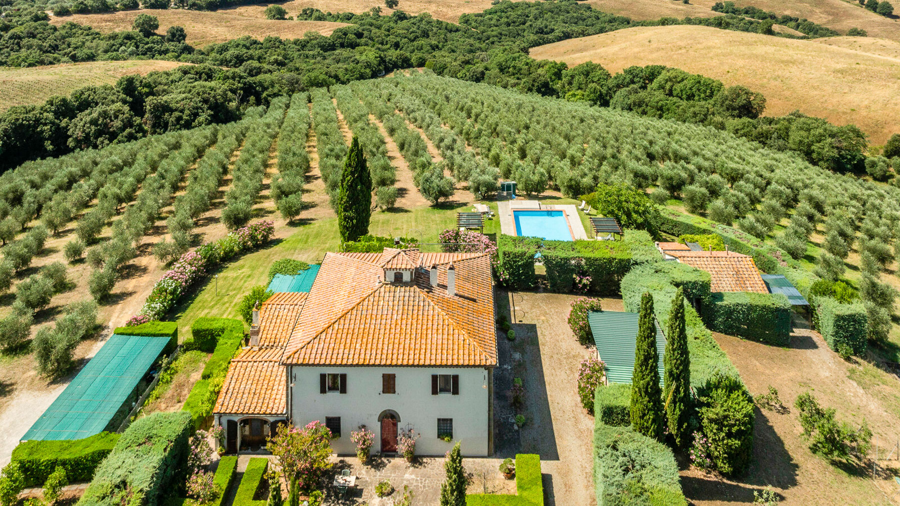 Immersa tra le colline pittoresche della Maremma, questa villa d’epoca di fine ‘800 è un rifugio di pace e bellezza. Circondata da cipressi maestosi e un giardino curato, la proprietà si svela attraverso un elegante cancello, conducendo a un mondo in cui il tempo sembra essersi fermato. La luce del sole gioca tra le fronde degli alberi, mentre il profumo dei fiori si mescola alla brezza leggera che accarezza il paesaggio toscano. La villa principale si estende su 500 mq, offrendo ampi saloni con travi a vista e una cucina spaziosa, perfettamente arredata in stile toscano. La zona notte, raggiungibile tramite una suggestiva scala in pietra, ospita quattro camere con bagni en suite. Un terrazzo panoramico di 60 mq offre una vista mozzafiato sulle colline ondulate, ideale per cene all'aperto o momenti di relax. Completano la proprietà due dépendance indipendenti, attualmente adibite ad agriturismo, e una piscina di 6 x 12 metri, perfetta per rinfrescarsi nelle calde giornate estive. Vivere in questa villa significa abbracciare uno stile di vita all'insegna della tranquillità e della raffinatezza. Immagina di passeggiare tra gli uliveti che producono un olio extra vergine d’oliva di qualità superiore, o di organizzare cene estive sotto le stelle, cullati dai suoni della campagna toscana. Questa villa rappresenta il perfetto equilibrio tra eleganza senza tempo e comfort moderno, un'opportunità irripetibile nel panorama immobiliare di lusso, incastonata nel cuore della Toscana.
