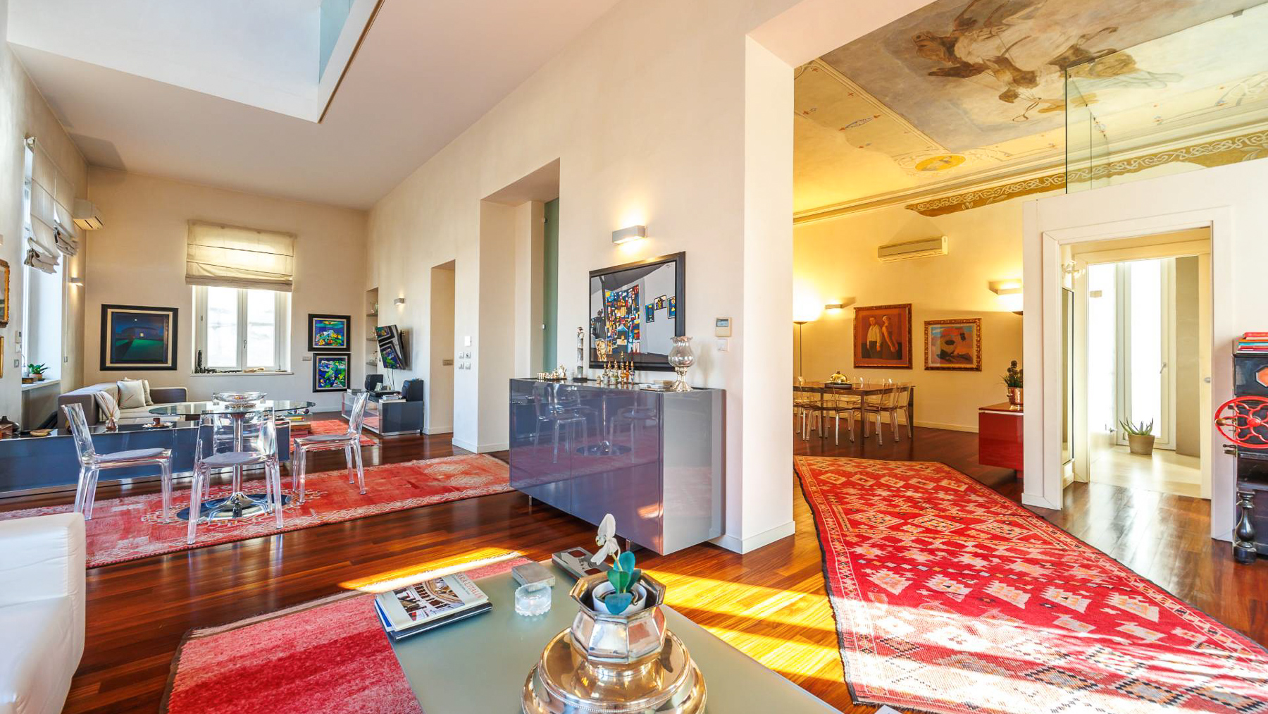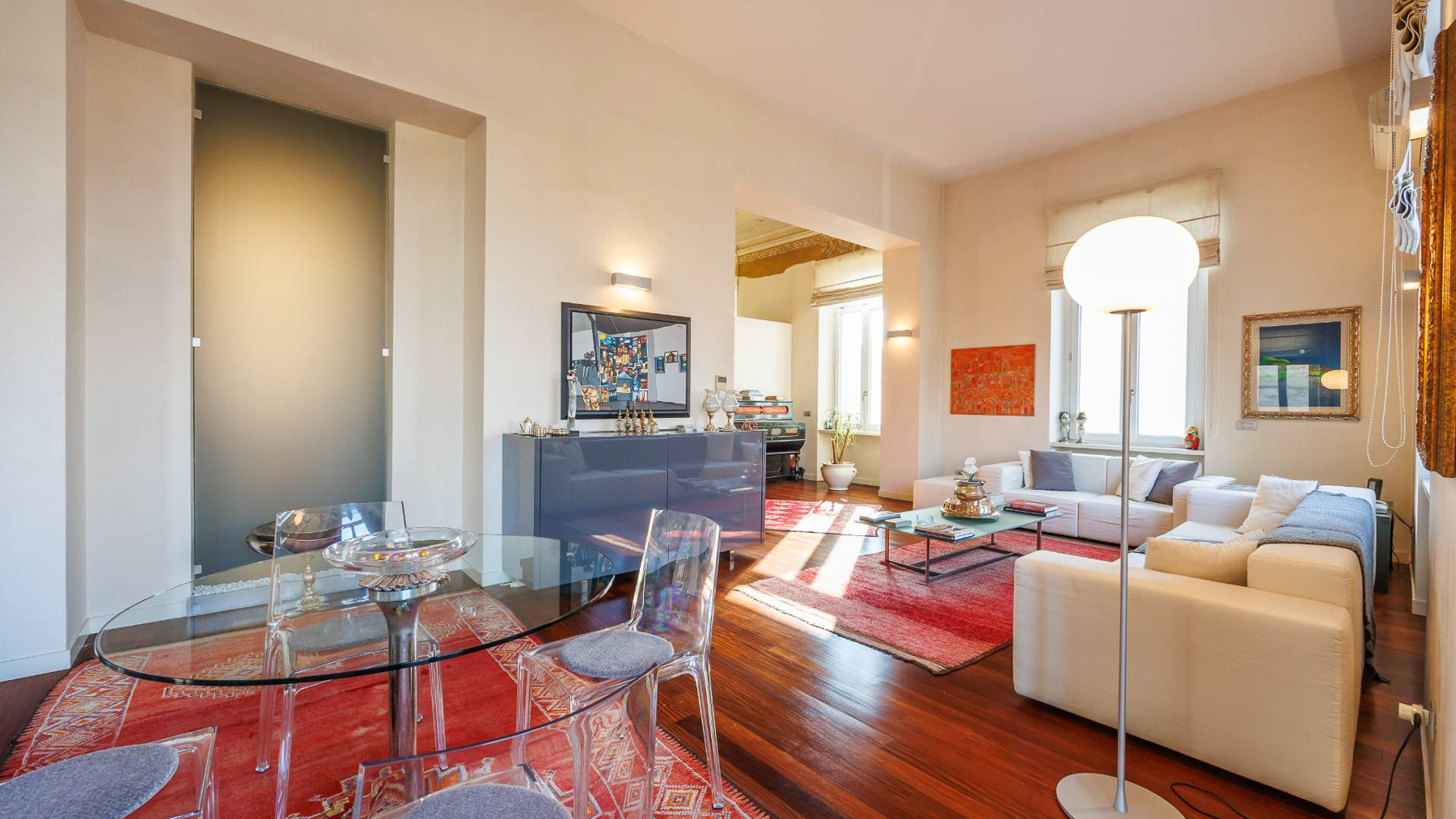 Nel cuore pulsante di Chivasso, dove la storia incontra la modernità, si trova un appartamento unico nel suo genere. Immagina di essere accolto dalla calda luce del mattino che attraversa le grandi finestre, mentre gli affreschi d'epoca e i capitelli originali raccontano storie di un tempo passato. L'atmosfera è arricchita dal profumo del caffè appena fatto e dal suono delle campane del vicino centro storico. Questa residenza di 350 mq, sapientemente ristrutturata, si sviluppa su due piani collegati da un elegante ascensore privato. Con 6 stanze e 3 bagni, l'appartamento offre spazi generosi e raffinati. La zona giorno si apre su un ampio terrazzo di oltre 40 mq, perfetto per godersi momenti di relax all'aperto. Al piano superiore, la zona notte comprende due master bedroom con cabine armadio e bagni en suite, oltre a un accogliente soggiorno soppalcato con velux che inondano di luce naturale. Vivere qui significa immergersi in un lifestyle cittadino raffinato e dinamico. Immagina serate d'inverno trascorse davanti al camino, o cene eleganti nella splendida zona pranzo. Durante i mesi estivi, il terrazzo diventa il luogo ideale per aperitivi al tramonto, ammirando il panorama urbano che si estende all'orizzonte. Questa proprietà straordinaria rappresenta un'opportunità irripetibile per chi cerca un equilibrio perfetto tra eleganza classica e comfort moderno. Un gioiello incastonato nel centro di Chivasso, pronto a diventare la dimora dei tuoi sogni.