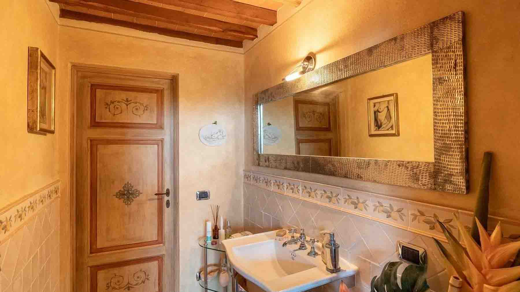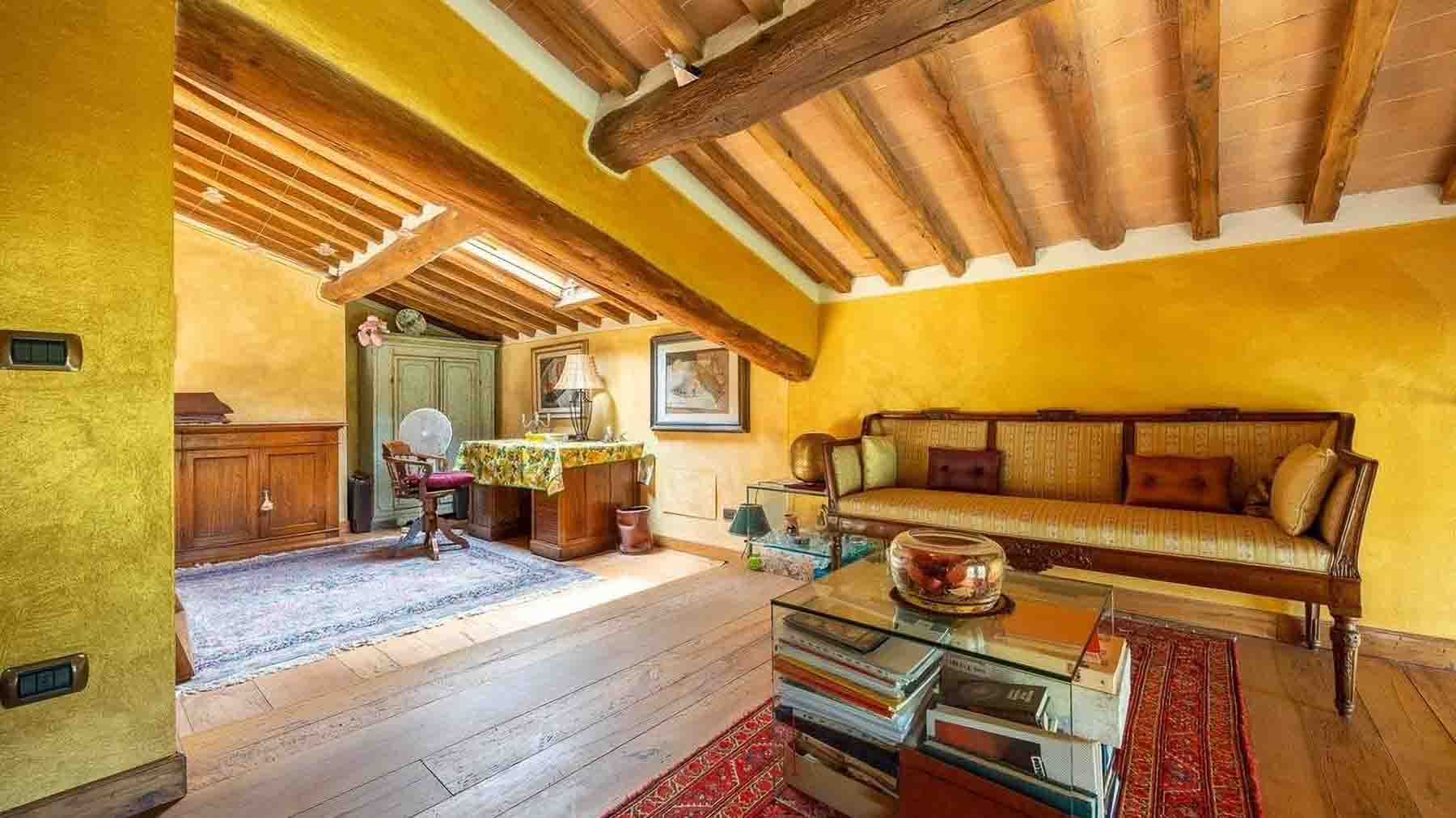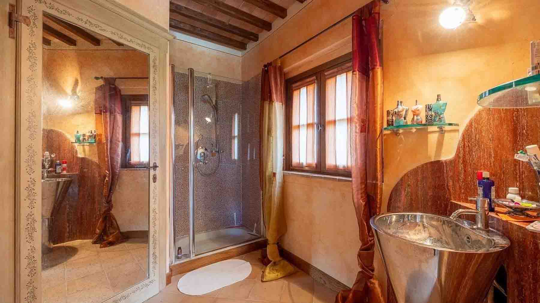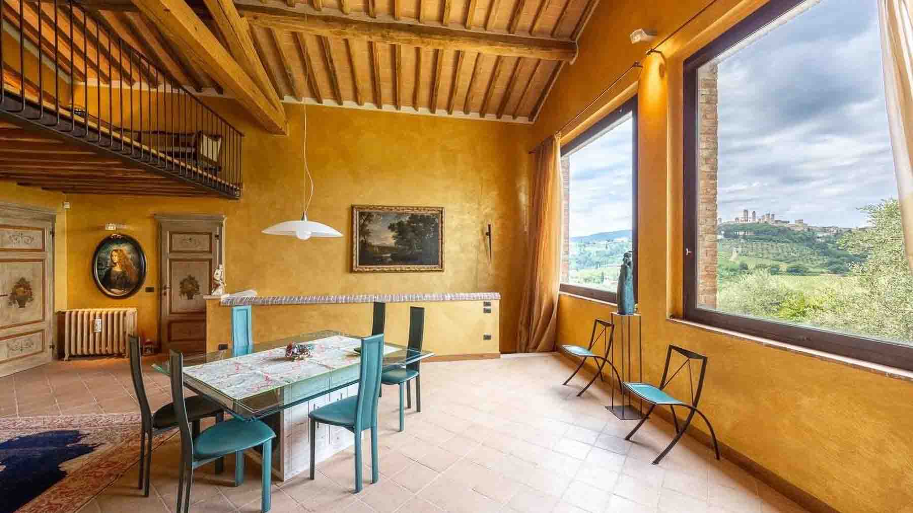 Incastonata nel cuore della pittoresca San Gimignano, questa residenza di lusso è un invito a scoprire un mondo di eleganza e serenità. Immagina di essere accolto in un soggiorno avvolto da tonalità calde, illuminato dalla luce naturale che filtra attraverso ampie finestre, mentre il crepitio del camino in pietra e il profumo del legno delle travi a vista ti trasportano in un'atmosfera di intimità e tranquillità. Con una generosa superficie di 340 mq, questa dimora offre sei sontuose stanze e cinque eleganti bagni, progettati per garantire il massimo comfort. Il soggiorno, con il suo soffitto alto e le travi in legno, si apre su un'area pranzo con un tavolo in vetro che invita a cene conviviali. Le ampie vetrate offrono una vista incantevole sul paesaggio toscano, mentre il giardino privato rappresenta un'oasi di pace in cui rilassarsi e godere della bellezza della campagna senese. Vivere qui significa abbracciare uno stile di vita ineguagliabile, dove ogni giorno è un'opportunità per creare ricordi indimenticabili. Che si tratti di serate intime accanto al camino o di pranzi soleggiati nel giardino, ogni esperienza è arricchita dall'incantevole bellezza naturale che circonda questa proprietà. Questa residenza non è solo una casa, ma un rifugio esclusivo che fonde l'eleganza senza tempo con il comfort contemporaneo. Un'opportunità unica nel panorama immobiliare di lusso, pronta a trasformare i sogni in realtà.