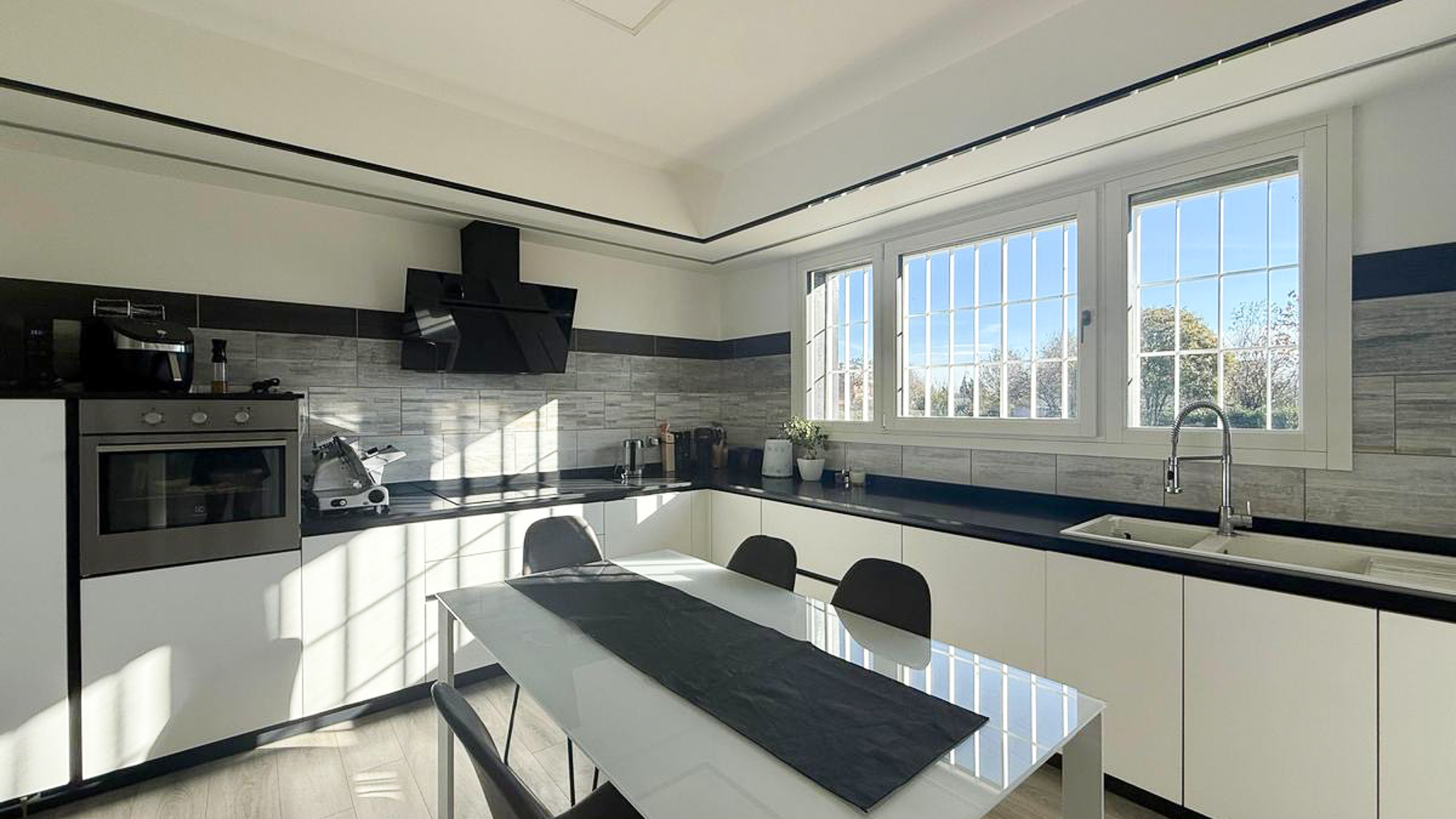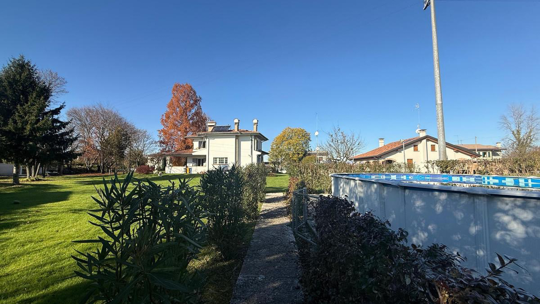 Incastonata nel pittoresco paesaggio di Breda di Piave, questa villa di lusso è un rifugio di pace e tranquillità. Qui, il fruscio delle foglie autunnali e il canto degli uccelli al mattino creano un'atmosfera idilliaca, mentre la luce del sole danza tra le ombre degli alberi nel giardino di 4000 mq. Un'oasi esclusiva dove ogni dettaglio è stato curato per offrire un'esperienza abitativa senza pari. Con i suoi 264 mq, la villa accoglie quattro ampie stanze e tre bagni raffinati, distribuiti su più livelli. Al piano terra, uno spazioso soggiorno e una cucina separata si aprono verso l'esterno, ideale per momenti di relax e convivialità. Al primo piano, le camere da letto matrimoniali, di cui due con accesso a un terrazzo abitabile, offrono un ritiro sereno. La taverna con camino nel piano interrato promette serate accoglienti, mentre il garage di 27 mq aggiunge praticità. Il giardino ben curato invita a vivere la bellezza della natura in ogni stagione. Vivere in questa villa significa abbracciare un lifestyle raffinato, immerso nel verde. Immagina di organizzare feste estive nel lussureggiante giardino, o di rilassarti nella piscina privata, circondato dalla natura. Le serate invernali si trasformano in momenti magici grazie al caminetto a pellet nel soggiorno, mentre la taverna invita a momenti di calore e condivisione. Questa proprietà unica rappresenta il connubio perfetto tra lusso e sostenibilità, grazie all'impianto fotovoltaico e alle recenti ristrutturazioni. Un gioiello nel panorama immobiliare, dove la bellezza senza tempo si sposa con tecnologie all'avanguardia, offrendo un'opportunità irripetibile per chi cerca eccellenza e comfort.