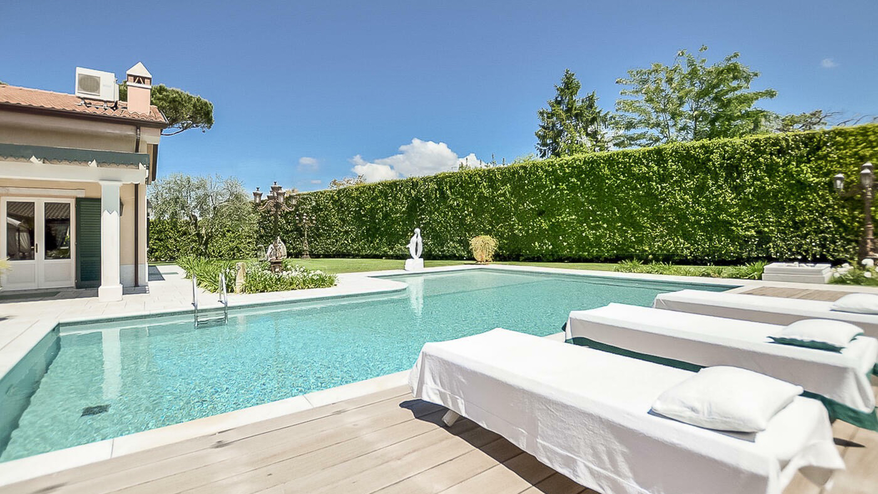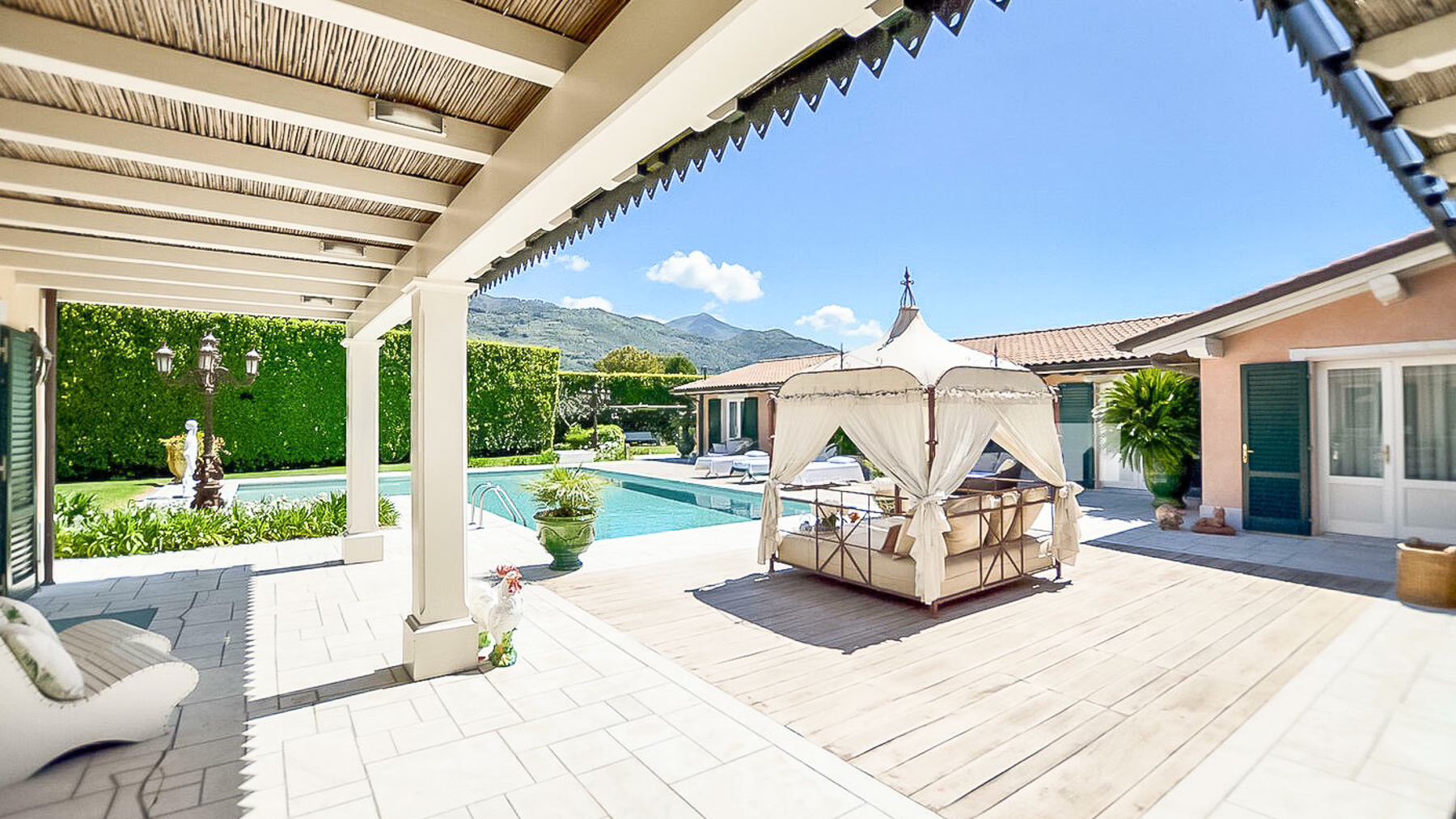 Nascosta tra le incantevoli colline della Versilia, questa villa di lusso è un rifugio di pace e bellezza senza pari. L'atmosfera quieta è arricchita dal canto degli uccelli e dal profumo della natura, mentre la brezza marina accarezza dolcemente la pelle. A pochi chilometri dalle celebri spiagge di Forte dei Marmi e dal centro storico di Pietrasanta, la vista mozzafiato sulle Alpi Apuane completa questo quadro idilliaco. Questa straordinaria proprietà si estende su 800 mq, offrendo un capolavoro di eleganza e raffinatezza. Con 16 stanze totali e 8 bagni, ogni angolo è progettato per il massimo comfort e lusso. La struttura principale si sviluppa su tre livelli, comprendendo un ampio salone luminoso, una cucina abitabile e camere da letto con bagni en suite. Una splendida piscina si trova tra la villa e la dependance, che accoglie gli ospiti con quattro camere matrimoniali, ciascuna con bagno privato. Il giardino di 1900 mq, curato con attenzione, ospita una pergola per pranzi e cene all'aperto, una sauna esterna e un roseto, offrendo un contesto ideale per il relax e la convivialità. Vivere in questa villa significa immergersi in un'esperienza sensoriale unica. Immagina di trascorrere le serate estive nel giardino, avvolto dal profumo dei fiori e dalla brezza marina, oppure di rilassarti a bordo piscina, circondato dal verde lussureggiante e dalla serenità. Ogni dettaglio della proprietà è pensato per offrire un'esperienza di vita senza eguali, dove il lusso incontra la semplicità della natura toscana. Questa proprietà rappresenta un'opportunità irripetibile nel panorama del lusso immobiliare. Un perfetto equilibrio tra eleganza senza tempo e comfort moderno, questo rifugio esclusivo promette di trasformare ogni giorno in un'esperienza indimenticabile.