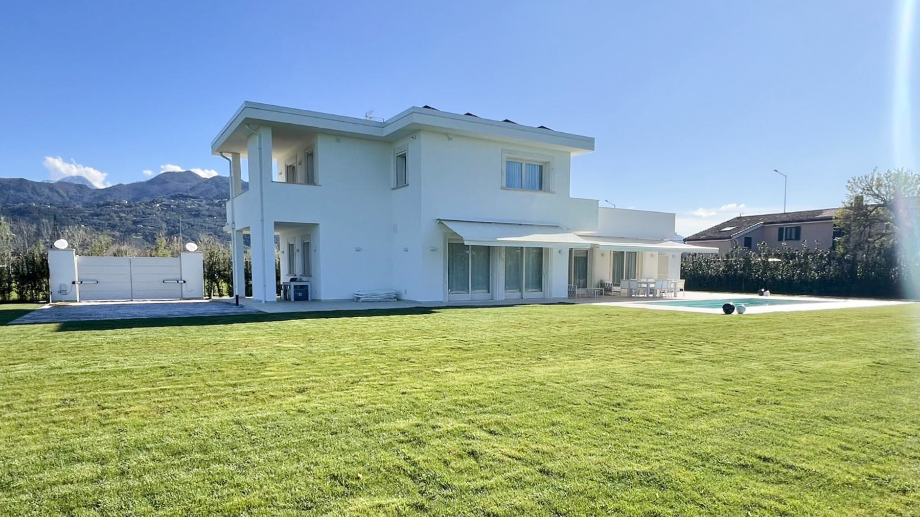 Immersa nel cuore verdeggiante della Toscana, questa villa a Pietrasanta è un rifugio di lusso dove il tempo sembra sospeso. Immagina di essere accolto dal dolce suono delle onde e dal profumo dei pini marittimi, mentre i raggi del sole filtrano attraverso le ampie vetrate, creando giochi di luce che accarezzano gli interni raffinati. Con una superficie di 190 mq distribuiti su due livelli, questa residenza offre sei stanze e quattro bagni, garantendo spazio e comfort in ogni angolo. Al piano terra, un ampio salone si apre su una cucina abitabile, ideale per momenti di convivialità. Le due camere matrimoniali, una delle quali con bagno privato, offrono un rifugio di tranquillità. Al piano superiore, due ulteriori camere con bagno en-suite e una cabina armadio assicurano un'atmosfera di intimità e lusso. All'esterno, un giardino rigoglioso di 5000 mq con piscina invita a rilassarsi e godere della natura circostante. Completano la proprietà un terrazzo semi perimetrale e un lastrico solare di 40 mq, perfetti per ammirare il paesaggio toscano. Vivere in questa villa significa abbracciare uno stile di vita raffinato, con la possibilità di organizzare cene estive sulla terrazza o trascorrere pomeriggi pigri a bordo piscina. Immagina serate trascorse sotto un cielo stellato, con la brezza marina che accarezza la pelle e il profumo dei fiori che riempie l'aria. Questa villa rappresenta il perfetto equilibrio tra eleganza senza tempo e comfort moderno, un'opportunità unica per chi desidera possedere un angolo di paradiso nel cuore della Toscana. Non lasciarti sfuggire questa occasione irripetibile nel panorama immobiliare di lusso.