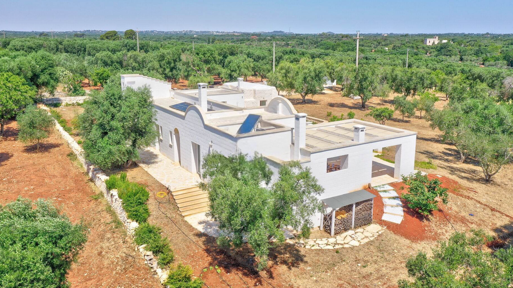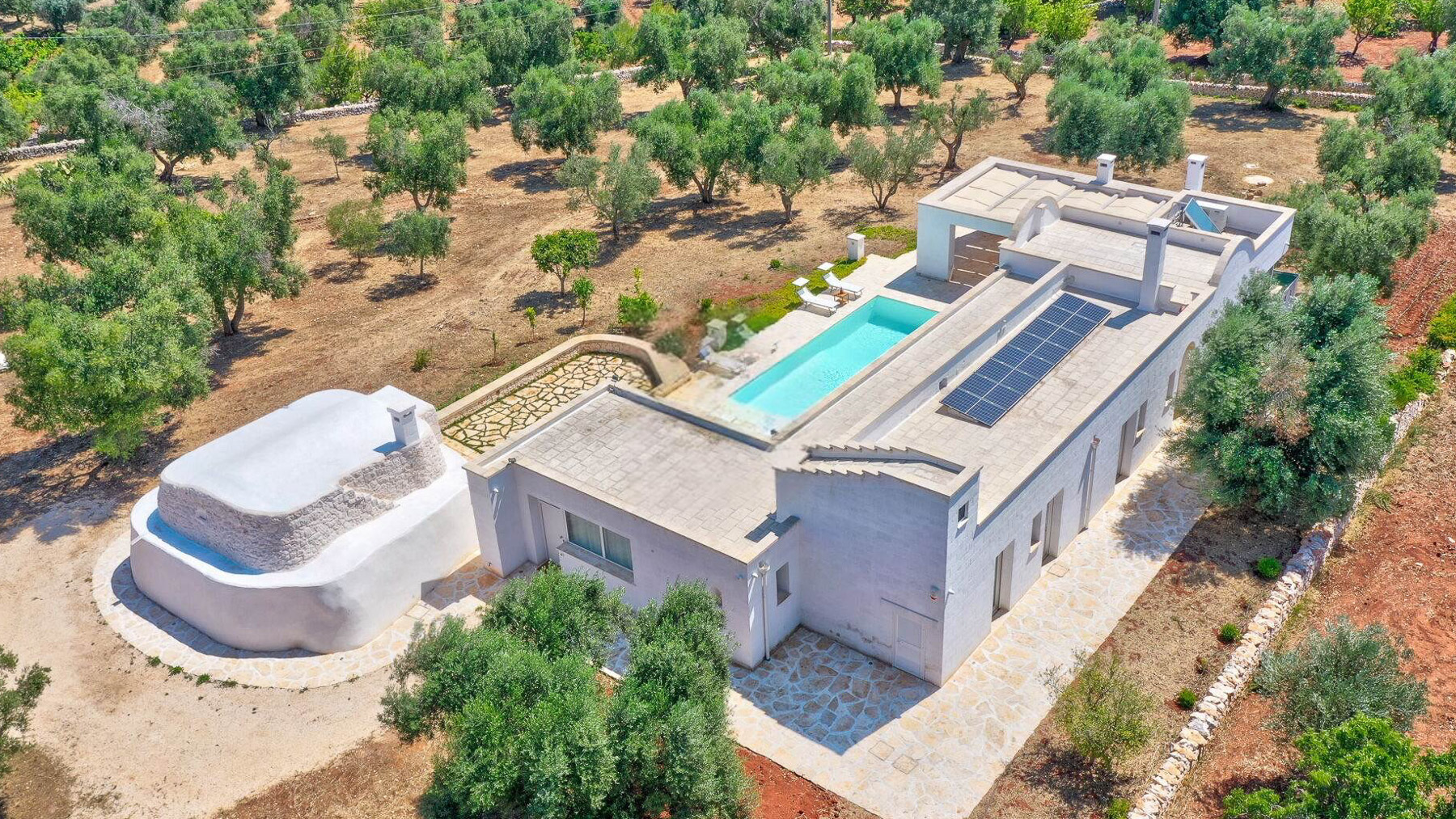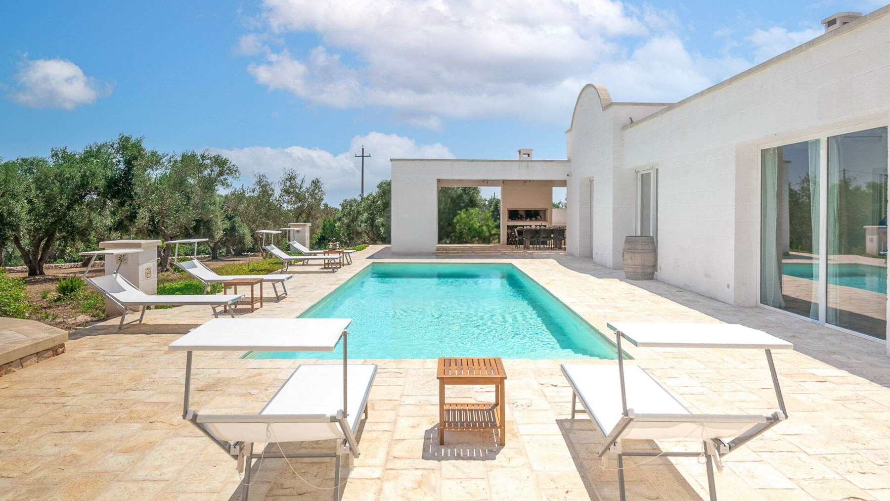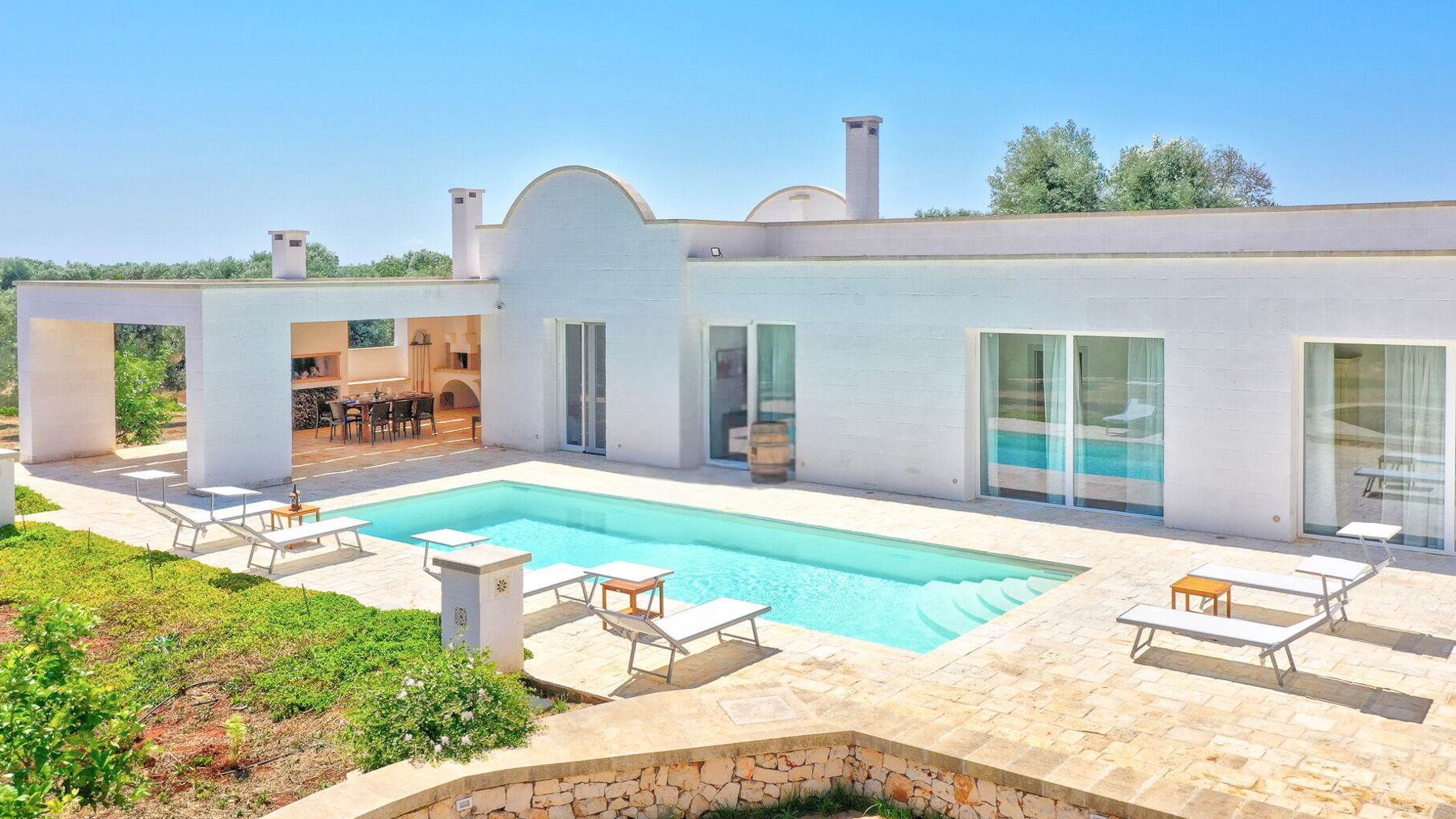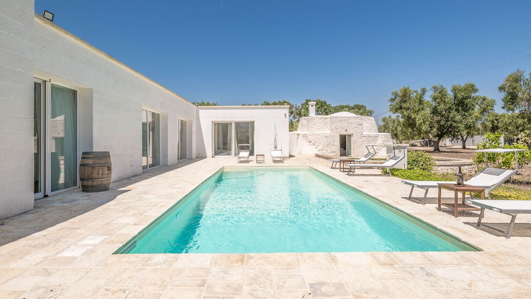 Immersa nell'incantevole paesaggio delle campagne pugliesi, Villa Puspo è un rifugio di pace e lusso, dove i profumi degli agrumi si mescolano alla dolce brezza mediterranea. A pochi minuti dal centro storico di Carovigno e dalle splendide spiagge di Torre Santa Sabina, questa proprietà offre un'esperienza unica di vita autentica nel cuore dell'Alto Salento. La villa, estesa su 200 mq, accoglie con eleganza in un ampio soggiorno dotato di camino, una cucina completamente attrezzata e una sala da pranzo ideale per conviviali serate in famiglia. Le quattro camere da letto e i tre bagni del corpo principale, insieme alla dependance in pietra con camera matrimoniale e bagno privato, garantiscono comfort e privacy. All'esterno, un giardino rigoglioso con alberi da frutto e un orto biologico abbraccia la piscina privata, il solarium e il patio coperto. La cucina esterna, dotata di forno a legna e barbecue, è perfetta per cene sotto le stelle. Vivere a Villa Puspo significa godere di giornate rilassanti a bordo piscina, circondati dal verde e dai suoni della natura. Immagina di raccogliere limoni freschi dal giardino per una limonata da gustare mentre il sole tramonta, o di organizzare una grigliata con amici e famiglia sotto il cielo stellato della Puglia. Questa proprietà rappresenta un'opportunità rara e prestigiosa per chi desidera unire eleganza e autenticità, nel contesto esclusivo delle campagne pugliesi. Un angolo di paradiso che incarna il fascino senza tempo e il comfort moderno.