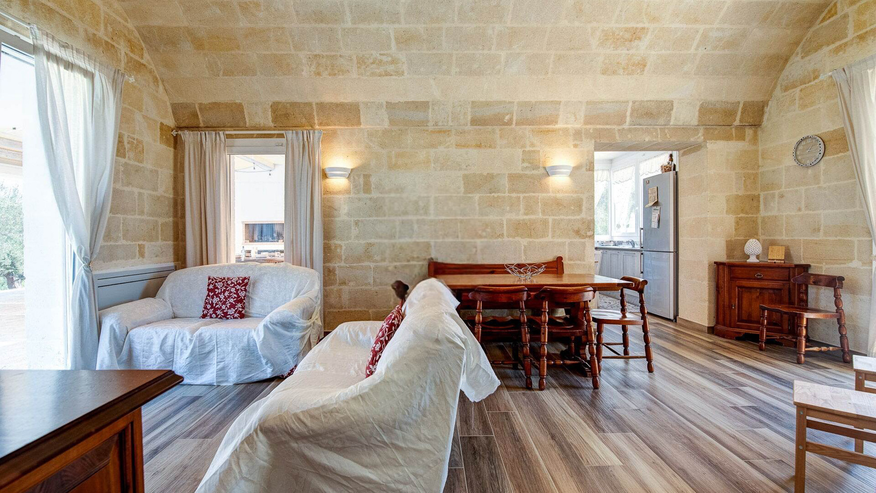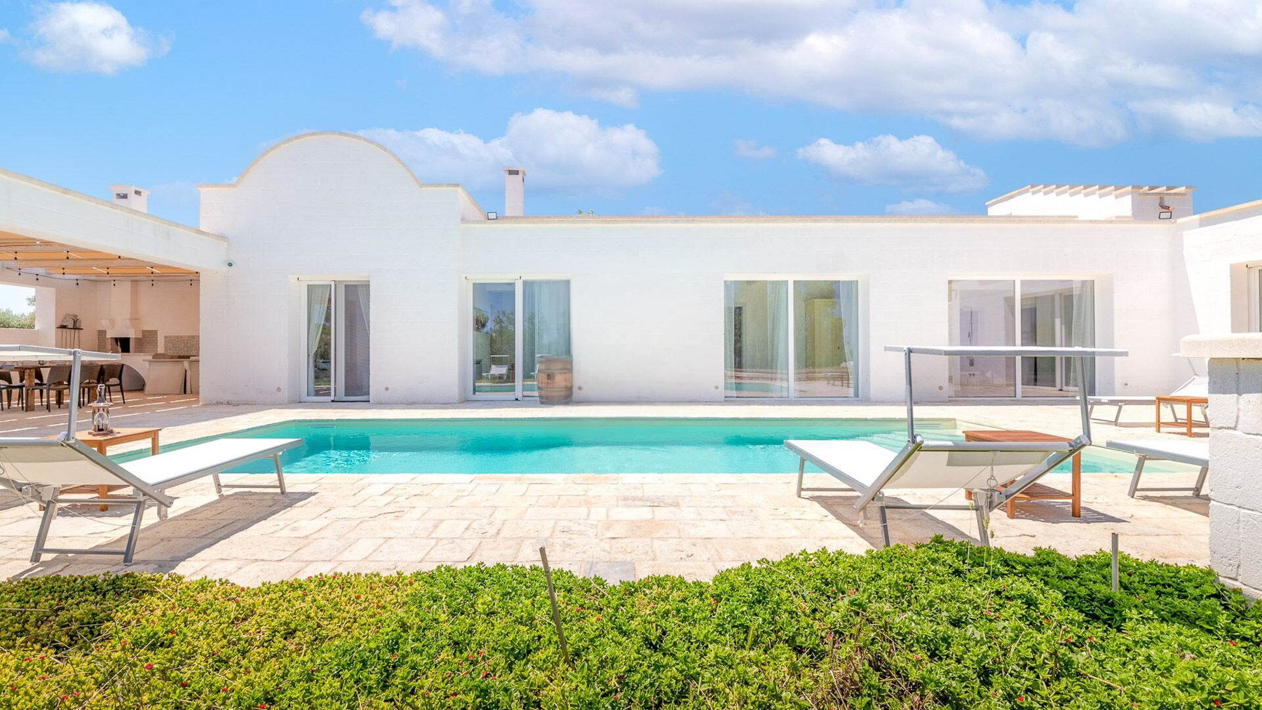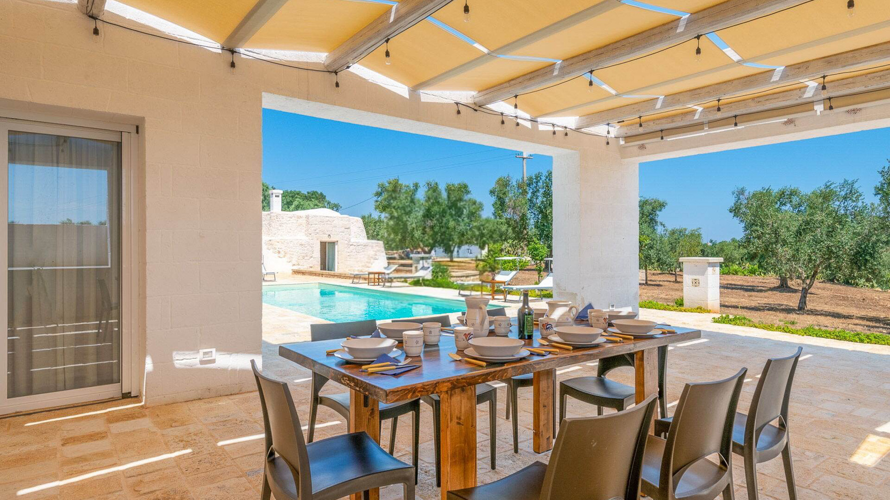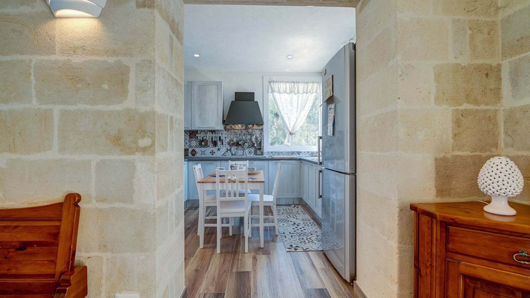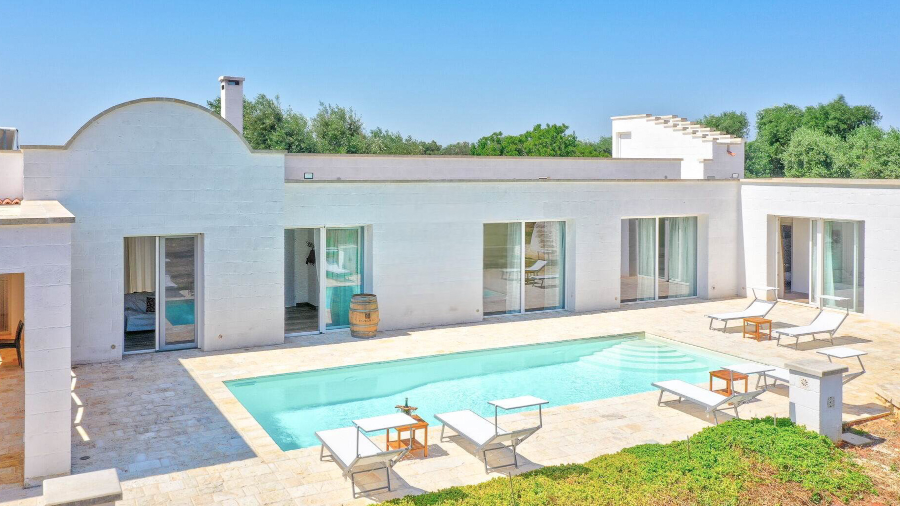 Immersa nell'incantevole paesaggio delle campagne pugliesi, Villa Puspo è un rifugio di pace e lusso, dove i profumi degli agrumi si mescolano alla dolce brezza mediterranea. A pochi minuti dal centro storico di Carovigno e dalle splendide spiagge di Torre Santa Sabina, questa proprietà offre un'esperienza unica di vita autentica nel cuore dell'Alto Salento. La villa, estesa su 200 mq, accoglie con eleganza in un ampio soggiorno dotato di camino, una cucina completamente attrezzata e una sala da pranzo ideale per conviviali serate in famiglia. Le quattro camere da letto e i tre bagni del corpo principale, insieme alla dependance in pietra con camera matrimoniale e bagno privato, garantiscono comfort e privacy. All'esterno, un giardino rigoglioso con alberi da frutto e un orto biologico abbraccia la piscina privata, il solarium e il patio coperto. La cucina esterna, dotata di forno a legna e barbecue, è perfetta per cene sotto le stelle. Vivere a Villa Puspo significa godere di giornate rilassanti a bordo piscina, circondati dal verde e dai suoni della natura. Immagina di raccogliere limoni freschi dal giardino per una limonata da gustare mentre il sole tramonta, o di organizzare una grigliata con amici e famiglia sotto il cielo stellato della Puglia. Questa proprietà rappresenta un'opportunità rara e prestigiosa per chi desidera unire eleganza e autenticità, nel contesto esclusivo delle campagne pugliesi. Un angolo di paradiso che incarna il fascino senza tempo e il comfort moderno.