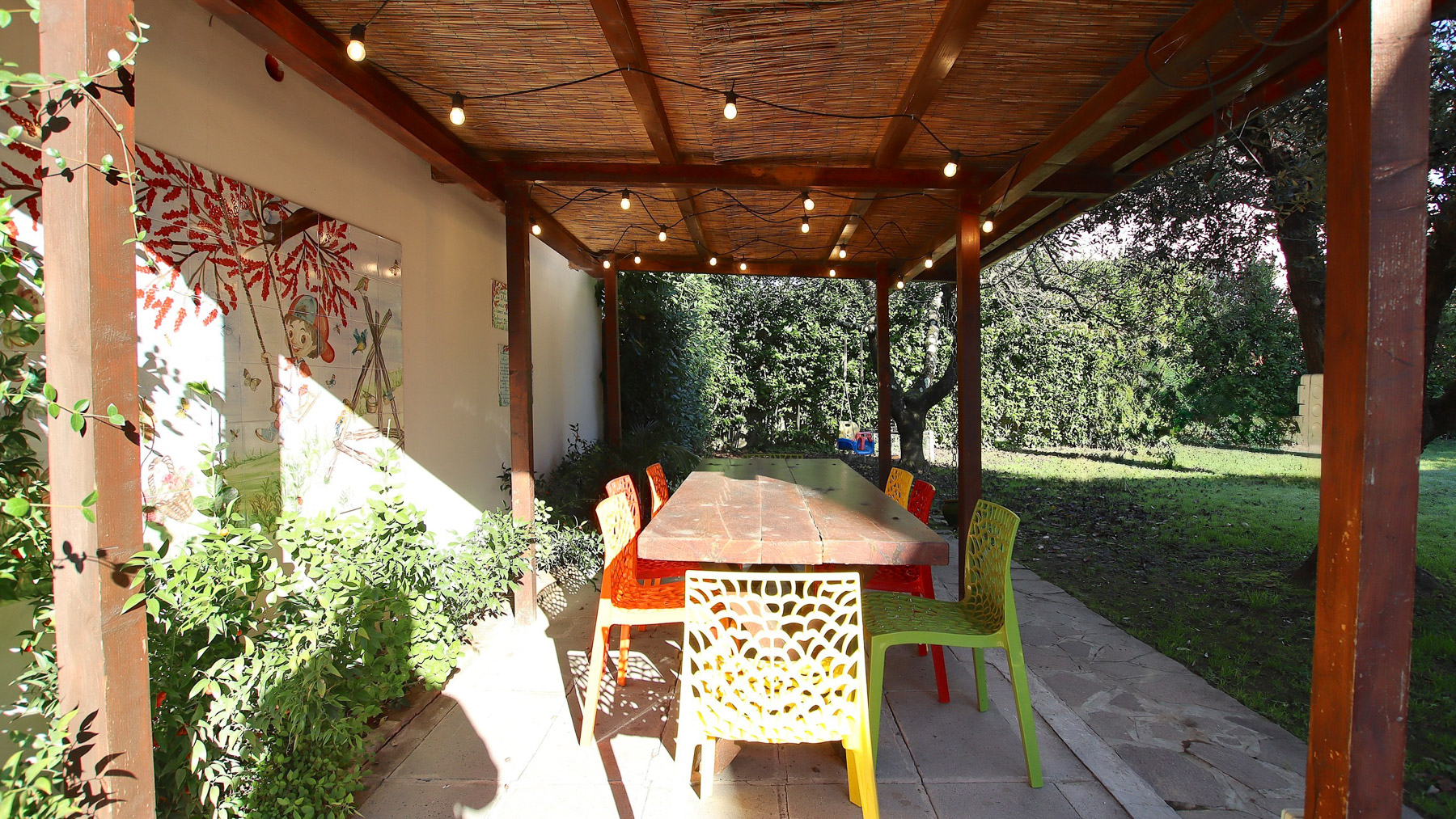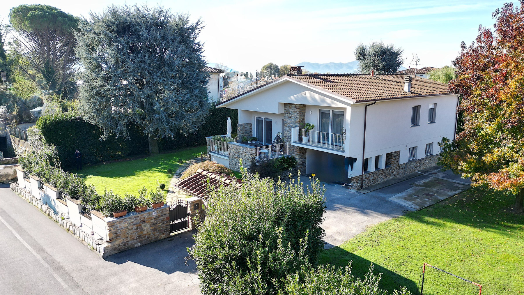 Immersa nel cuore verde della campagna lucchese, questa elegante residenza a Capannori offre un rifugio di pace e bellezza. Circondata da alberi rigogliosi e giardini curati, la casa fonde armoniosamente elementi naturali e moderni, creando un'atmosfera incantevole che risveglia i sensi. Immagina il profumo fresco del mattino mentre il sole filtra tra le foglie, illuminando le pareti in pietra e i toni chiari della facciata. Con una superficie di 230 mq, l'abitazione è un capolavoro di design e funzionalità. Dispone di otto stanze ben distribuite, tra cui un ampio e accogliente soggiorno dove spiccano un divano grigio dai cuscini colorati e un camino dal design contemporaneo. L'arte naturale delle decorazioni murali si fonde con le eleganti tende e l'illuminazione brillante, creando un'invitante atmosfera. Completano la proprietà due bagni moderni, un terrazzo panoramico e un giardino che invita a momenti di relax e convivialità. Vivere in questa casa significa abbracciare uno stile di vita tranquillo e rigenerante. Immagina serate trascorse sul terrazzo, ammirando il tramonto che dipinge il cielo di sfumature calde, o passeggiate mattutine nel giardino, accompagnate dal canto degli uccelli. È un luogo dove ogni giorno si trasforma in un'esperienza sensoriale unica. Questa residenza rappresenta un'opportunità rara e preziosa nel mercato immobiliare di lusso, combinando raffinatezza e comfort in un ambiente senza tempo. Un sogno che aspetta solo di essere vissuto.