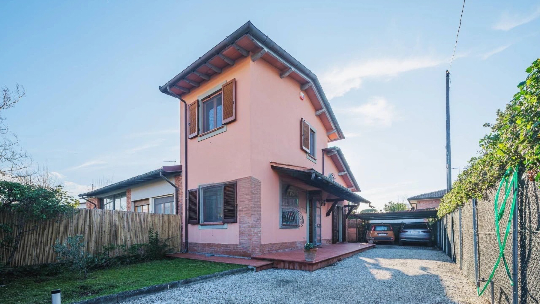 Avvolta dalla luce calda di un tramonto toscano, questa incantevole dimora a Forte dei Marmi è un rifugio di serenità e raffinatezza. Tra il profumo dei pini marittimi e il suono della risacca, la casa si erge con il suo esterno rosa, un invito irresistibile per chi cerca un'oasi personale. Con una superficie di 100 mq, questa proprietà è un capolavoro di design e funzionalità. Distribuita su due piani, offre sette stanze ben illuminate e due bagni eleganti. La struttura si distingue per il suo tetto spiovente e le finestre adornate da persiane marroni, che incorniciano vedute mozzafiato del paesaggio circostante. All'esterno, un vialetto di ghiaia conduce a un pratico carport, mentre un giardino curato promette momenti di puro relax. Immagina di svegliarti ogni mattina con la luce del sole che filtra dolcemente nella tua camera da letto, accarezzando le pareti color pesca. Vivi l'esperienza di trascorrere pomeriggi pigri sul divano bianco, con una buona lettura e la brezza marina che entra dalla finestra. Il giardino diventa il tuo santuario, dove le giornate scorrono tra pranzi all'aperto e serate sotto un cielo stellato. Questa residenza esclusiva incarna il perfetto equilibrio tra eleganza e comfort, offrendo un'opportunità irripetibile per chi desidera un angolo di paradiso in una delle località più prestigiose della costa toscana. Un sogno di lusso e tranquillità, pronto a diventare realtà.