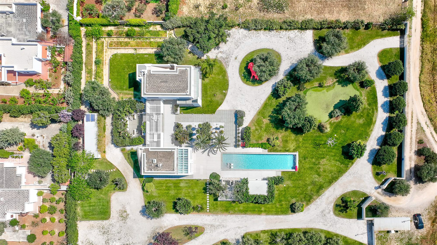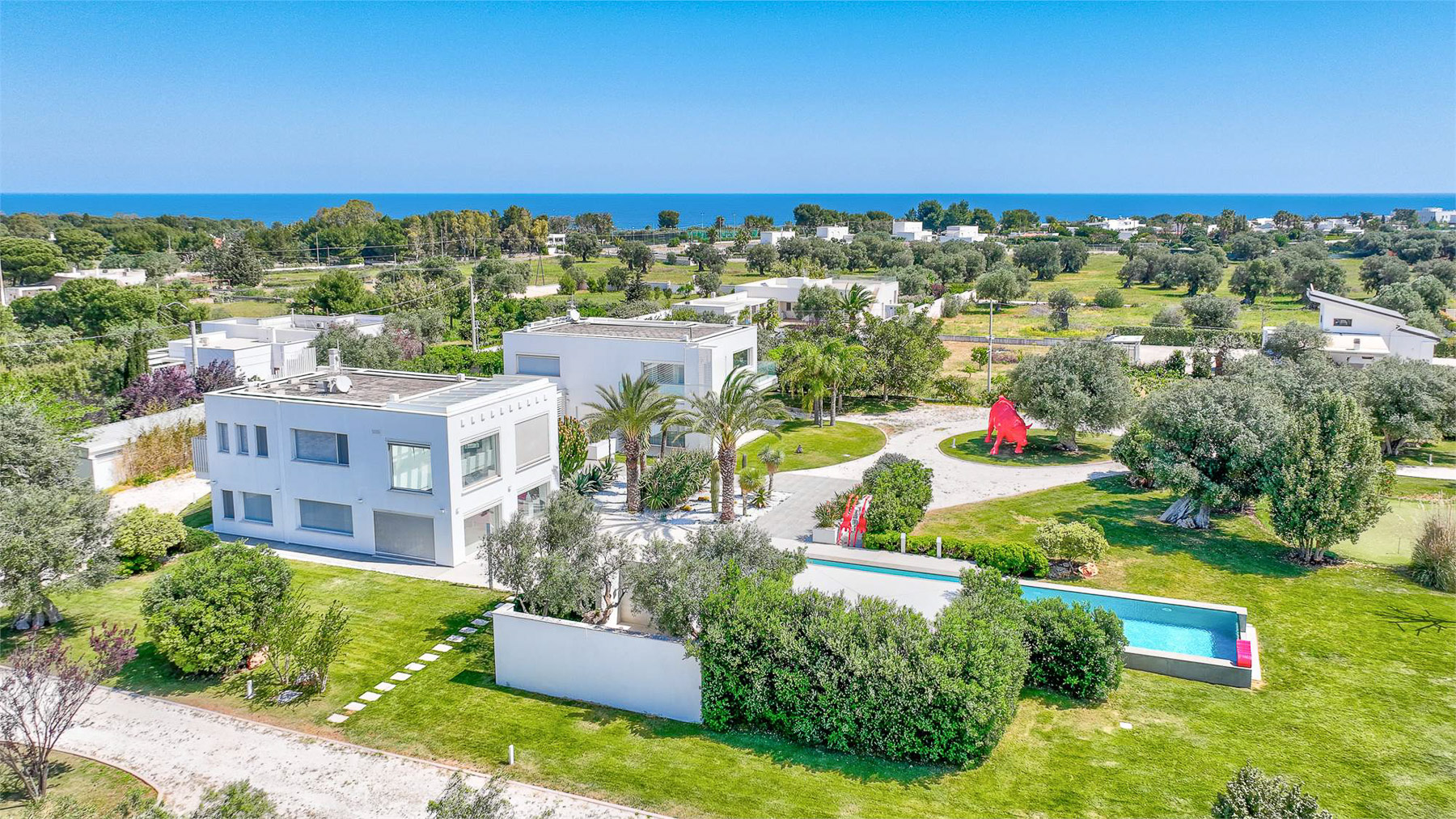 Nascosta tra le meraviglie naturali di Contrada Lamandia a Monopoli, questa villa di design è un autentico rifugio di lusso, dove i raggi del sole attraversano ampie vetrate e il suono delle onde crea un'atmosfera di pace unica. Lasciati avvolgere dalla magia di un luogo dove il mare è il protagonista indiscusso. Con una superficie di 550 mq, la villa si sviluppa in due corpi abitativi che ospitano 16 stanze, tra cui 3 camere da letto e 5 bagni. Il giardino privato di 10.000 mq è un capolavoro di paesaggio, con una piscina a sfioro di 24 metri e pareti di cristallo, un'area solarium e un elegante gazebo. La tecnologia domotica all'avanguardia garantisce comfort e sicurezza, mentre il terrazzo offre panorami mozzafiato sulla costa di Monopoli. Immagina di vivere momenti indimenticabili, come godere del tramonto dal terrazzo panoramico o rilassarti nell'area wellness con Hammam, sauna e piscina riscaldata. Ogni giornata qui è un'esperienza di benessere e lusso, immersi nella bellezza della natura e del design contemporaneo. Questa villa rappresenta un'opportunità irripetibile nel panorama immobiliare di lusso, un perfetto equilibrio tra eleganza senza tempo e comfort moderno. Non perdere l'occasione di possedere una delle proprietà più prestigiose di Monopoli.