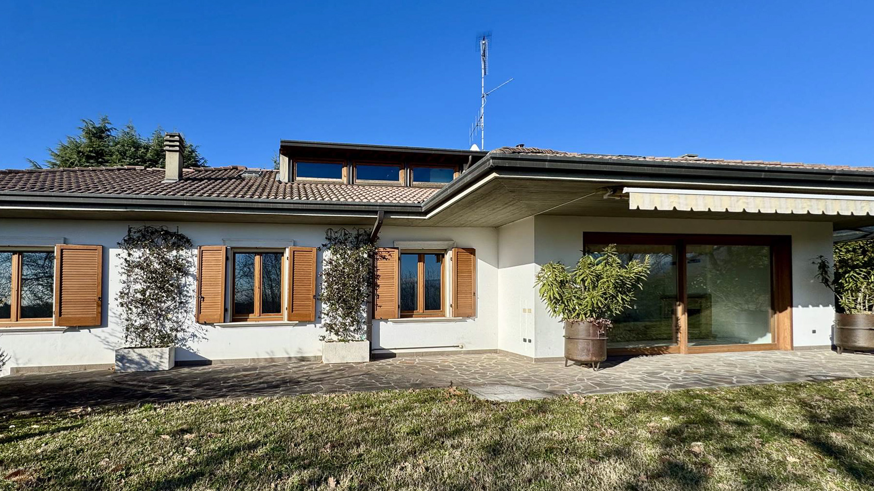 Circondata dalla serenità della campagna di Moriondo Brescia, questa straordinaria villa moderna si presenta come un rifugio esclusivo dove il lusso incontra la natura. La luce del sole danza attraverso le ampie finestre, illuminando ogni angolo di questa dimora elegante e accogliente. Il profumo dei fiori e la brezza leggera invitano a immergersi in un'atmosfera di pace e bellezza senza tempo. Con una superficie di 319 mq, la villa si estende su un unico livello, offrendo 17 stanze ben progettate, tra cui sette bagni raffinati. L'architettura moderna si fonde armoniosamente con la natura circostante, grazie ai dettagli in legno e alle ampie vetrate che offrono una vista mozzafiato sul giardino curato. Gli spazi esterni sono un invito a rilassarsi e godere di momenti di convivialità, con un'area coperta arredata con un tavolo in legno e sedie accoglienti, perfetta per cene all'aperto. Il caminetto esterno aggiunge un tocco di calore nelle serate più fresche. Vivere in questa villa significa abbracciare uno stile di vita sereno e raffinato. Immagina di sorseggiare un caffè al mattino sul patio, circondato dal verde, o di organizzare cene indimenticabili con amici e famiglia sotto il cielo stellato, con un bicchiere di vino in mano. Ogni giornata qui è un'opportunità per creare ricordi preziosi. Questa proprietà rappresenta un'opportunità irripetibile per chi cerca una residenza esclusiva immersa nel lusso discreto della campagna bresciana. Un sogno che diventa realtà per chi desidera vivere in un contesto di rara bellezza e tranquillità.