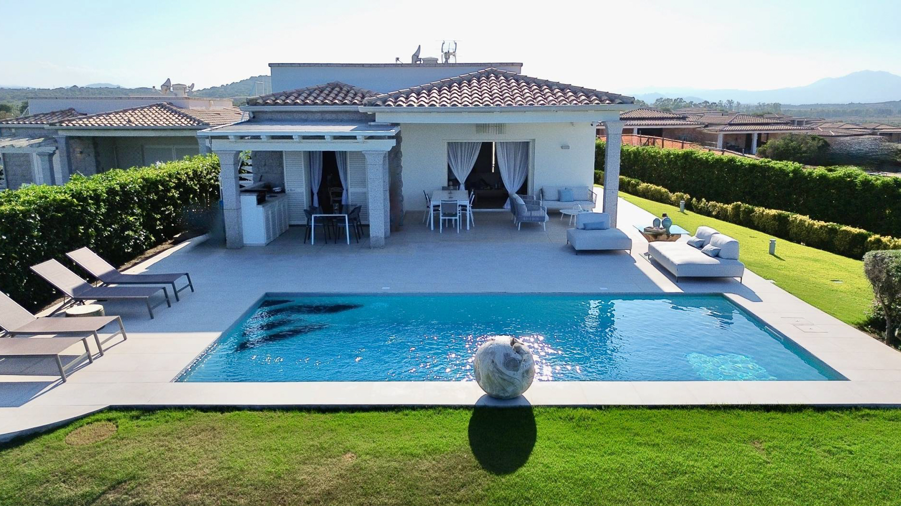 Immagina di svegliarti ogni mattina con la luce dorata del sole che accarezza il tuo volto, mentre una leggera brezza marina porta con sé il profumo del Mediterraneo. Situata a Murta Maria, in una delle zone più incantevoli di Olbia-Tempio, questa villa è un rifugio di lusso e serenità, dove la natura rigogliosa e il design raffinato si incontrano in perfetta armonia. Con una superficie di 245 mq, la villa offre spazi ampi e luminosi, comprendendo quattro camere da letto e due bagni moderni, ideali per accogliere famiglia e ospiti. All'esterno, un giardino curato circonda una piscina dal design contemporaneo, creando un'oasi privata dove rilassarsi al sole. Il terrazzo panoramico è perfetto per ammirare il paesaggio circostante, mentre il patio coperto offre un angolo intimo per pranzi all'aperto e momenti di convivialità. Vivere in questa villa significa abbracciare un lifestyle esclusivo, dove ogni giornata è un'opportunità per godere della bellezza del mare e della natura. Immagina serate estive trascorse a bordo piscina, con il calore del tramonto che avvolge l'orizzonte, o cene sotto le stelle nel tuo giardino privato. È una vita fatta di semplicità elegante e momenti indimenticabili. Questa villa rappresenta il perfetto equilibrio tra eleganza senza tempo e comfort moderno, una gemma rara nel panorama immobiliare di lusso. Non perdere l'opportunità di trasformare questo sogno in realtà.