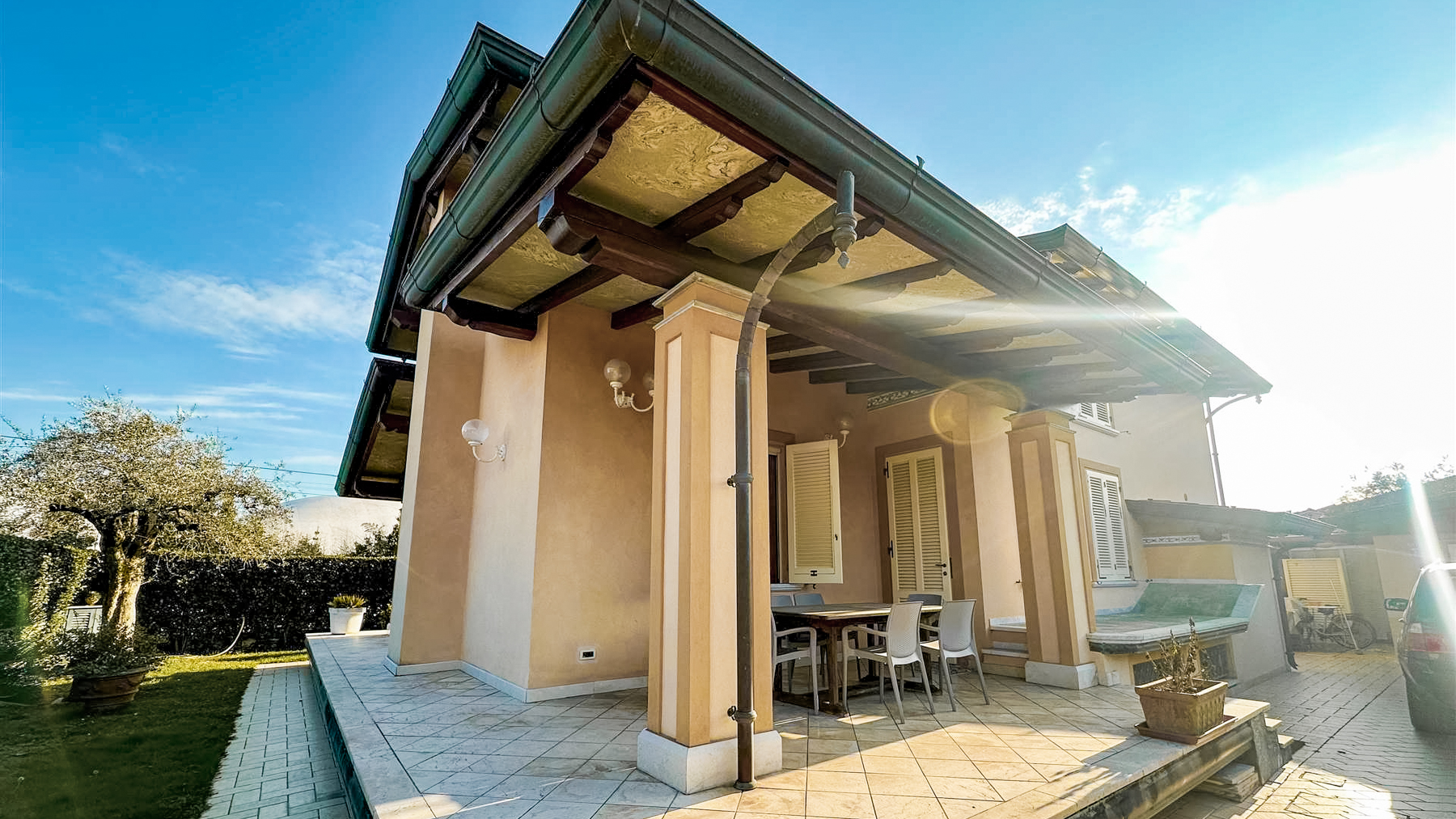 Incastonata in una cornice di quiete e raffinatezza, questa villa esclusiva a Marina di Pietrasanta vi accoglie con la sua bellezza senza tempo. Immaginate di essere circondati dal profumo delle piante in fiore e dal leggero fruscio del vento tra le fronde degli alberi, mentre la luce del sole filtra attraverso le ampie finestre, creando un'atmosfera di calore e serenità. La proprietà, che si estende su 300 mq su tre livelli, offre spazi ampi e ben distribuiti, con ben 7 stanze totali e 3 eleganti bagni. Gli interni sono un omaggio al lusso e all'eleganza, con pavimenti in marmo pregiato e arredi di design che conferiscono un tocco sofisticato a ogni ambiente. Il giardino di circa 300 mq è un vero gioiello, un angolo di paradiso che ospita un comodo ricovero per tre auto e invita a momenti di relax all'aria aperta. Vivere in questa villa significa abbracciare uno stile di vita unico, dove ogni giorno inizia con la dolce melodia del mare e si conclude con tramonti spettacolari. Immaginate di organizzare cene estive nel giardino, con gli amici riuniti sotto le stelle, o di godervi un tranquillo pomeriggio nella taverna accogliente, magari davanti al camino acceso. Questa villa rappresenta un'opportunità irripetibile nel panorama immobiliare di lusso, un rifugio di prestigio che coniuga eleganza senza tempo e comfort moderno. Un sogno che aspetta solo di essere vissuto.