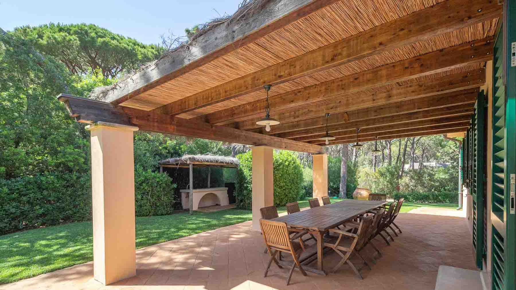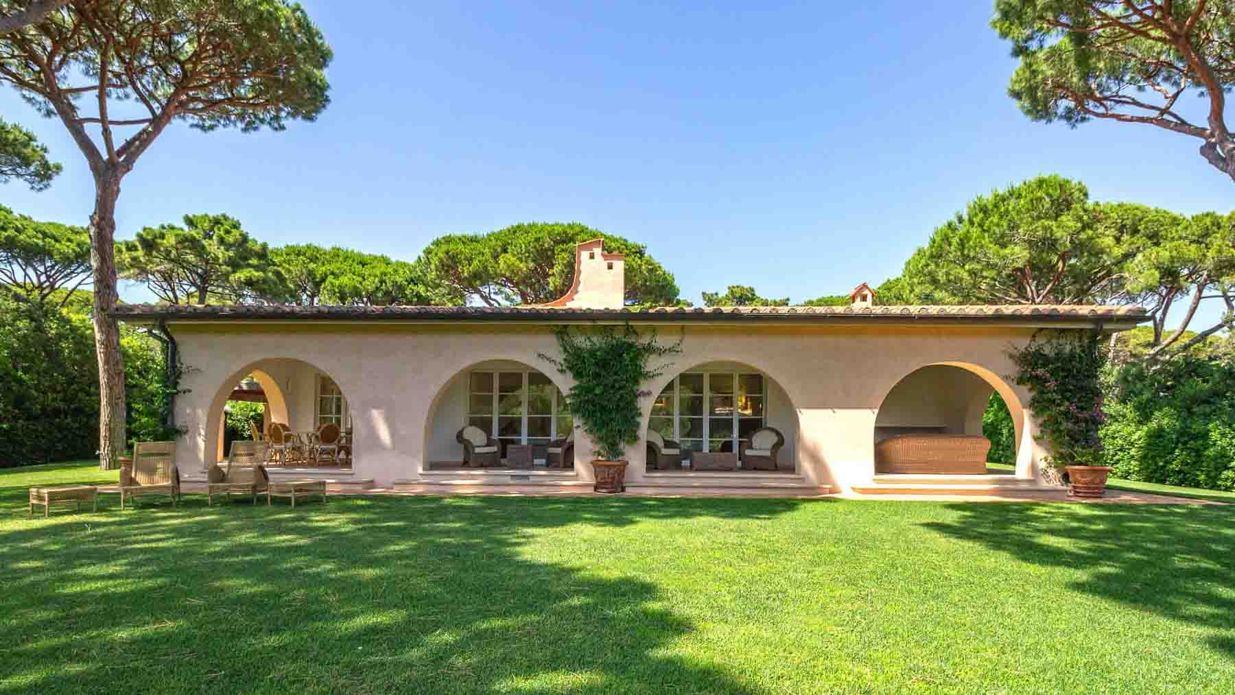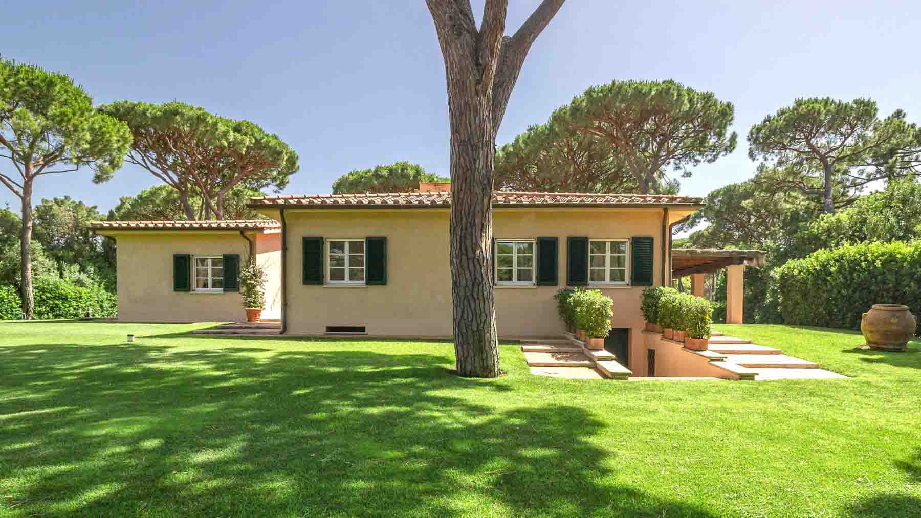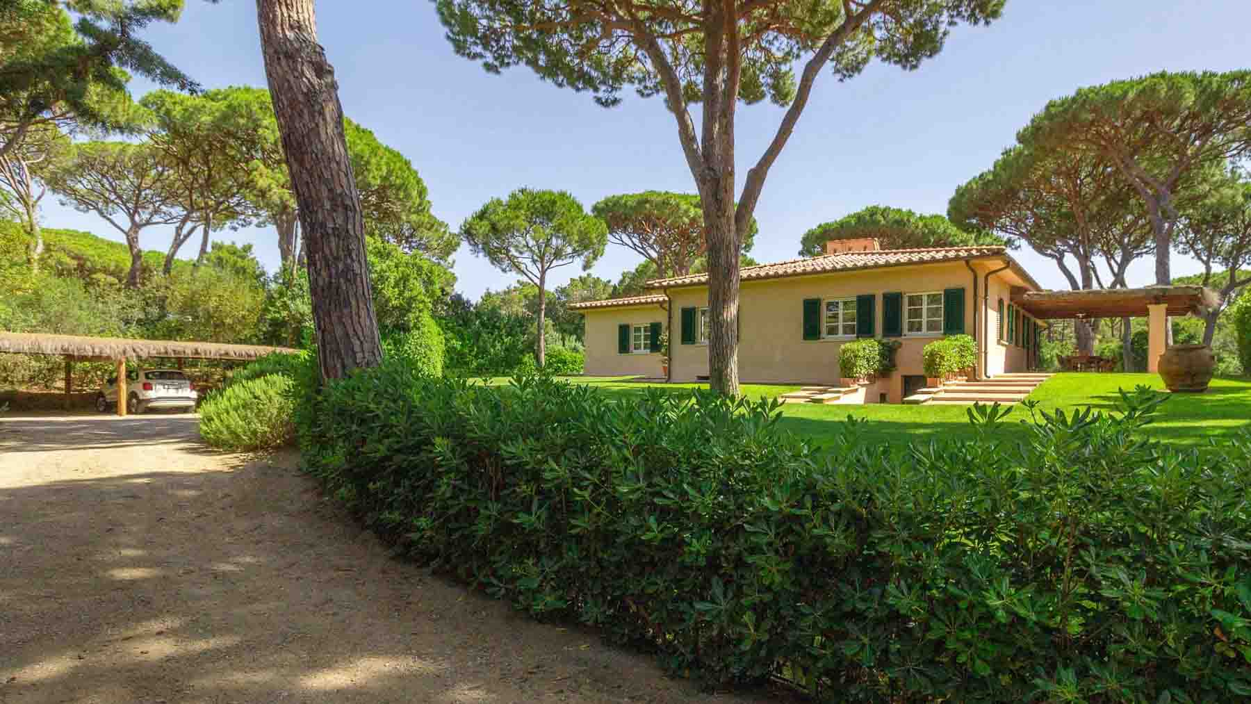 Immersa nella maestosa pineta di Roccamare, questa villa di lusso a Castiglione della Pescaia è un rifugio di tranquillità e raffinatezza. Qui, il profumo avvolgente dei pini si mescola con la brezza marina, creando un'atmosfera idilliaca che invita al relax e al benessere. A pochi passi dalla spiaggia privata, la proprietà si inserisce armoniosamente in un contesto naturale unico. La villa, dalla superficie di 400 mq, si sviluppa su un unico livello, offrendo spazi ampi e luminosi. Dispone di sei camere da letto, tutte con bagno en suite, e un bagno di cortesia, garantendo il massimo comfort e privacy. Gli interni dialogano con l'esterno grazie a grandi vetrate e porticati che si aprono su un giardino rigoglioso di 5.000 mq, arricchito da una splendida piscina. La casa è dotata di tutte le comodità moderne, compreso un parcheggio coperto per quattro auto. Vivere in questa villa significa abbandonarsi a un lifestyle esclusivo, dove ogni giornata può iniziare con una passeggiata tra i pini verso la spiaggia o con un tuffo rigenerante in piscina. Immagina le serate estive trascorse sotto le stelle, cenando nell'area BBQ mentre il sole tramonta sul mare, creando momenti indimenticabili con amici e familiari. Questa villa rappresenta un'opportunità irripetibile per chi cerca un'oasi di eleganza e comfort nella splendida cornice della costa toscana, un equilibrio perfetto tra privacy e bellezza senza tempo.