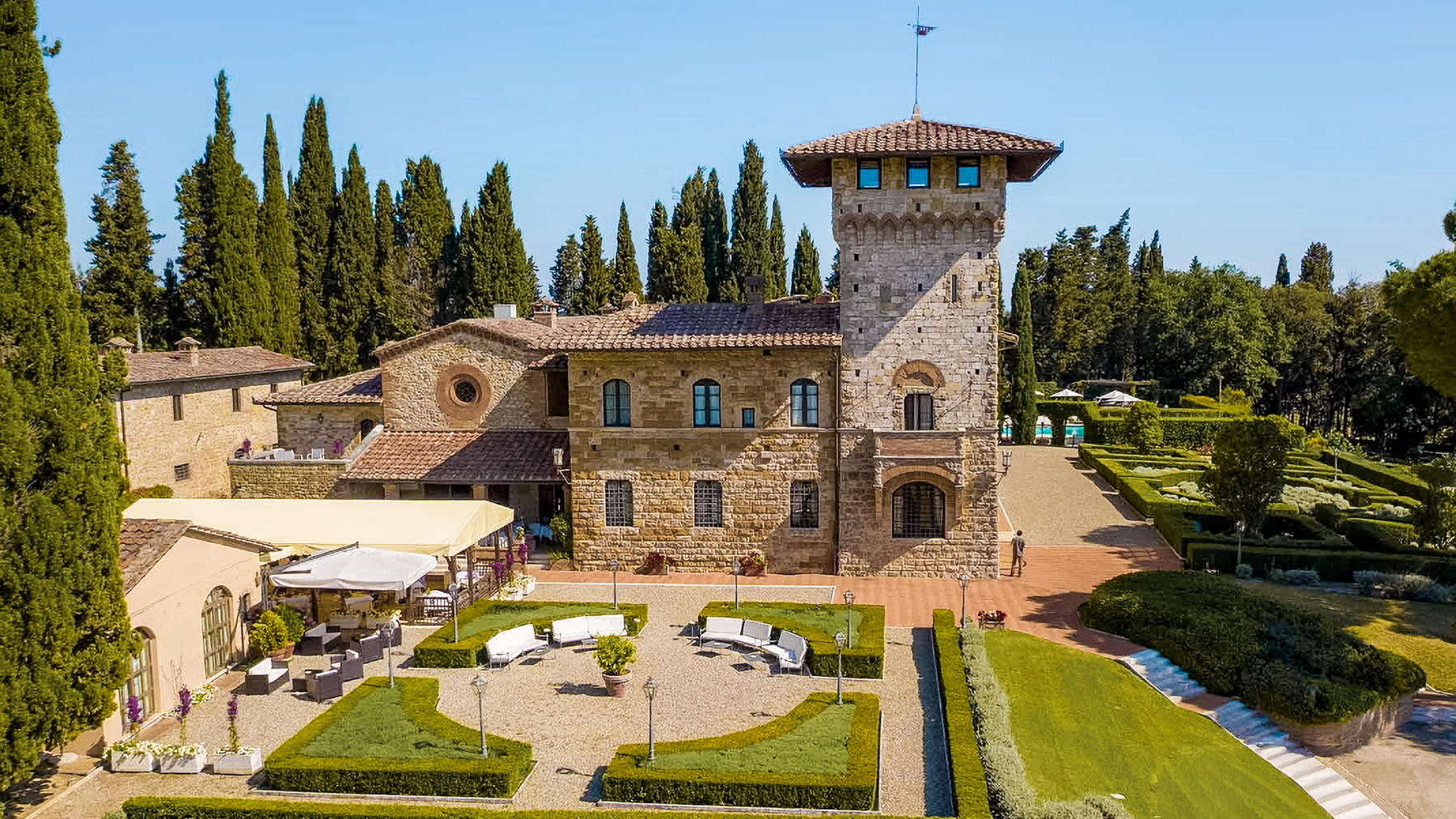 Immersa nel cuore della campagna toscana, questa straordinaria villa è un rifugio di pace e lusso, incastonata tra giardini curati e alberi secolari. Immagina di svegliarti con il cinguettio degli uccelli e la luce del sole che filtra attraverso le ampie finestre, mentre il profumo dei fiori riempie l'aria. Con una superficie di 2400 mq, questa magnifica residenza offre 20 camere e 20 bagni, perfetti per ospitare amici e familiari in grande stile. La proprietà vanta una piscina scintillante, ideale per rinfrescarsi nelle calde giornate estive, e giardini dai disegni geometrici che invitano a passeggiate tranquille. Situata a San Gimignano, nella pittoresca provincia di Siena, la villa è un perfetto connubio tra storia e comfort moderno, con una facciata in pietra e dettagli architettonici che richiamano l'eleganza italiana. Vivere qui significa abbandonarsi a un lifestyle esclusivo, fatto di relax e momenti indimenticabili. Immagina di sorseggiare un calice di vino locale a bordo piscina o di organizzare cene al tramonto nel giardino, circondato dalla bellezza senza tempo del paesaggio toscano. Questa villa non è solo una casa, ma un'esperienza unica e irripetibile, un gioiello di eleganza e raffinatezza che rappresenta il massimo del lusso immobiliare. Non perdere l'opportunità di possedere un pezzo di paradiso in una delle regioni più affascinanti d'Italia.