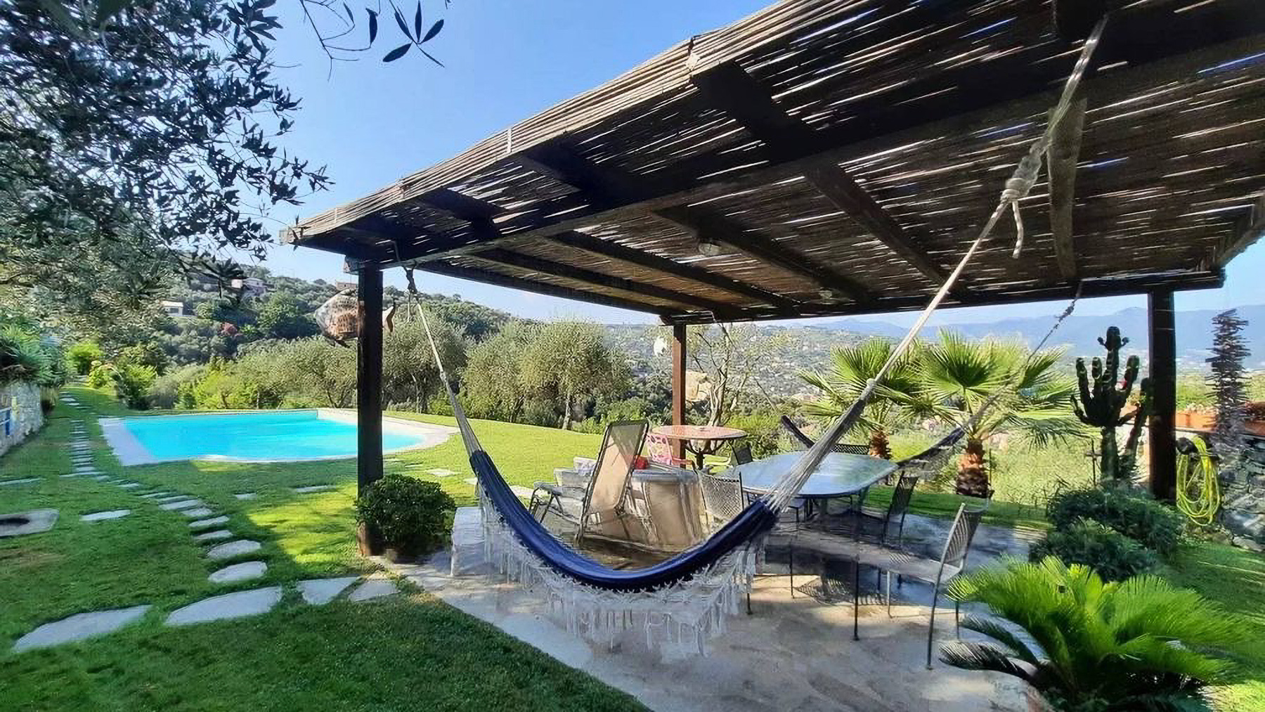 Nascosta tra le dolci colline di Nozarego, questa villa incanta con la sua atmosfera di pace e lusso. Qui, immersi nel verde rigoglioso di ulivi secolari e alberi da frutto, sarete accolti dal canto degli uccelli e dal profumo del mare, a pochi minuti dal vivace centro di Santa Margherita Ligure. La luce del sole si riflette dolcemente sulle pietre del viale d'accesso, creando un'atmosfera serena e invitante. Con una superficie di 150 mq, la villa si sviluppa su tre livelli, ognuno con ingresso indipendente per garantire la massima privacy. Le otto stanze, tra cui tre eleganti bagni, sono rifinite con materiali di pregio che combinano eleganza e comfort. All'esterno, un ampio terreno terrazzato accoglie una piscina privata e una cucina all'aperto dotata di forno a legna e barbecue, perfetta per cene all'aperto. Anche senza vista mare, la posizione privilegiata offre un panorama mozzafiato delle colline circostanti, infondendo un senso di pace e luminosità. Vivere qui significa abbracciare uno stile di vita in sintonia con la natura. Immaginatevi a passeggiare nei giardini curati, seguiti da serate rilassanti sotto la pergola, con una brezza leggera che vi accarezza e il cielo stellato che vi sovrasta. Le giornate si dipanano serene, in un ambiente che invita al relax e alla contemplazione. Questa villa rappresenta un'opportunità irripetibile nel panorama immobiliare di lusso: un rifugio esclusivo dove l'eleganza si fonde armoniosamente con il comfort, nel cuore della splendida Liguria. Un sogno fatto di tranquillità e bellezza, perfetto per chi cerca un angolo di paradiso privato.