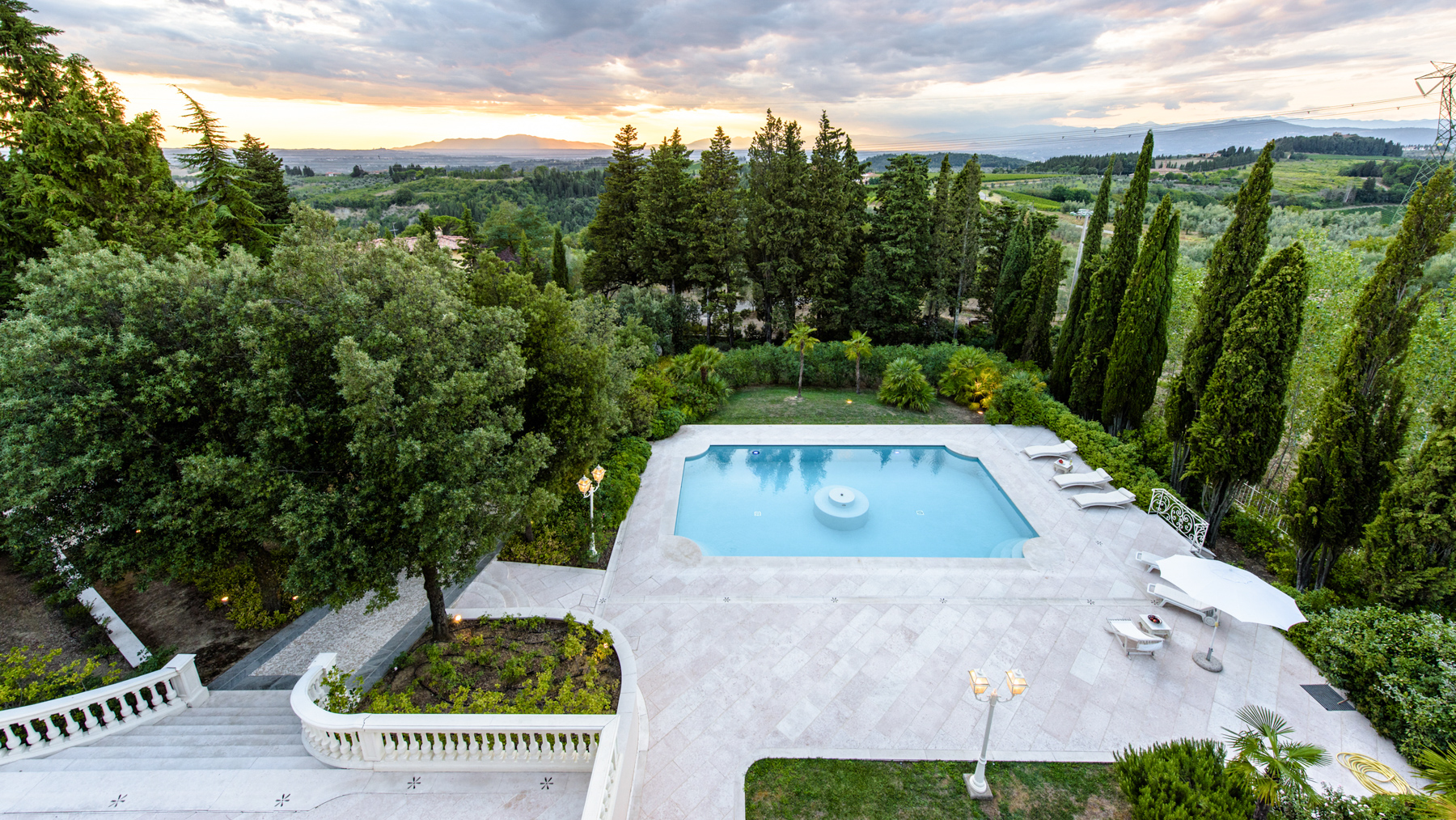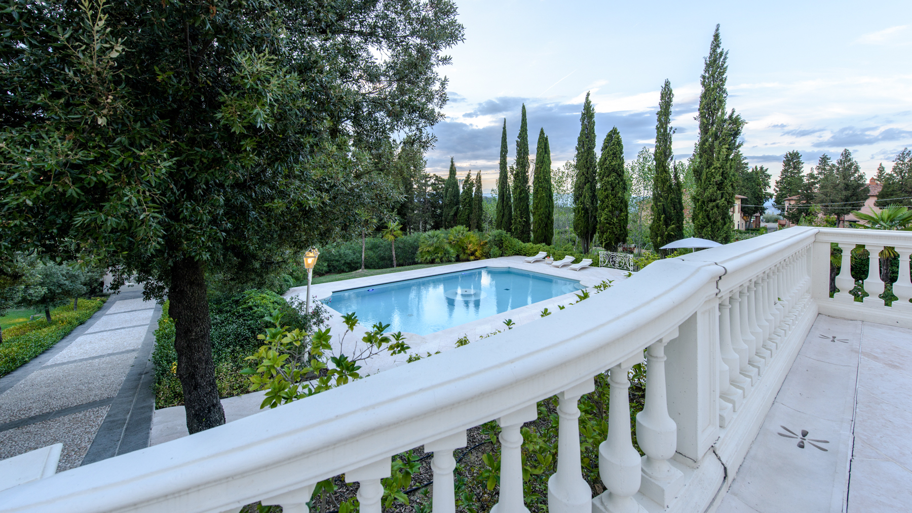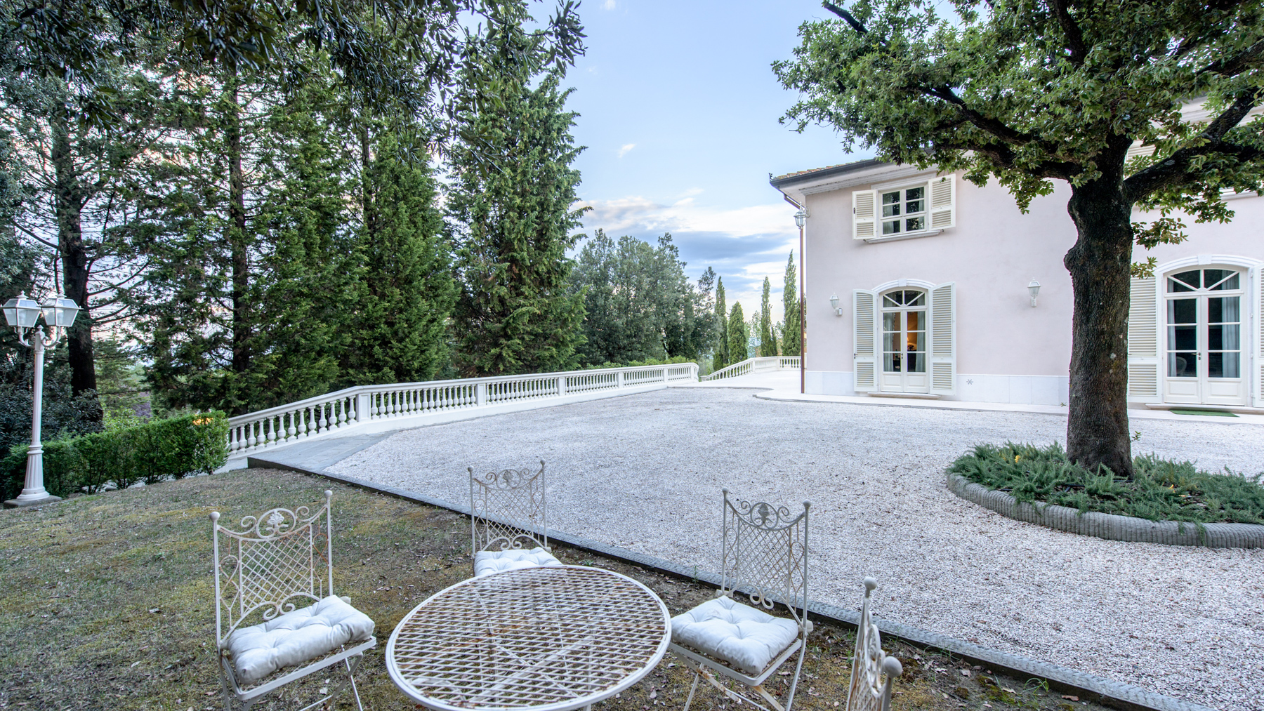 Nelle colline del Chianti, in posizione dominante tra Firenze e Siena, questa villa liberty di 530 mq si rivela con la grazia scenografica di un’eleganza senza tempo. Il viale alberato attraversa il parco e introduce a una dimora che unisce fascino rococò e rigore toscano, affacciata su un paesaggio di vigne e cipressi che muta colore con le stagioni. La luce entra generosa nei saloni affrescati del piano terra, dove il doppio soggiorno con camino dialoga con la sala da pranzo e con la cucina abitabile in stile country chic, direttamente collegata all’esterno per una continuità naturale tra interni e giardino. Lo studio con terrazza privata guarda le colline fiorentine, mentre il maestoso ingresso con scala in marmo anticipa l’atmosfera di rappresentanza che si respira in ogni ambiente. Al primo piano si sviluppa la zona notte con quattro ampie camere, tutte con bagno ensuite in marmo e pavimenti in legno, oltre a una stanza armadi; da una di esse si accede alla torretta panoramica oggi adibita a studio, un rifugio sospeso sul paesaggio. Il piano inferiore ospita un appartamento indipendente di circa 70 mq con soggiorno e cucina, camera e bagno, oltre a lavanderia, ideale per staff o ospiti, con accesso diretto al giardino. La villa è circondata da un parco privato di 4.000 mq completamente recintato, arricchito da una piscina panoramica in travertino bianco con fontana centrale e area idromassaggio, terrazza solarium e parcheggio per 8 auto con doppi cancelli carrabili. Il terreno complessivo di circa 2 ettari lambisce armoniosamente la proprietà, con possibilità di acquisire ulteriori 4 ettari adiacenti. Recentemente ristrutturata con materiali di pregio, parquet antico, marmi e finiture raffinate, la villa è dotata di riscaldamento a GPL, aria condizionata al piano primo, Wi-Fi e acqua da acquedotto comunale. Situata a 30 km da Firenze, a 35 km dall’aeroporto di Firenze Peretola e a circa 50 km dall’aeroporto di Pisa, è attualmente inserita nel circuito degli affitti turistici con ottima redditività stagionale. Qui le giornate scorrono tra colazioni all’ombra degli alberi, pomeriggi in piscina con lo sguardo che si perde tra le colline e sere illuminate dal tramonto toscano. È una dimora che coniuga rappresentanza e intimità, vocazione internazionale e anima autentica, offrendo un equilibrio raro tra bellezza architettonica, comfort contemporaneo e paesaggio senza tempo.