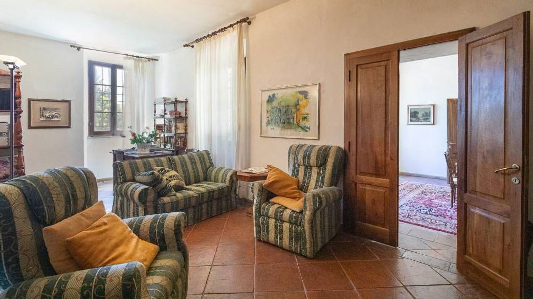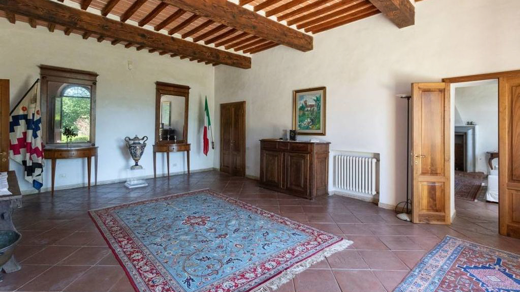 Immersa nel cuore delle colline toscane, questa villa incantevole è avvolta da un paesaggio di rara bellezza, dove la luce del sole filtra tra i rami degli ulivi e il cinguettio degli uccelli accompagna il dolce fruscio del vento. A pochi passi dal borgo storico di Monteriggioni, la proprietà è un rifugio di pace e lusso. Con una superficie di 804 mq, la villa si distingue per la sua architettura elegante e raffinata, offrendo un totale di 37 stanze e 6 bagni. L'ingresso maestoso, con una scalinata imponente, conduce a un interno dove il design classico incontra il comfort moderno. Gli ampi soggiorni, la cucina abitabile e le camere da letto finemente arredate creano un ambiente accogliente e sofisticato. Il giardino curato e il parco circostante offrono uno scenario perfetto per momenti di relax e convivialità. Vivere in questa villa significa abbracciare uno stile di vita autentico e rigenerante. Immagina di passeggiare tra i sentieri del giardino al tramonto, lasciandoti avvolgere dai profumi della terra e dall'ineguagliabile bellezza della campagna toscana. Le serate estive diventano un'occasione per cene all'aperto sotto un cielo stellato, con la compagnia di amici e familiari. Questa proprietà unica rappresenta un'opportunità irripetibile per chi desidera vivere in un contesto di prestigio e serenità, dove l'eleganza senza tempo si fonde armoniosamente con il fascino della vita in campagna.