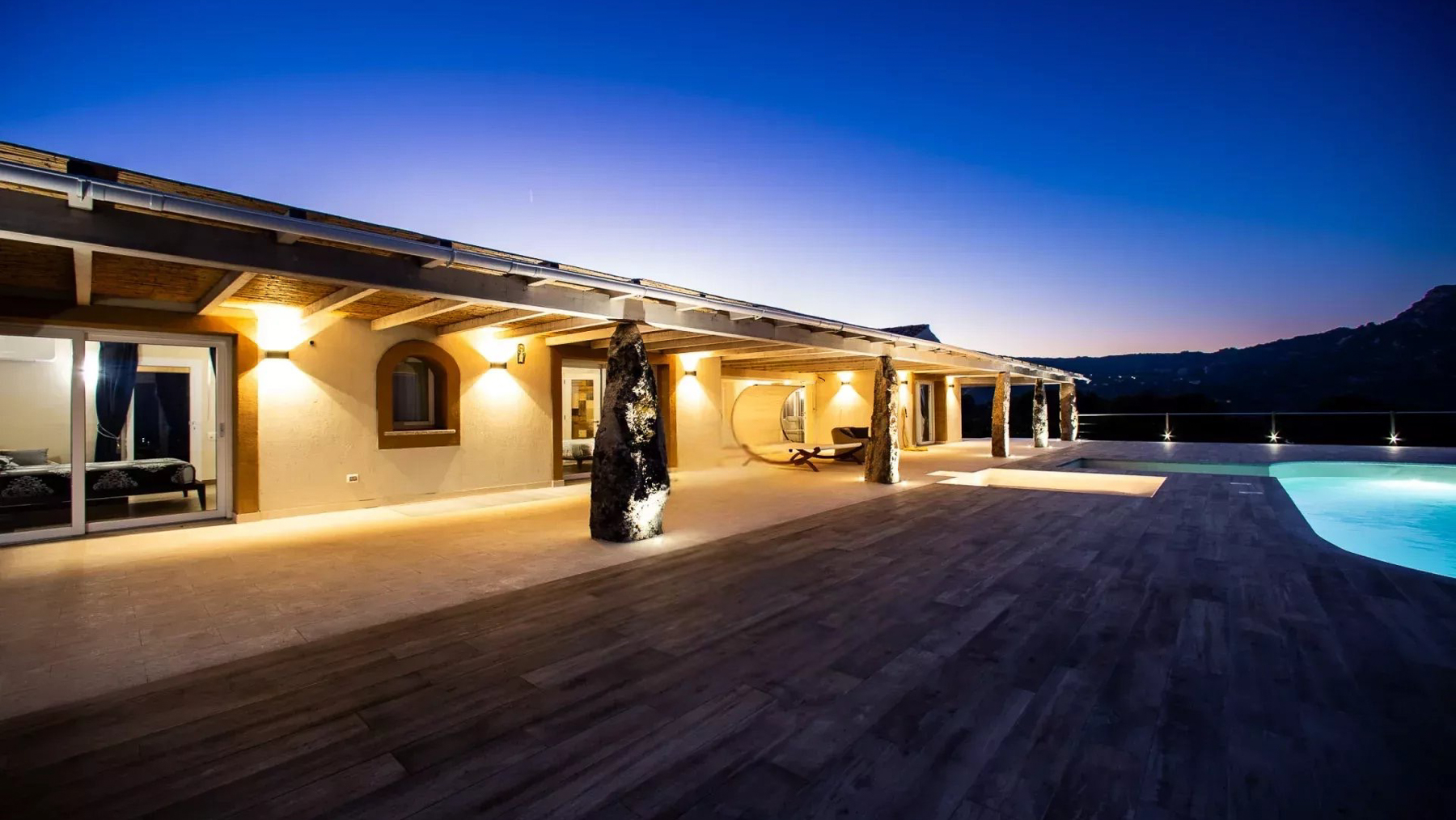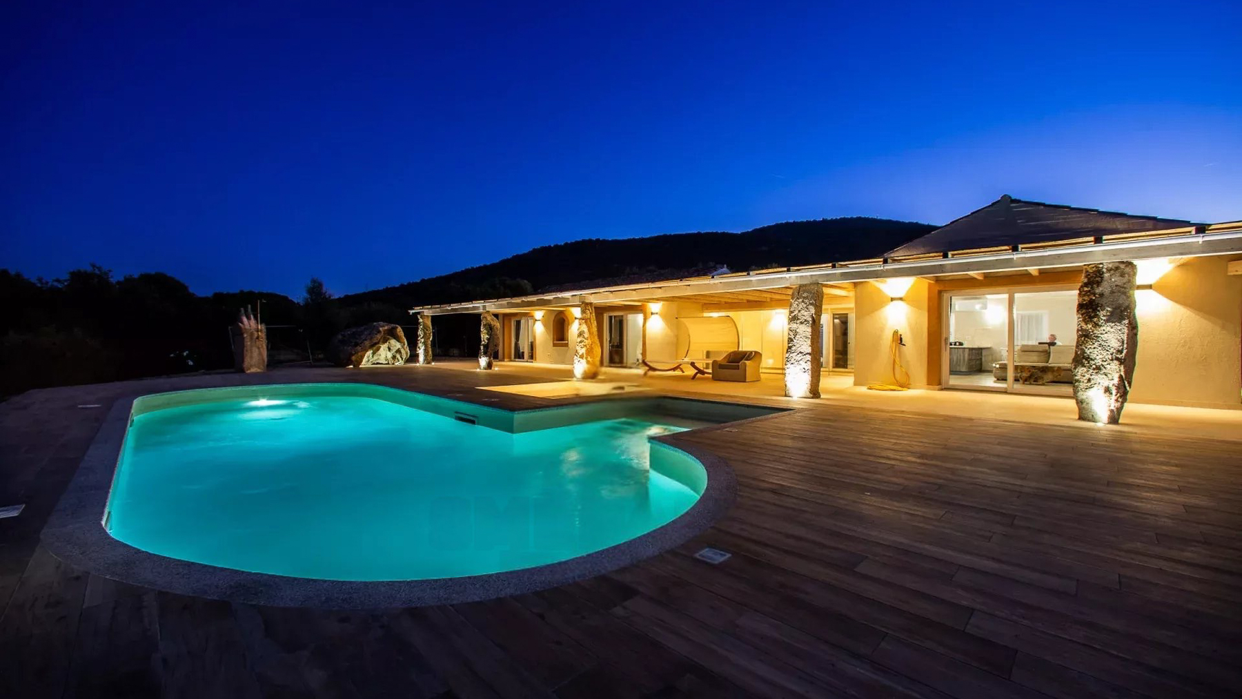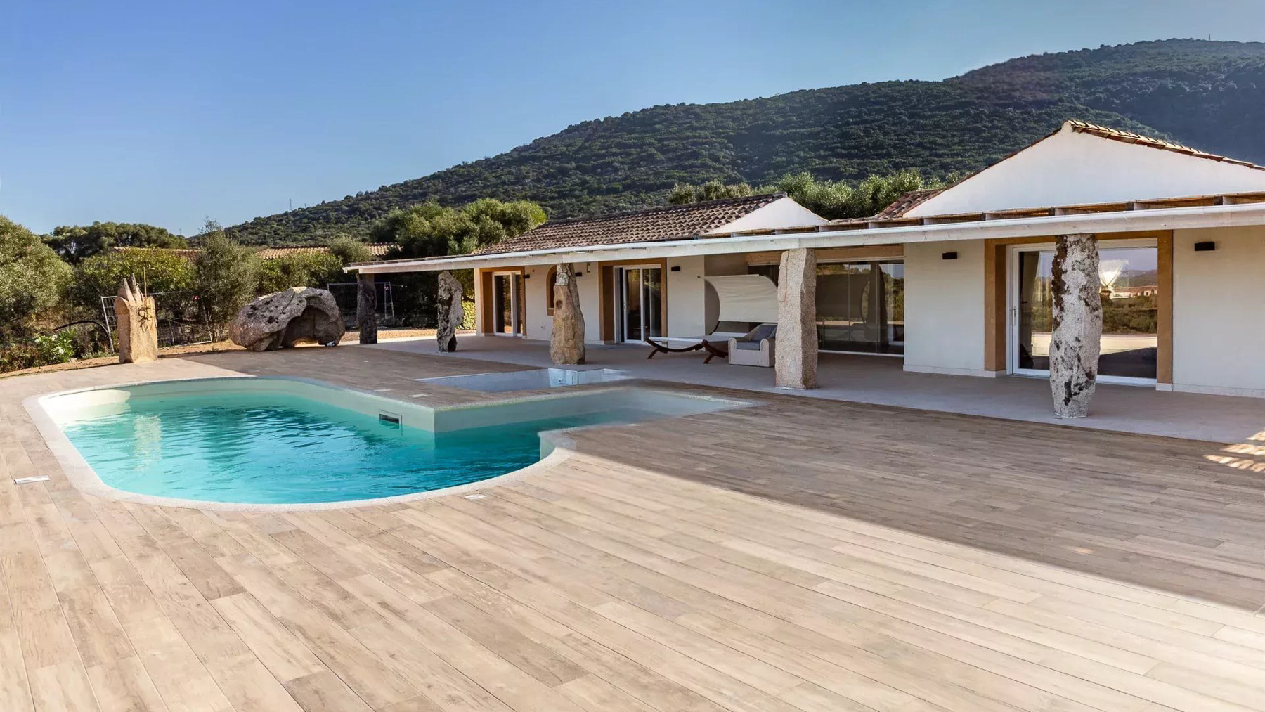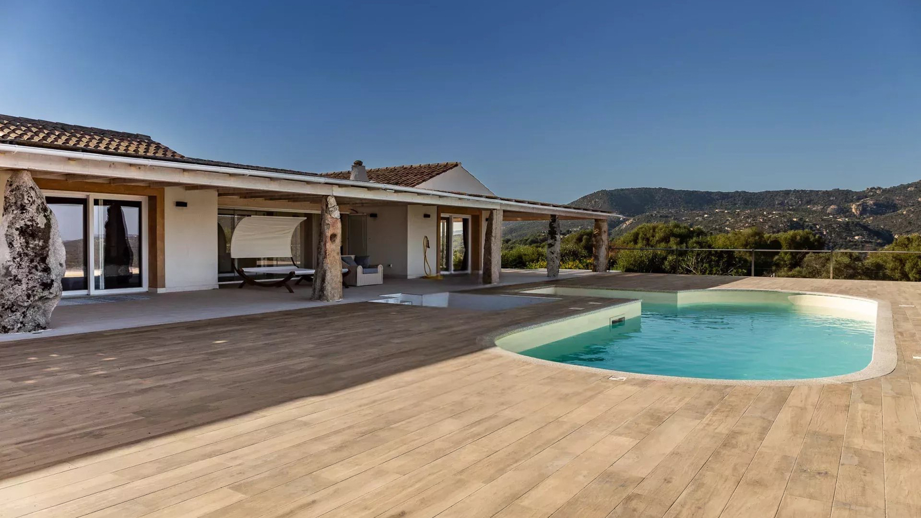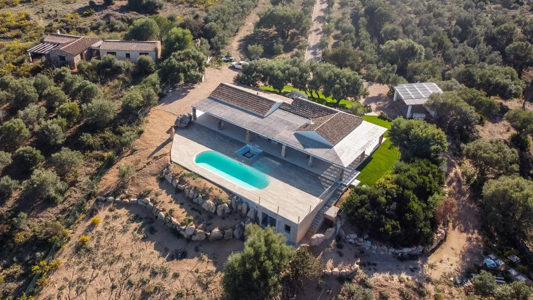Avvolta dalla luce dorata del tramonto, questa villa sulla cima di una collina a Sassari è un rifugio di lusso e serenità. I profumi intensi degli ulivi secolari si mescolano alla brezza marina, creando un'atmosfera unica e indimenticabile. La proprietà si estende su 1,4 ettari e offre una vista spettacolare sul Golfo di Cugnaga e Porto Rotondo. Con una superficie di 157 mq, la villa vanta otto stanze e due bagni, progettati per garantire il massimo del comfort. La piscina a sfioro è il cuore della dimora, invitando a immergersi nell'azzurro del mare che si estende all'infinito. L'architettura moderna e lineare, con ampie finestre e un tetto piatto, si integra armoniosamente con il paesaggio naturale circostante, creando una fusione perfetta tra ambiente interno ed esterno. Immagina di svegliarti ogni mattina con una vista mozzafiato del mare dalla tua terrazza privata. Passeggiare tra i giardini mediterranei, pervasi dal profumo degli agrumi e degli ulivi, o rilassarti a bordo piscina mentre il sole tramonta, offre un'esperienza sensoriale unica. Ogni momento qui è un invito a vivere la bellezza della natura unita al comfort sofisticato. Questa villa rappresenta un capolavoro di eleganza senza tempo e modernità, un'opportunità irripetibile per chi cerca un rifugio esclusivo nel cuore della costa italiana. Una gemma rara nel panorama immobiliare di prestigio, dove la tranquillità e il lusso si fondono in perfetta armonia.