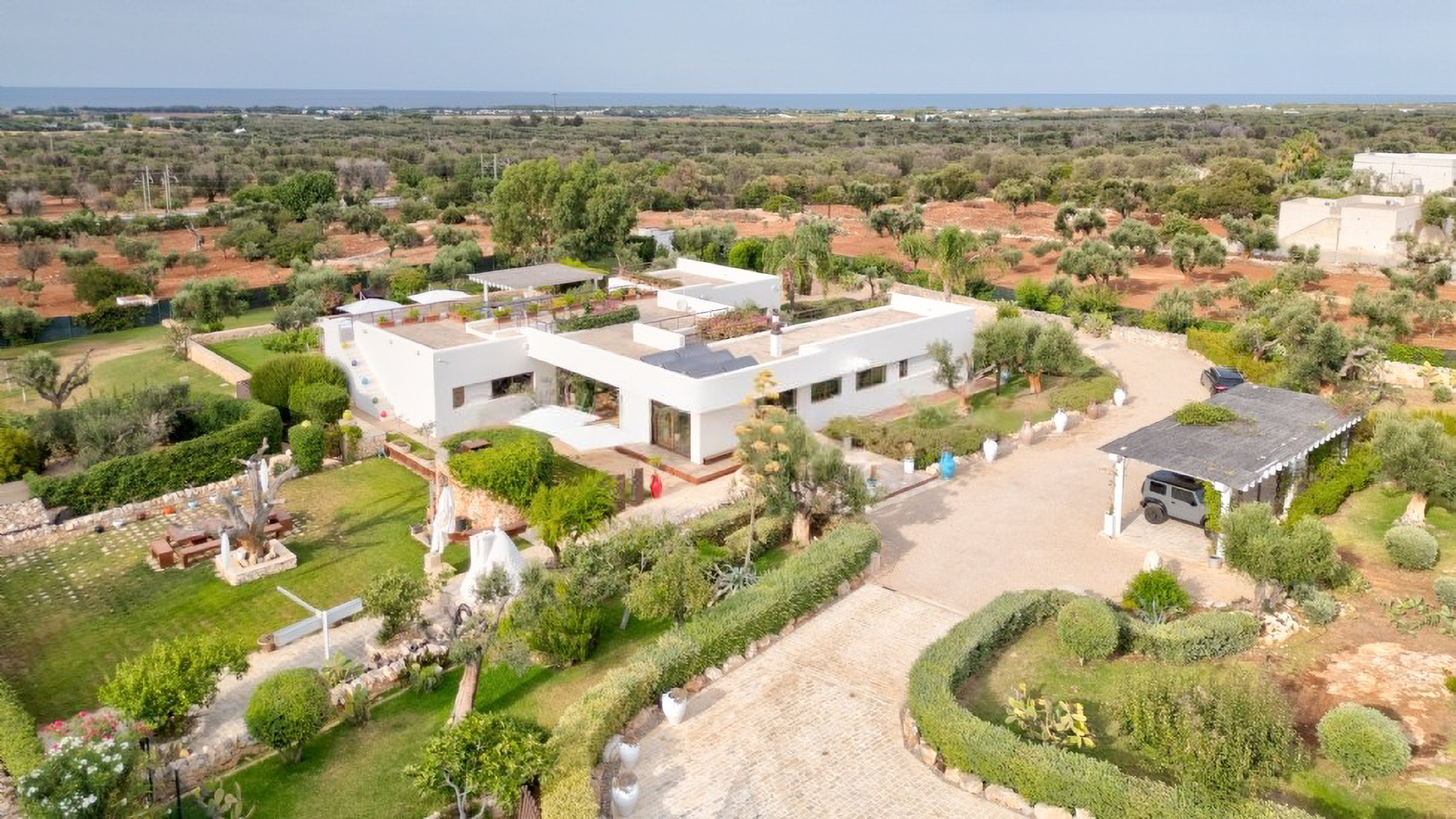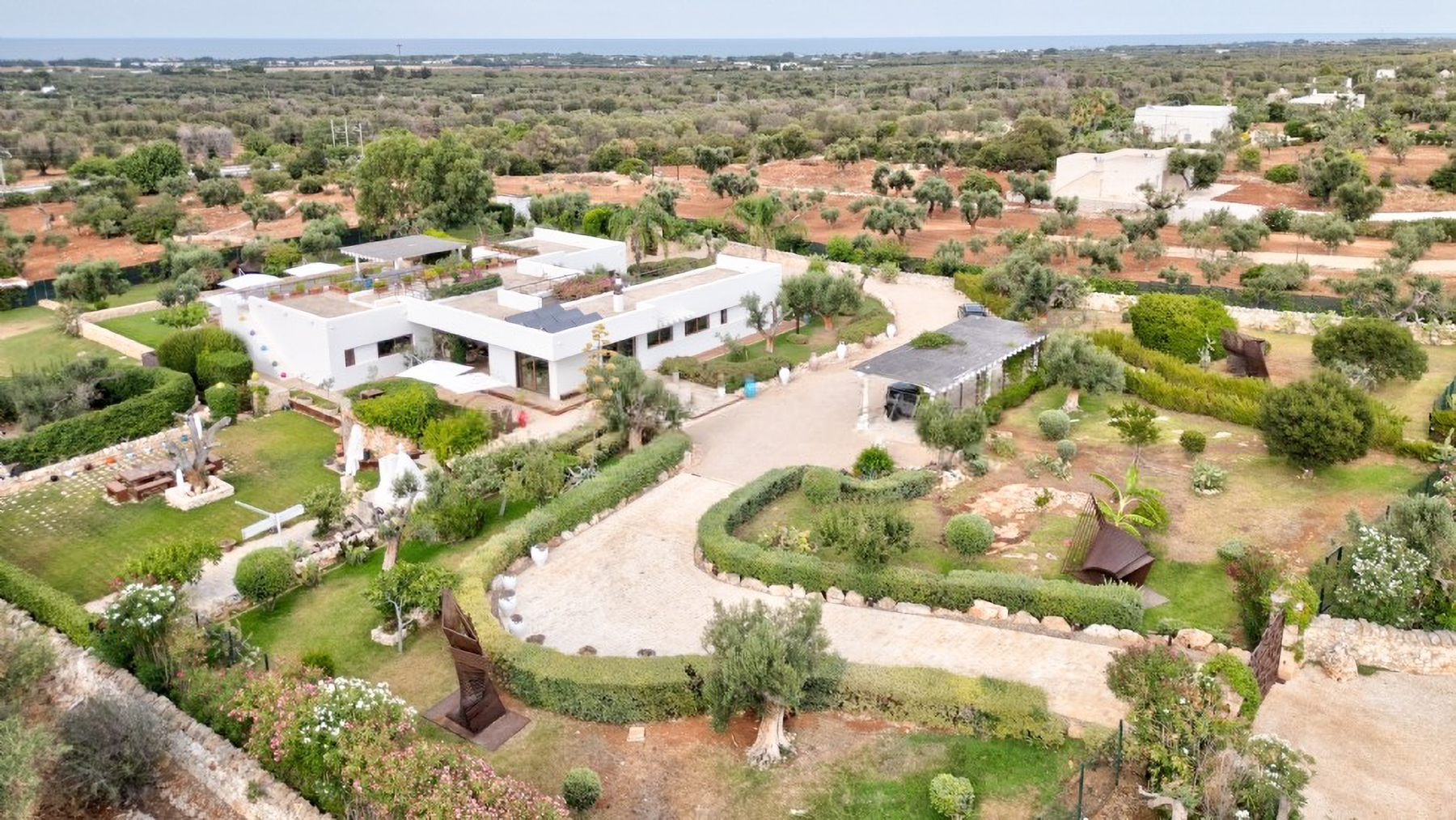 Immagina di svegliarti ogni mattina con il suono delle onde che si infrangono dolcemente sulla costa del Mar Adriatico, mentre una leggera brezza accarezza gli uliveti circostanti. Villa Stella Adriatica, situata nel cuore dell'Alto Salento a Carovigno, ti accoglie in un abbraccio di lusso e serenità, dove la natura incontaminata si fonde con il comfort moderno. Questa magnifica villa si estende su una superficie di 200 mq e si divide in tre corpi indipendenti, garantendo la massima privacy. Con un totale di 13 stanze, tra cui cinque bagni, la proprietà vanta interni curati con arredi su misura e materiali pregiati. All'esterno, un rigoglioso giardino e una piscina panoramica si integrano perfettamente con il paesaggio circostante, mentre un ampio terrazzo offre una vista mozzafiato sul mare. La villa è il rifugio ideale per chi cerca un connubio tra la tranquillità della campagna pugliese e il fascino della costa. Vivere a Villa Stella Adriatica significa immergersi in un'oasi di pace e bellezza. Immagina di trascorrere le tue giornate rilassandoti a bordo piscina, circondato dal profumo degli ulivi e del mare, o di organizzare cene all'aperto nella corte, sotto un cielo stellato che sembra toccare il mare. La terrazza sul tetto è il luogo ideale per godere di tramonti indimenticabili, mentre sorseggi un bicchiere di vino locale. Questa proprietà rappresenta un'opportunità irripetibile per chi cerca un investimento di prestigio in Puglia. Villa Stella Adriatica incarna il perfetto equilibrio tra lusso ed eleganza, offrendo un'esperienza abitativa senza pari in uno dei luoghi più affascinanti d'Italia. Non lasciarti sfuggire questa gemma unica nel panorama immobiliare di lusso.